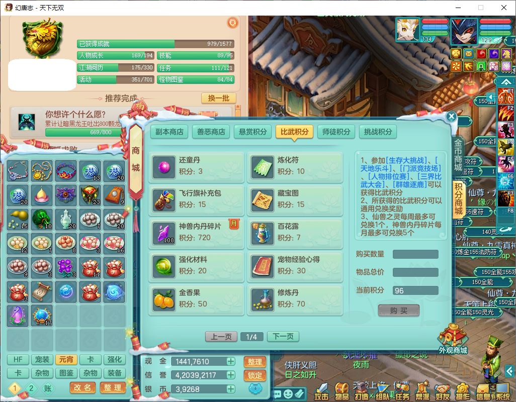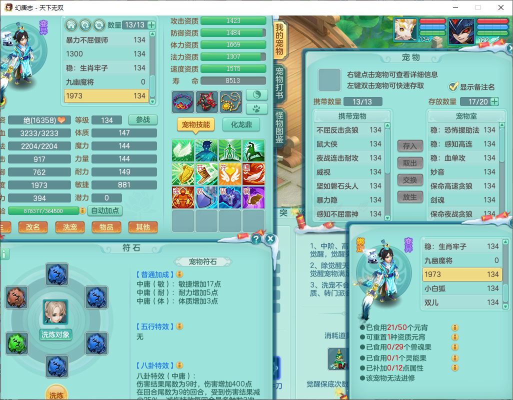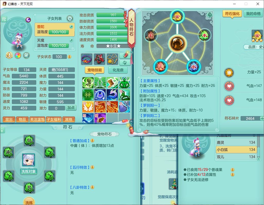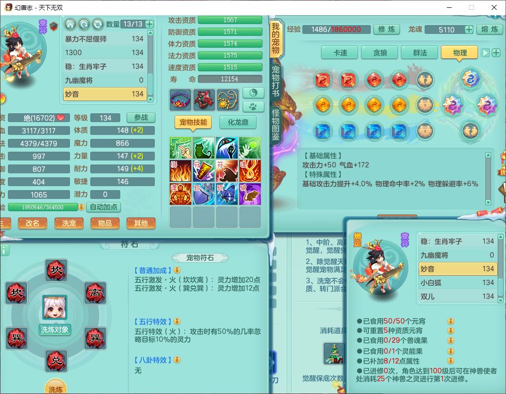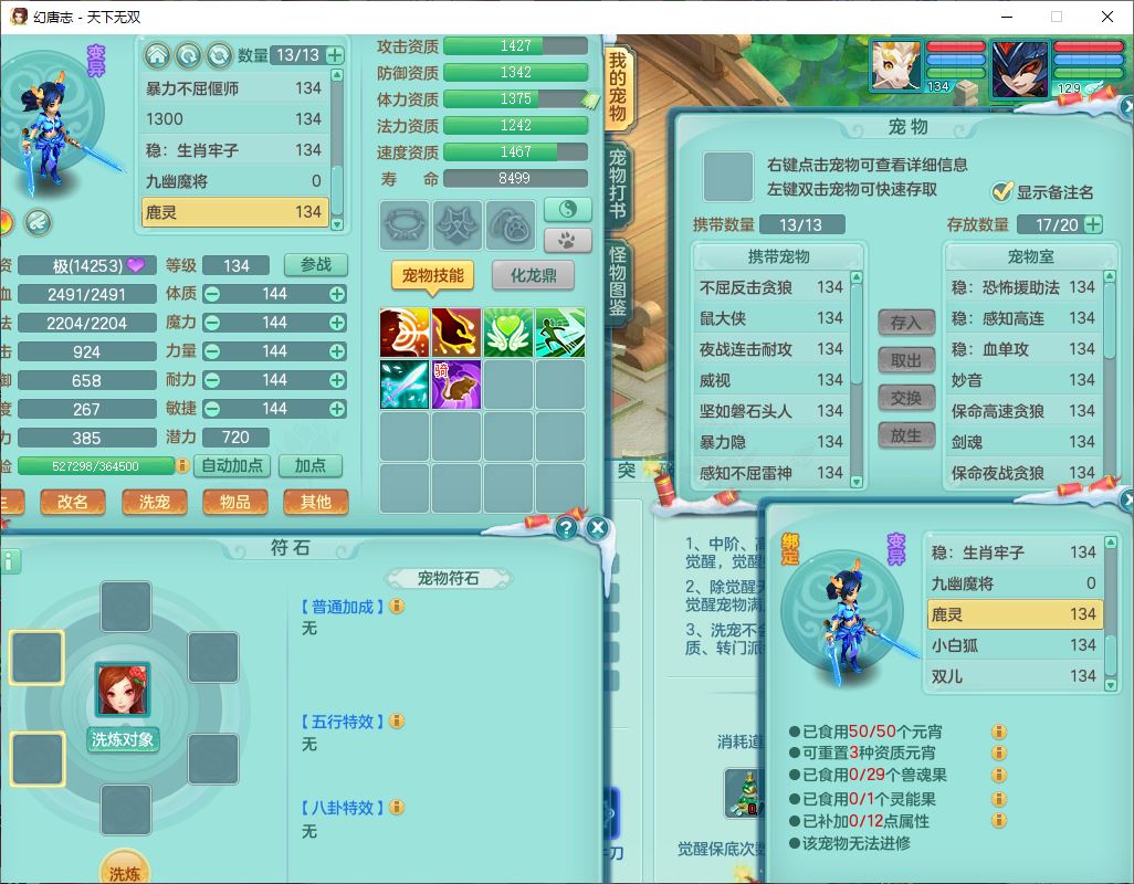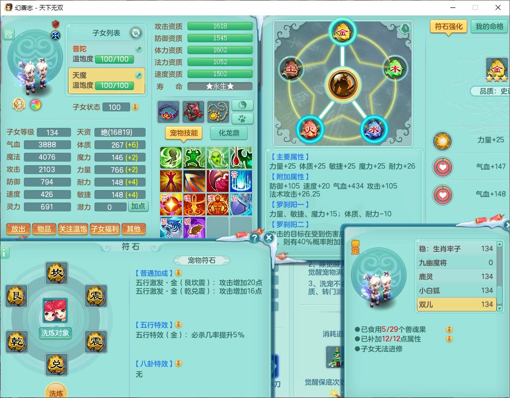 tx9540天下无双129男万兽精灵歌,1内丹龙马1七技能雷光妖鬼,宝宝种类齐全,2觉醒1宠皮2五字4四字(1洗练珠)综合6只满果子,装备齐全,733必杀武器,崩山衣服,Y玉清鞋子,鼎4.0,17个仙兽灵,1飞行坐骑