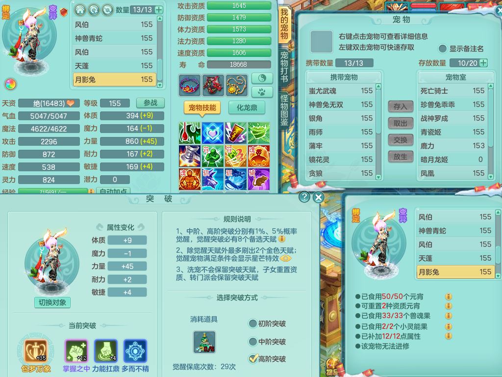 jt9544九天揽月159双开号,男万兽精灵歌,满级共鸣,2神兽(无内)1皮1觉醒,904Y武器,单加Y破血腰带,单加破甲鞋,鼎4.5,永久外观,63仙兽灵,1219金币,飞行双人坐骑,盘丝精灵歌,满级共鸣,2神兽(无内)2皮2觉醒,8红愤怒6特,格挡野兽衣服,愤怒水清腰带,鼎4.5,58仙兽灵,22内丹碎片,飞行双人坐骑