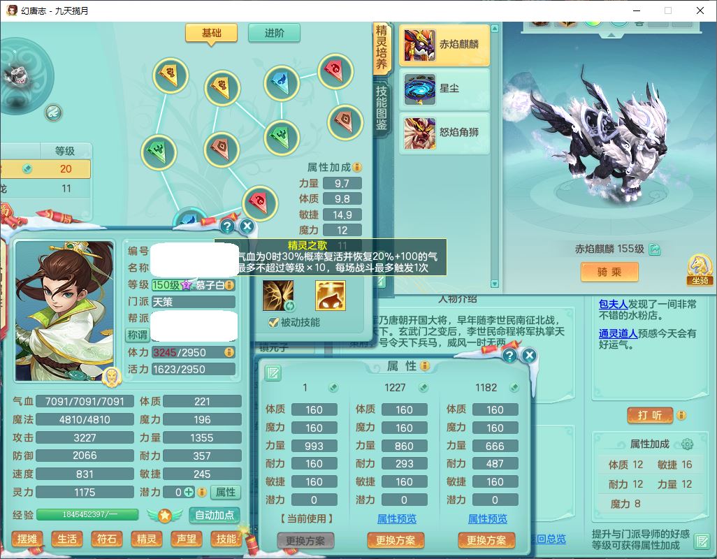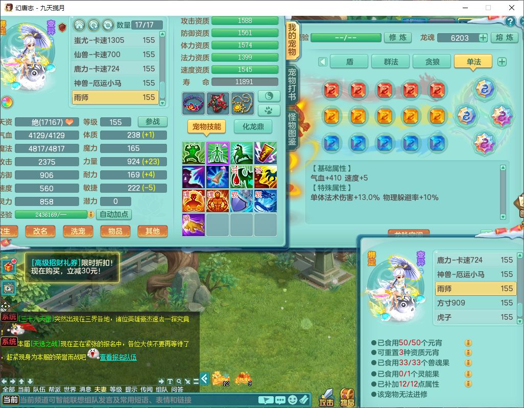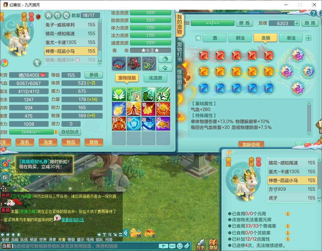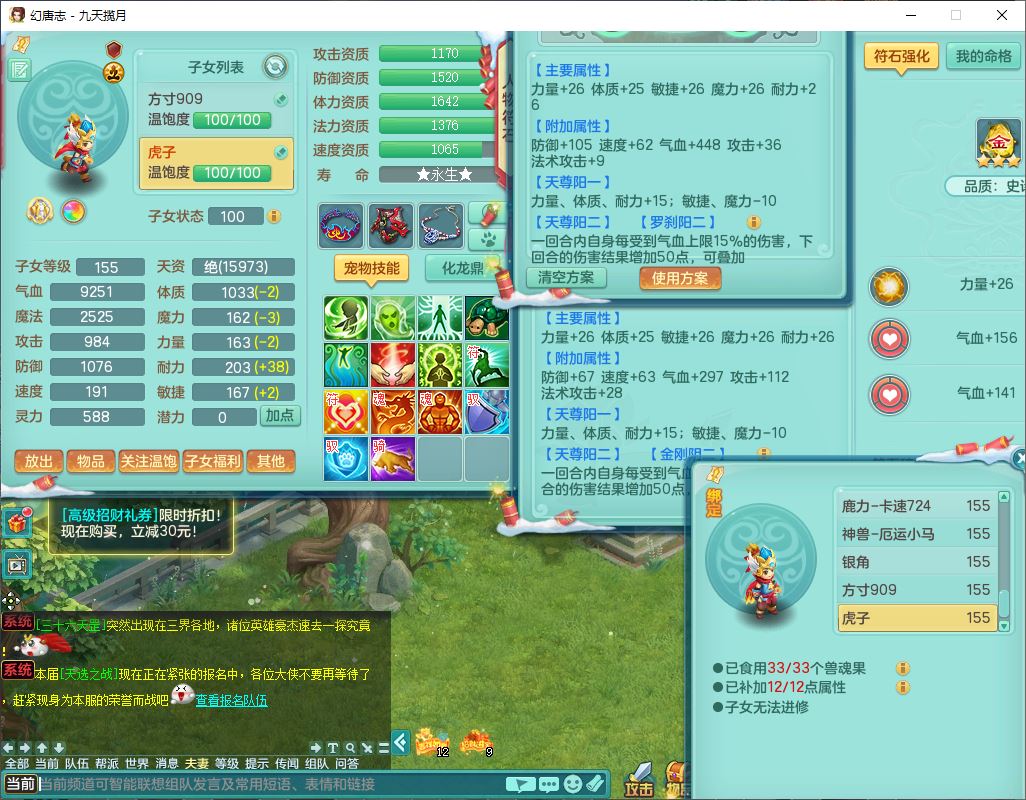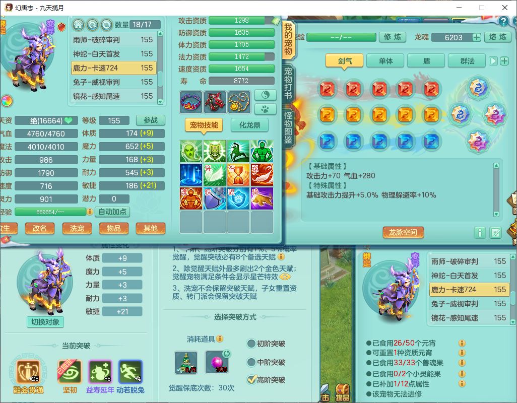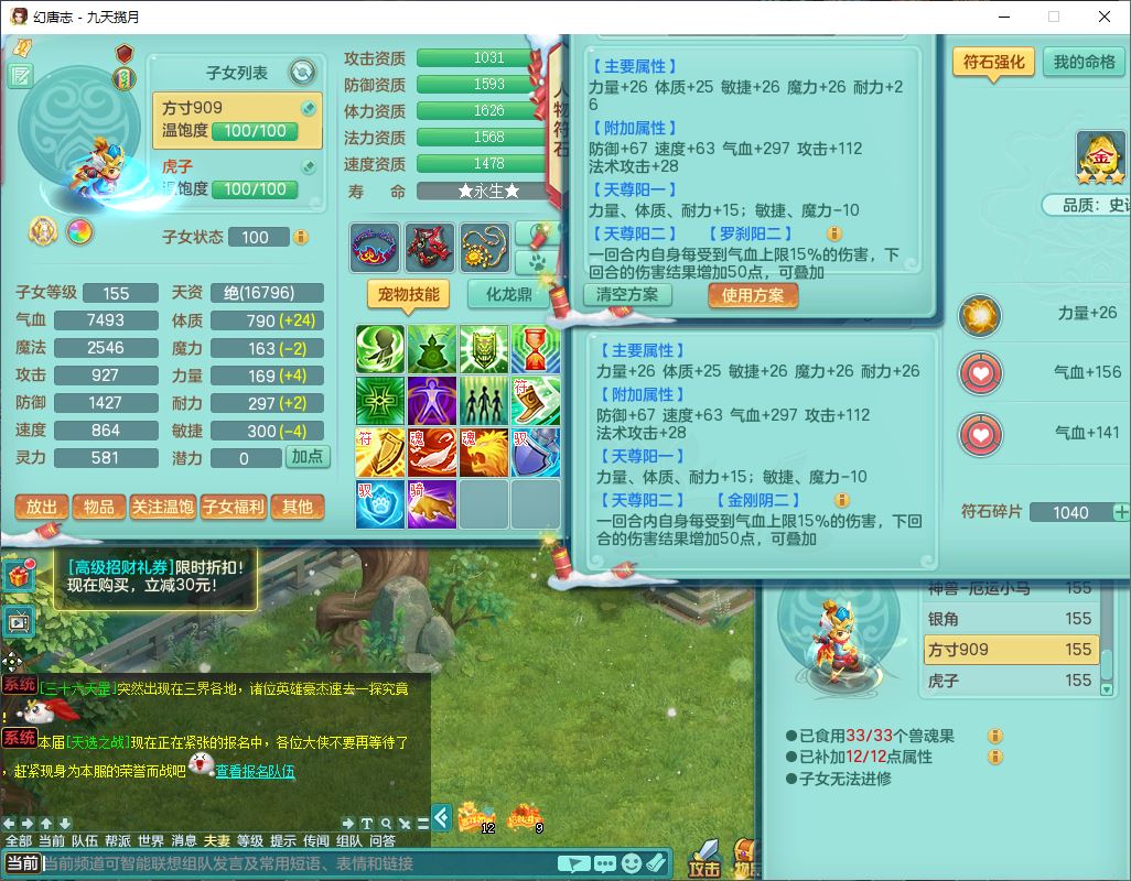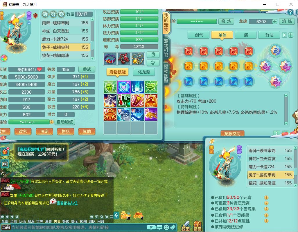 jt9560九天揽月159男天策【准潜龙号,差1只宝宝1条主符石+西瓜冰】精灵歌,5龙2内(1青蛇1龙马)4镜花9特殊(祈雨、翻江、破碎、夺命*2、剑胆、舍身、守护,墨守兽决)1龙姬胚子,7觉醒9以上六字27只满果子,17格子,8红星辰之拥双破甲装备,破甲帽子,必杀破血武器,崩山衣服,破甲Y鞋子,一套8红辅助装,回春群体疾速武器,幸运笑里鞋子,鼎5.0+70+280,法爆10.0,2套符石,20天月卡,111W神武币,18个内丹碎片,1绝版千机石,1双人坐骑