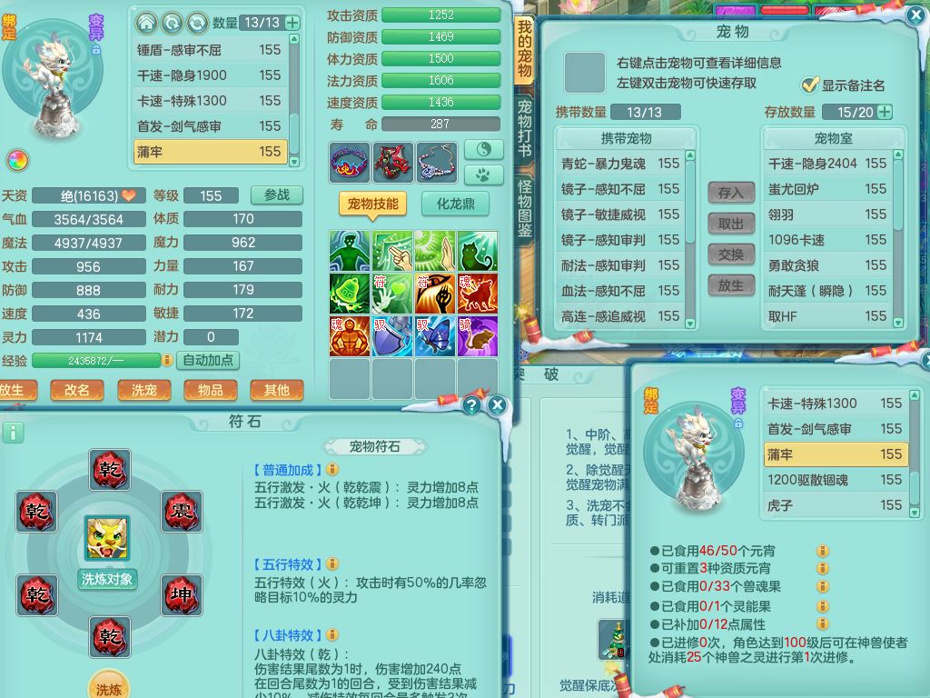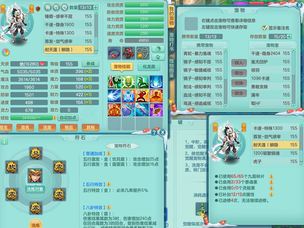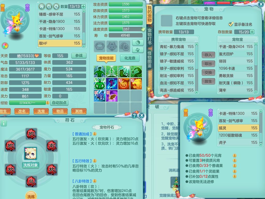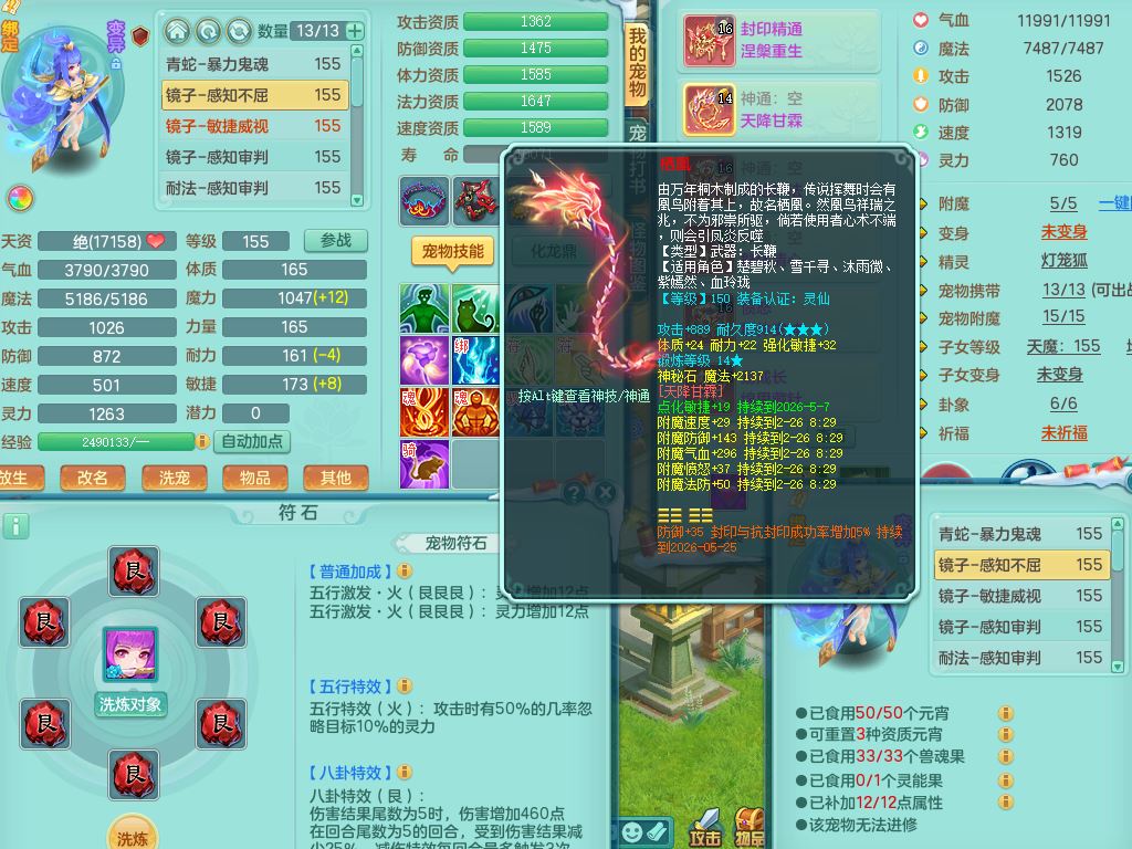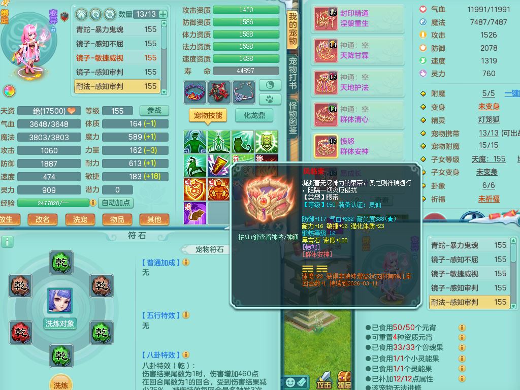 tx9568天下无双159女方寸精灵舞,满级共鸣,1内丹神1皮(幻灵果),3镜花灵1龙姬,10只满果子2觉醒4个纯6字,9红愤怒6特,封印慈航头,愤怒双红腰带,Y笑里鞋,鼎5.5+70,119天月卡,庭院154房屋167,永久头饰精灵皮肤,1头像券,12仙兽灵,3只双人坐骑