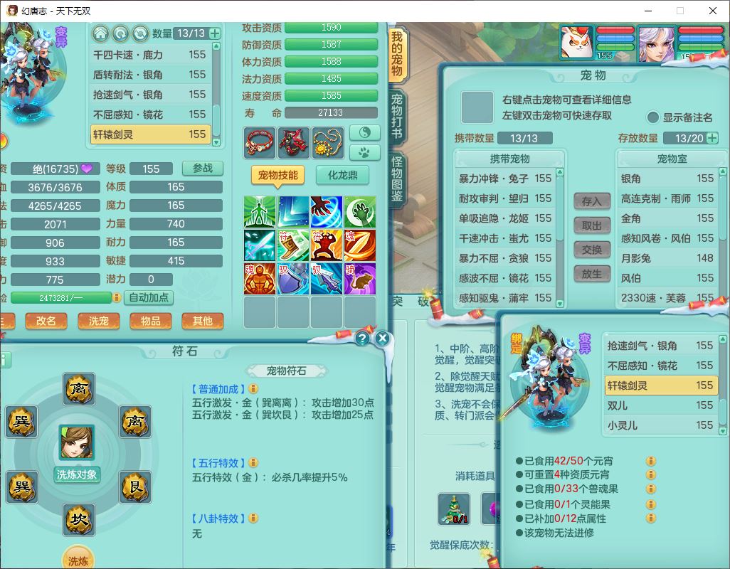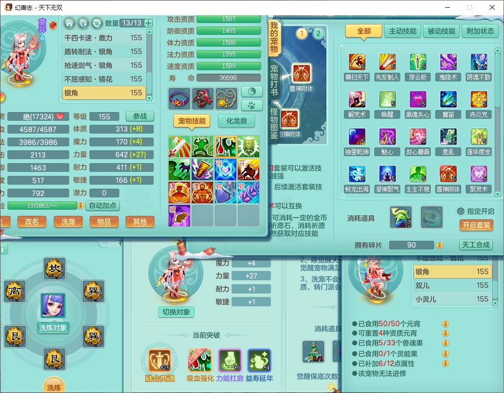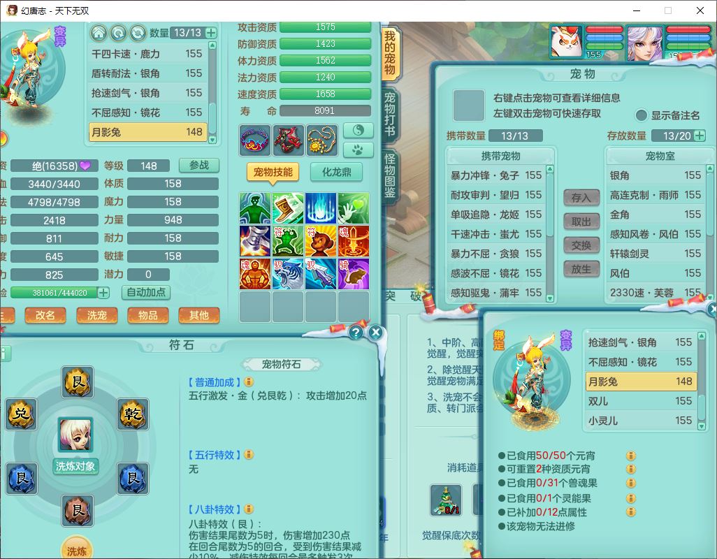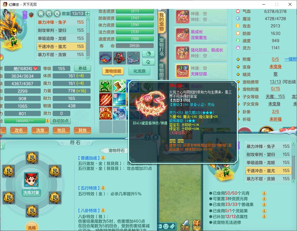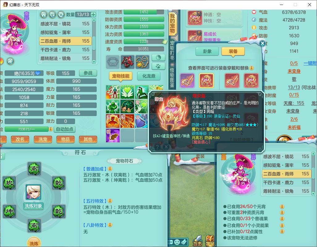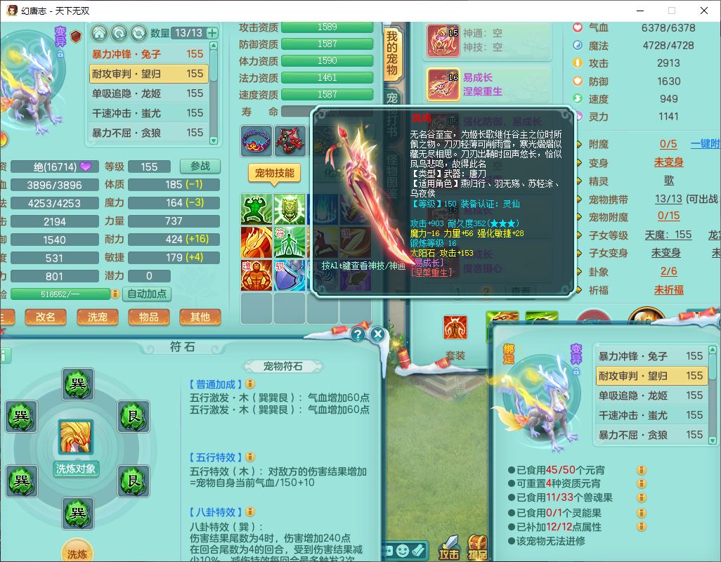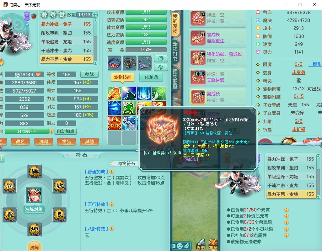 tx9572天下无双159男万兽精灵歌,1神兽(无内)1望归1龙姬2镜花,2觉醒1六字1五字,8红装备,Y慈航武器,强化防御Y衣服,Y魔音鞋子,鼎4.5,庭院156,永久头饰、背饰、精灵皮肤,122w神武币,12个仙兽灵,33个内丹碎片,3坐骑(1双人飞行)