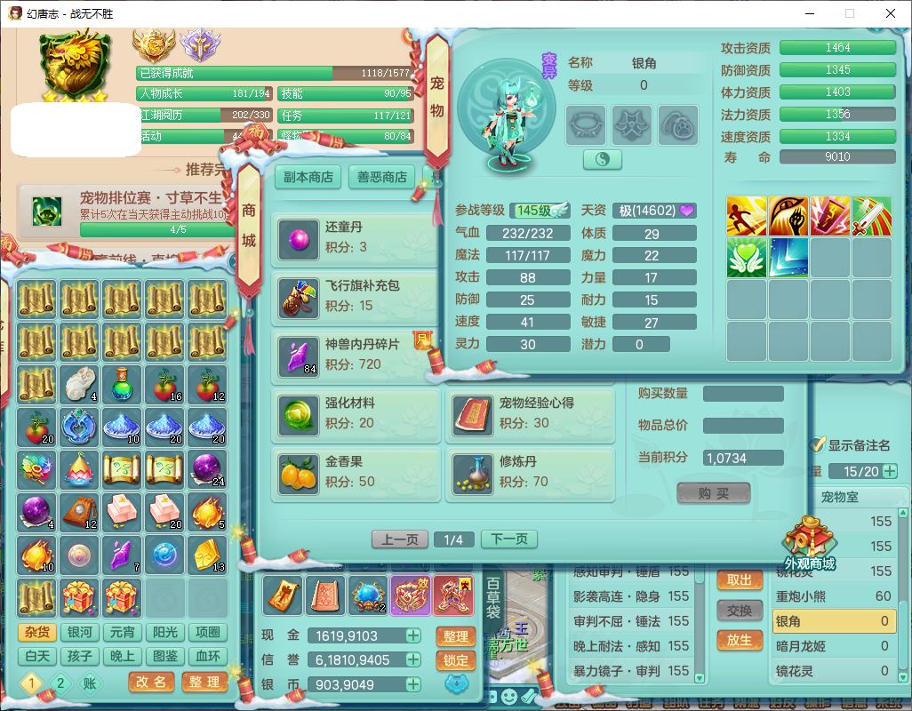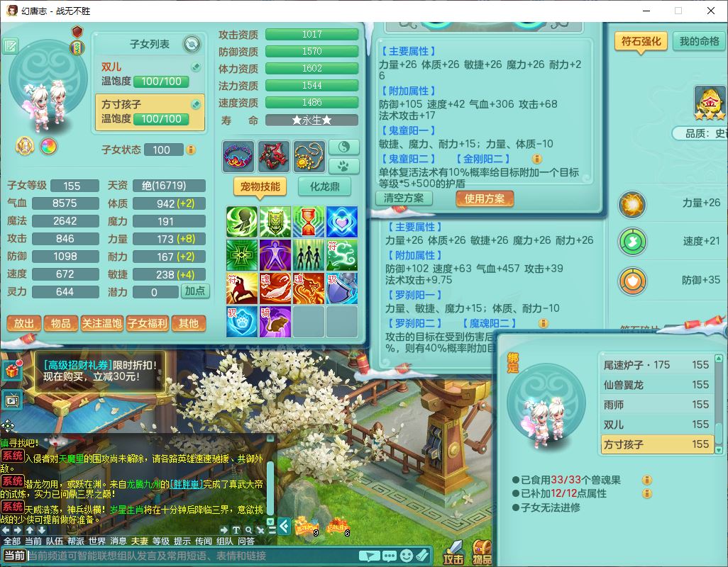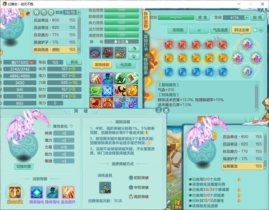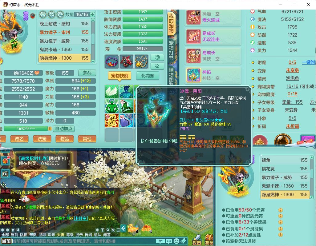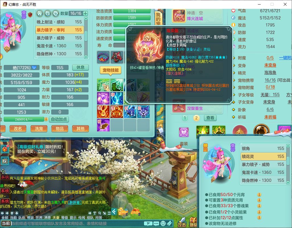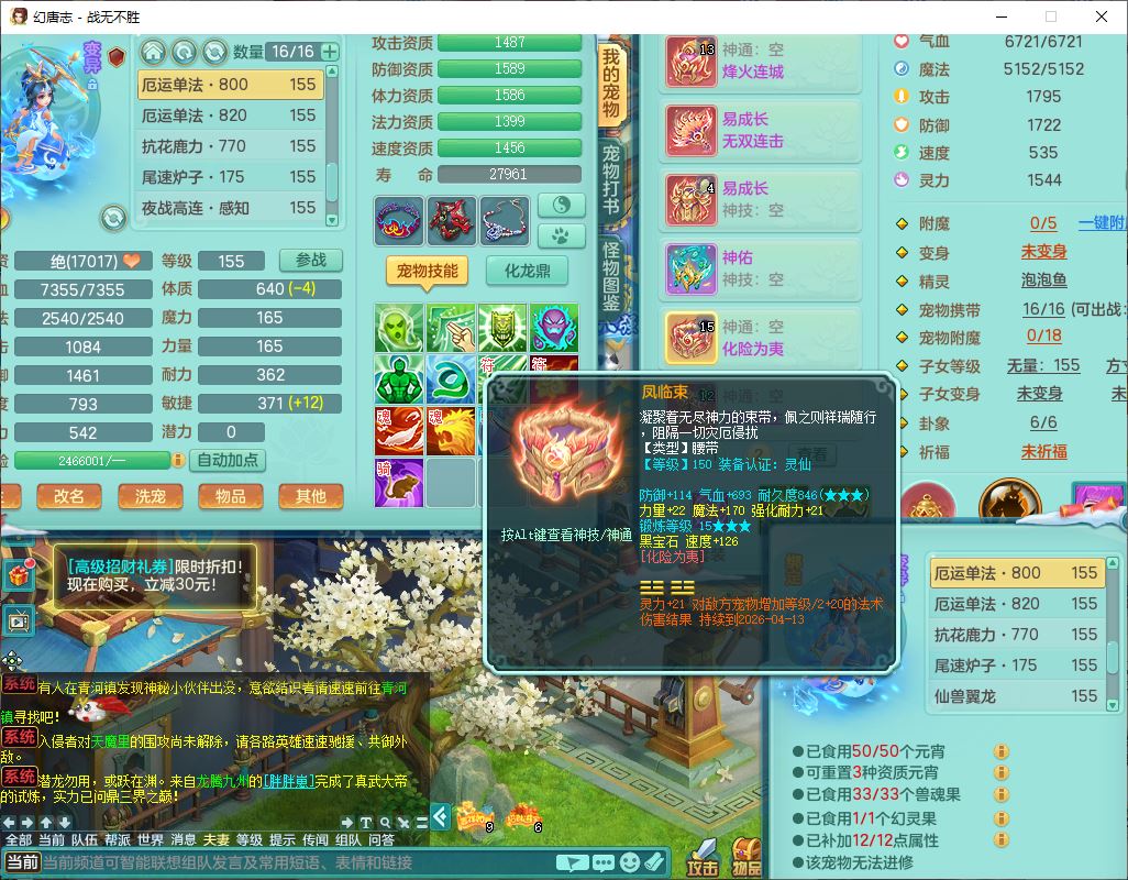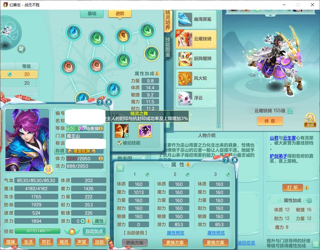 zw9582战无不胜159男魔王【潜龙号】精灵舞,4位靓号,3龙(换,1破境)2内(1小马)4镜花(2胚子)3特殊(影袭、战争,怒破兽决)1七技能风卷妖鬼,9觉醒8宠皮17六字20只满果子,10红全单加装备,法爆Y武器,强壮Y疾速衣服,275Y项链,Y四海腰带,五雷鞋子,一套物理装,Y破血武器,鼎6.0+70+280,2套符石,40天月卡,永久外观、精灵皮肤,7个内丹碎片,3双人坐骑,带150奶粉