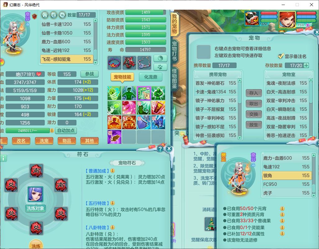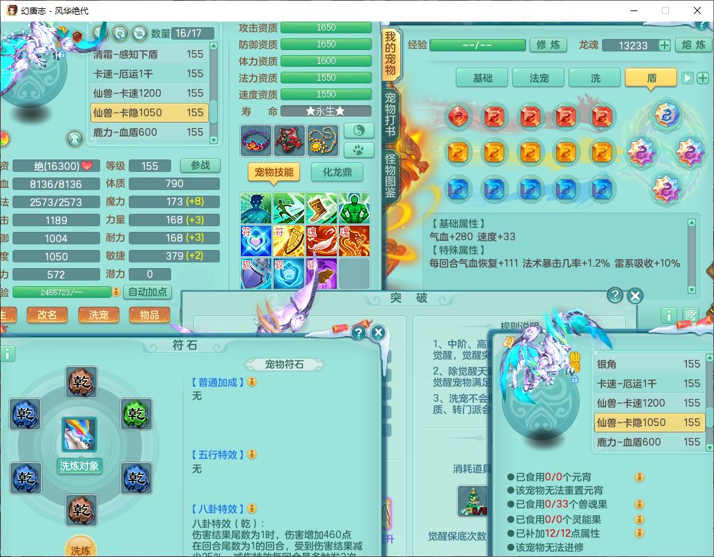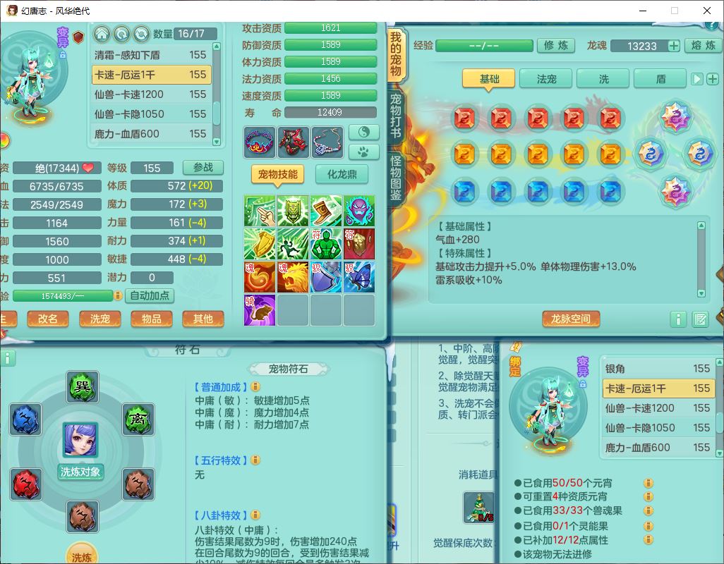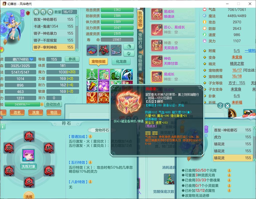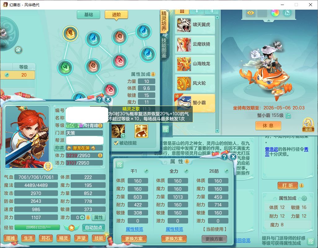 fh9581风华绝代159男天策【潜龙号】精灵歌,2龙(换、无内)1望归1内(带蛇影)5镜花(1胚子)7特殊(青霜、飞花、双星*2、善恶、守护,飞花兽决),10觉醒9宠皮11六字2五字9四字24只满果子,17格子,9红装备,Y唤魂帽子,926单加匠心Y武器,神佑四海项链,崩山衣服,鼎5.5+70+280,20天月卡,永久外观、精灵皮肤,13个内丹碎片,3坐骑(1双人飞行)