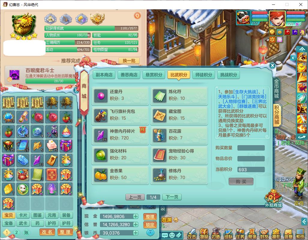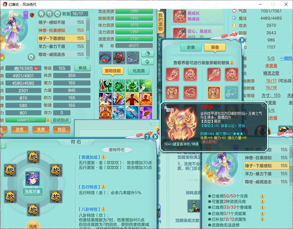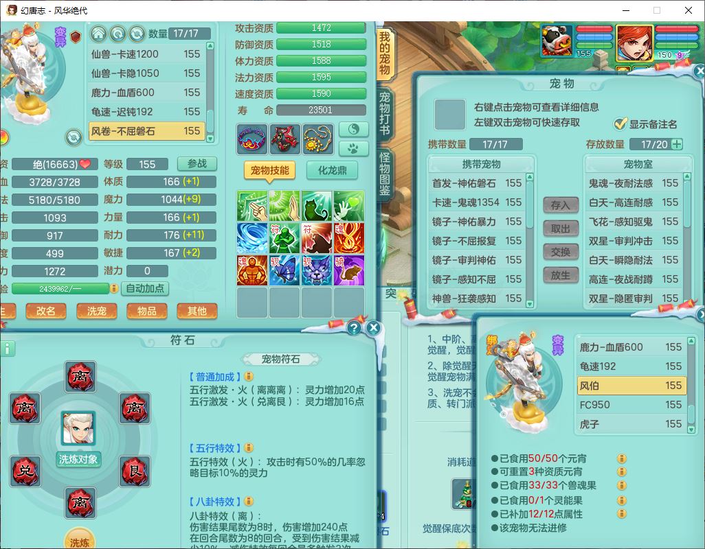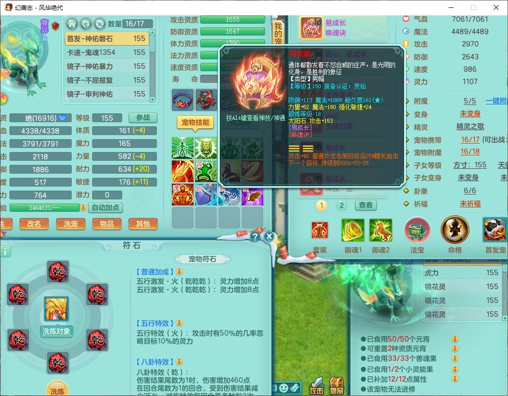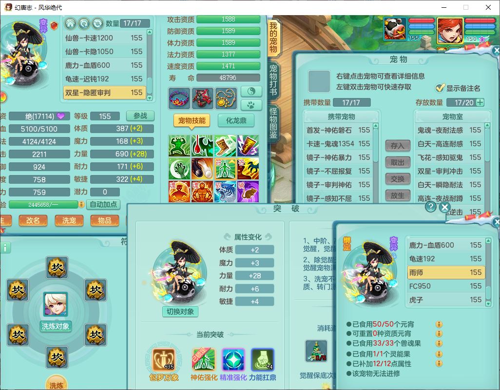 fh9581风华绝代159男天策【潜龙号】精灵歌,2龙(换、无内)1望归1内(带蛇影)5镜花(1胚子)7特殊(青霜、飞花、双星*2、善恶、守护,飞花兽决),10觉醒9宠皮11六字2五字9四字24只满果子,17格子,9红装备,Y唤魂帽子,926单加匠心Y武器,神佑四海项链,崩山衣服,鼎5.5+70+280,20天月卡,永久外观、精灵皮肤,13个内丹碎片,3坐骑(1双人飞行)