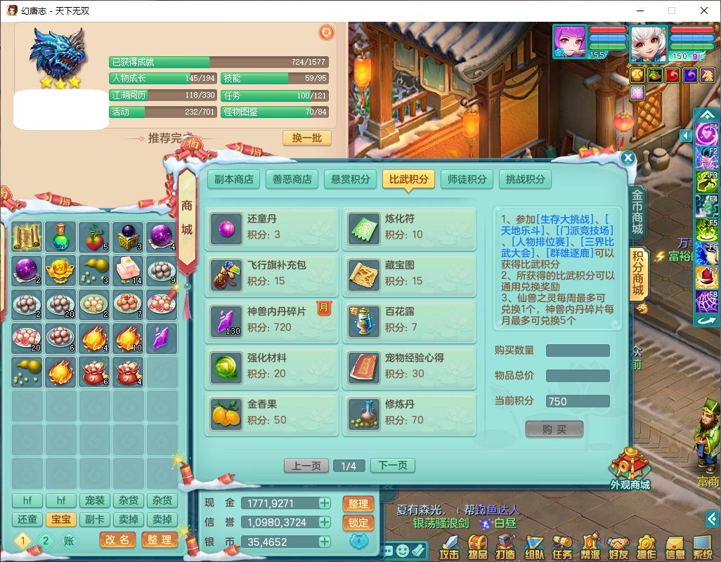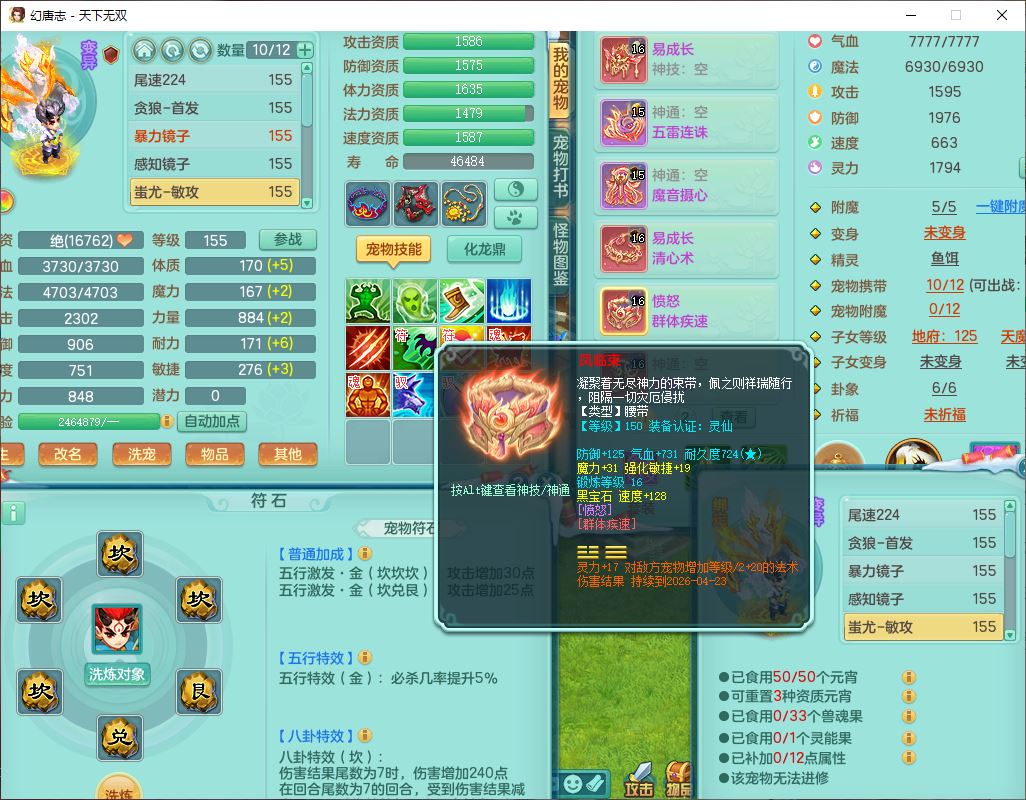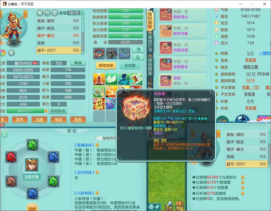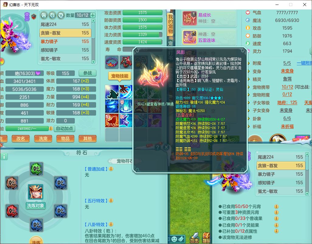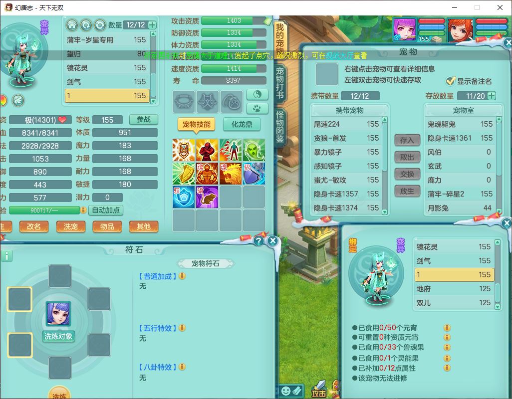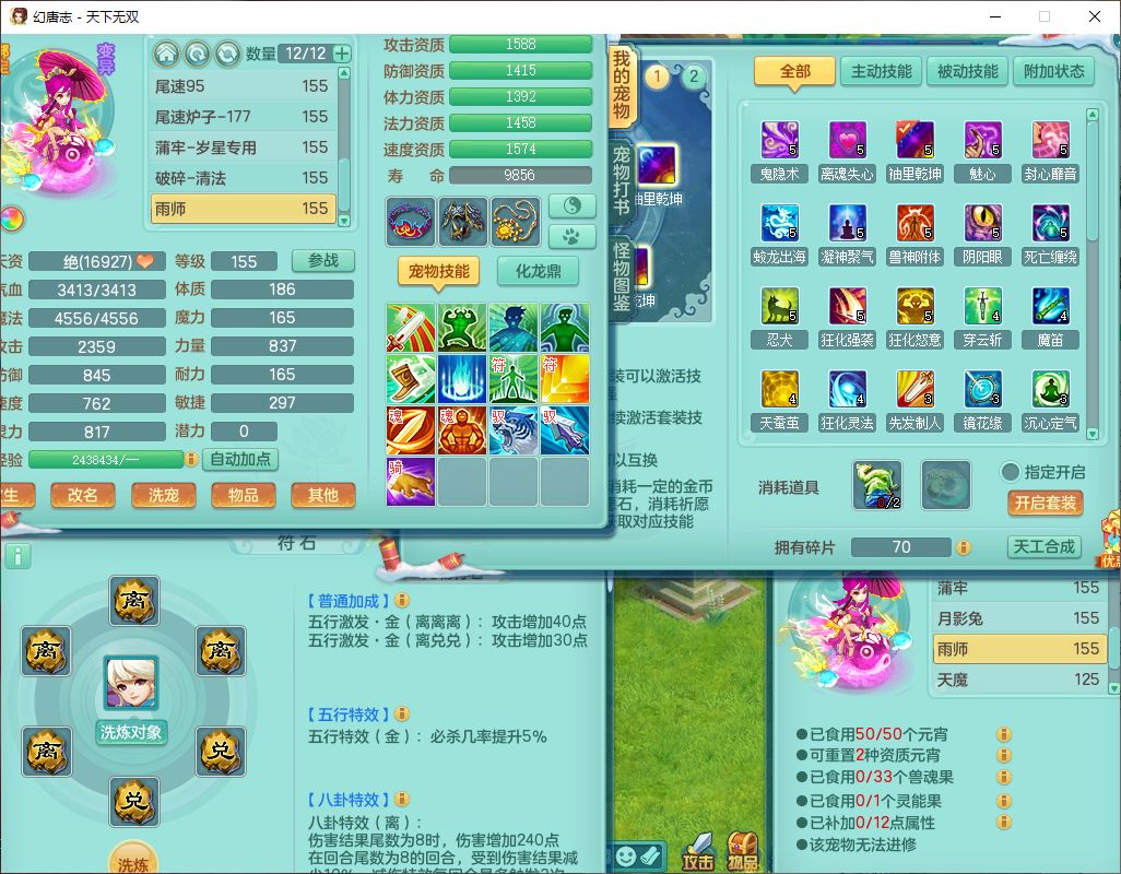 tx9592天下无双双开号159女盘丝精灵舞,1望归2镜花1鹿力1金炉,宝宝种类齐全,3五字6四字,愤怒五特装备齐全,鼎4.5;带159女鬼谷精灵歌,2镜花1蒲牢,8红装备,五雷武器,Y水清项链,愤怒群体疾速,鼎5.5,庭院152环境