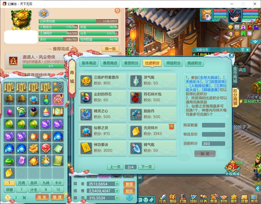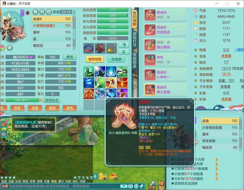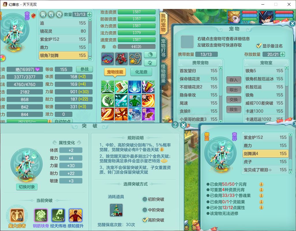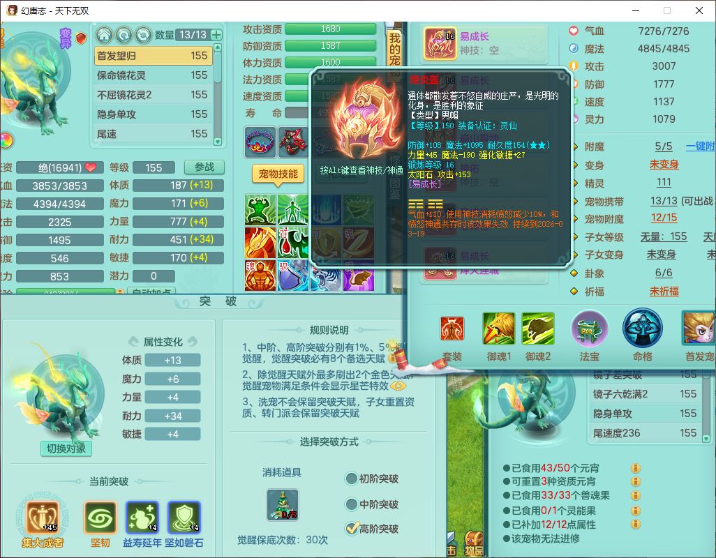 tx9588天下无双159男万兽准精灵舞,1内1望归1龙姬4镜花(1胚子)3特殊(青霜,飞花、舍身兽决)1金炉,4觉醒7六字8只满果子,9红装备,930Y破血武器,崩山衣服,Y心神腰带,Y烽火鞋子,鼎4.5,59天月卡,315W神武币,35个仙兽灵,1通灵珠,38个内丹碎片