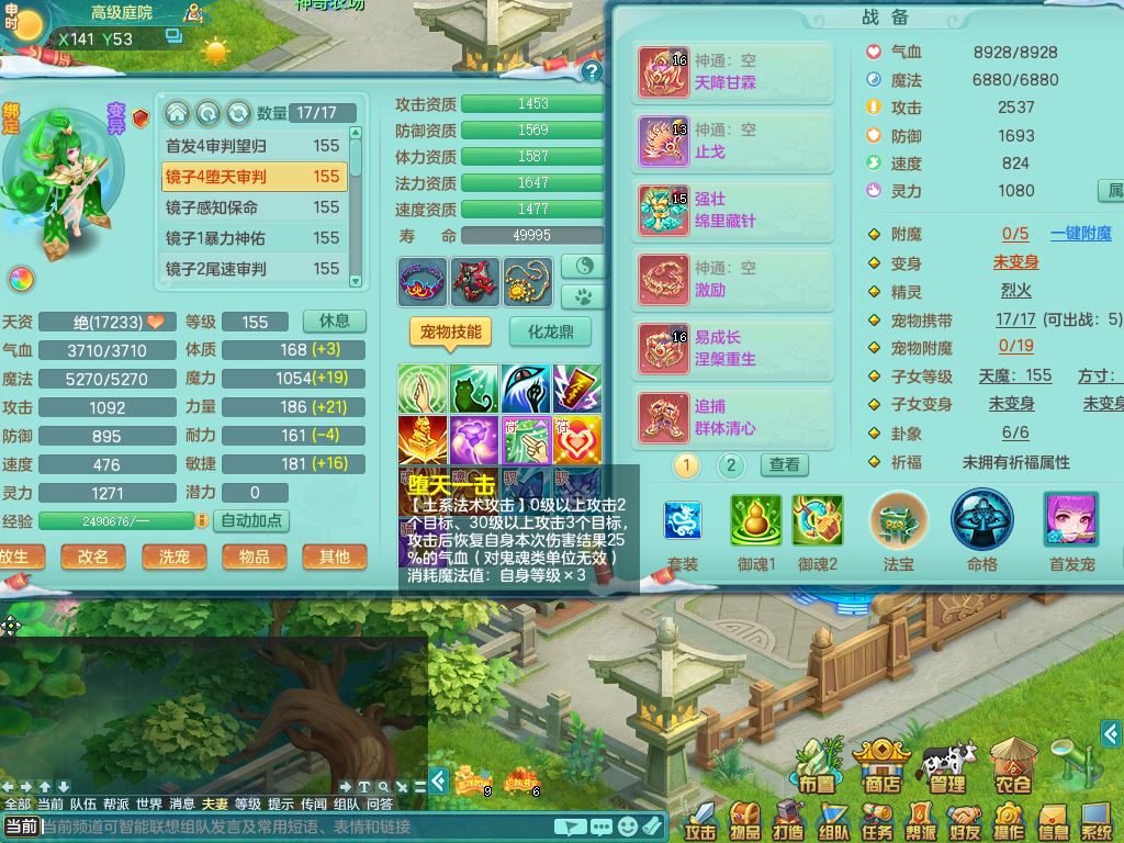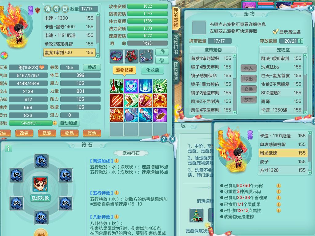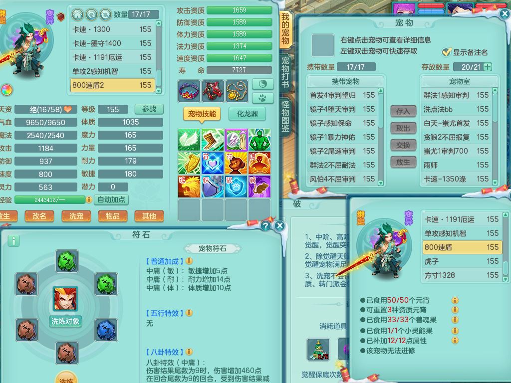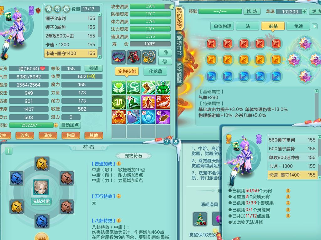 jn9595今年勇159男五庄精灵舞,2套星穹,1龙(换)2内1神兽内丹2皮,6特殊(堕天/烈焰斩/兽决夺命/舍身/祈雨/烈焰焚心)17格子22只满果子6觉醒17个纯6字(1洗练珠)全身单加,911必杀武器,崩山头,格挡慈航衣服,Y慈航腰带,破甲鞋,鼎5.5+70+280,2套符石,27天月卡,永久外观精灵皮肤,34内丹碎片,宠排在榜,双人坐骑