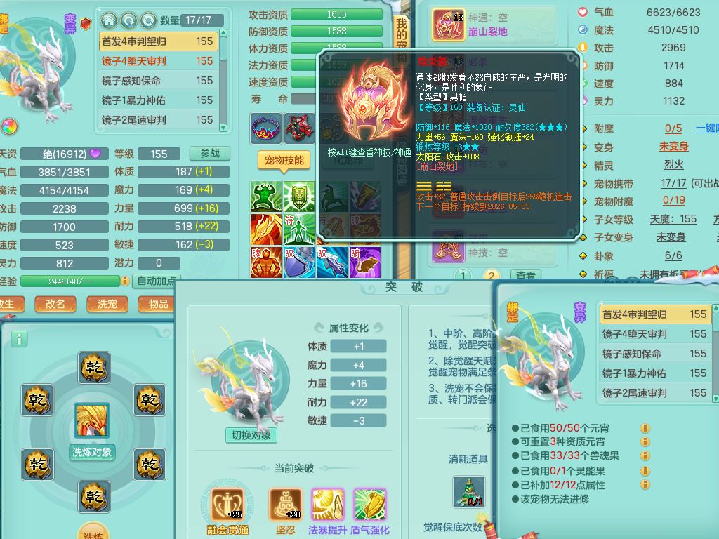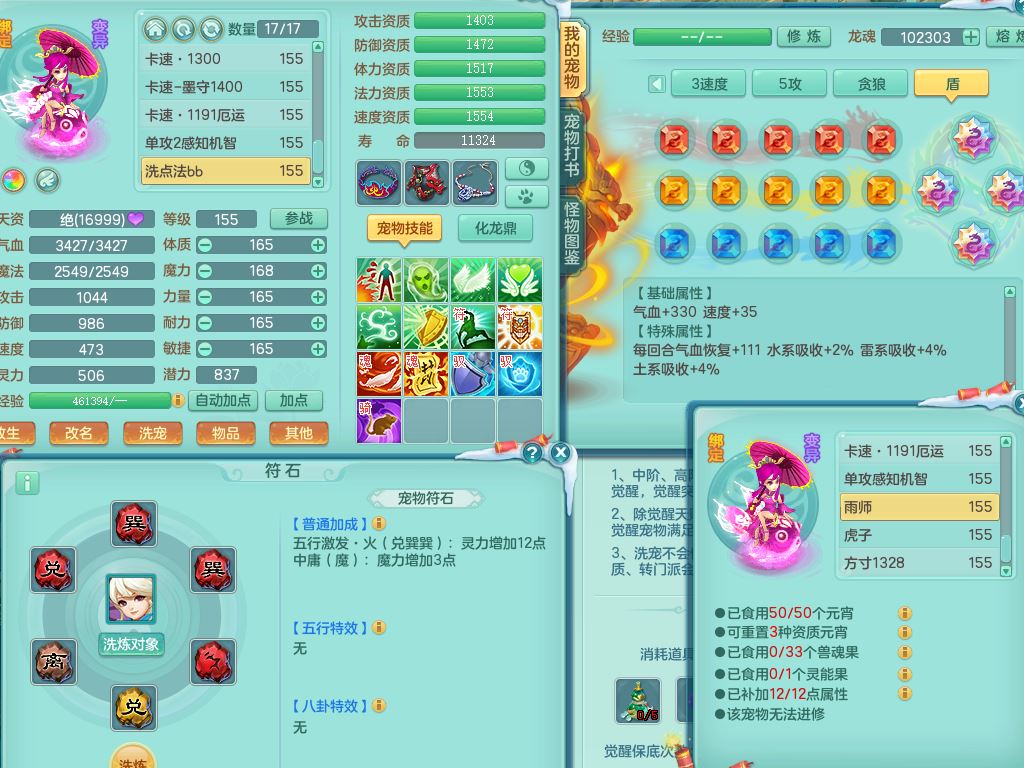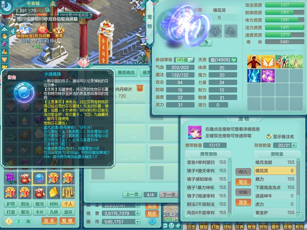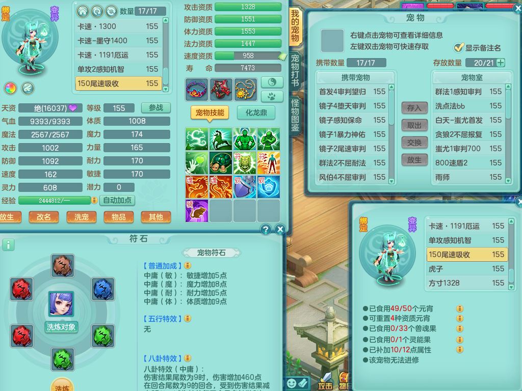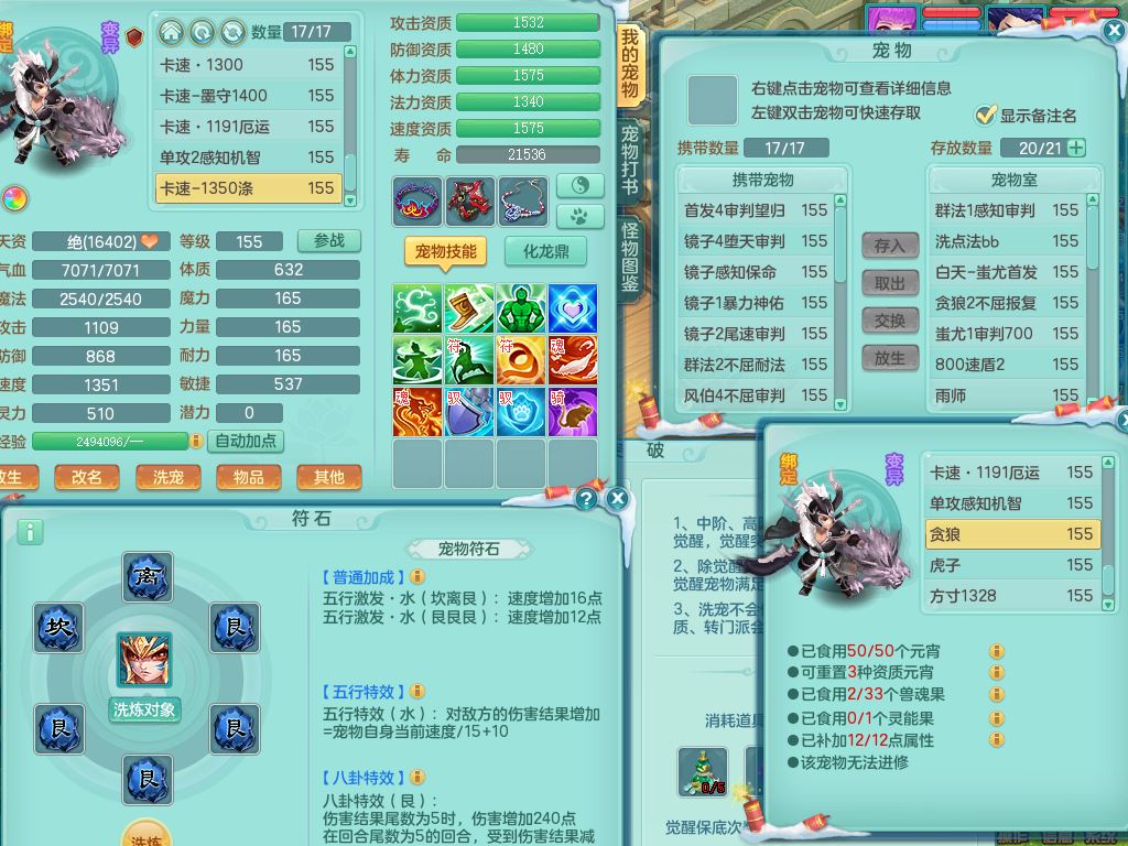jn9595今年勇159男五庄精灵舞,2套星穹,1龙(换)2内1神兽内丹2皮,6特殊(堕天/烈焰斩/兽决夺命/舍身/祈雨/烈焰焚心)17格子22只满果子6觉醒17个纯6字(1洗练珠)全身单加,911必杀武器,崩山头,格挡慈航衣服,Y慈航腰带,破甲鞋,鼎5.5+70+280,2套符石,27天月卡,永久外观精灵皮肤,34内丹碎片,宠排在榜,双人坐骑