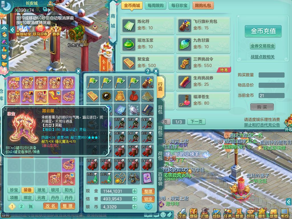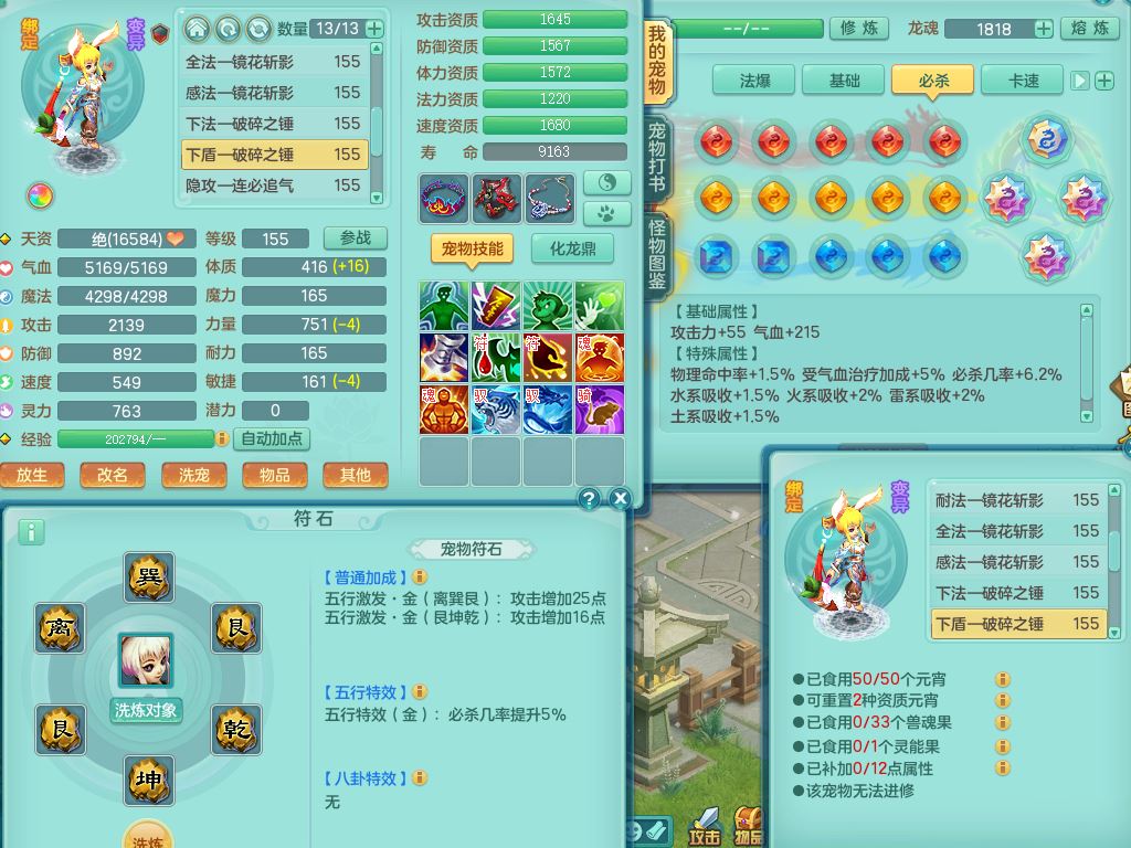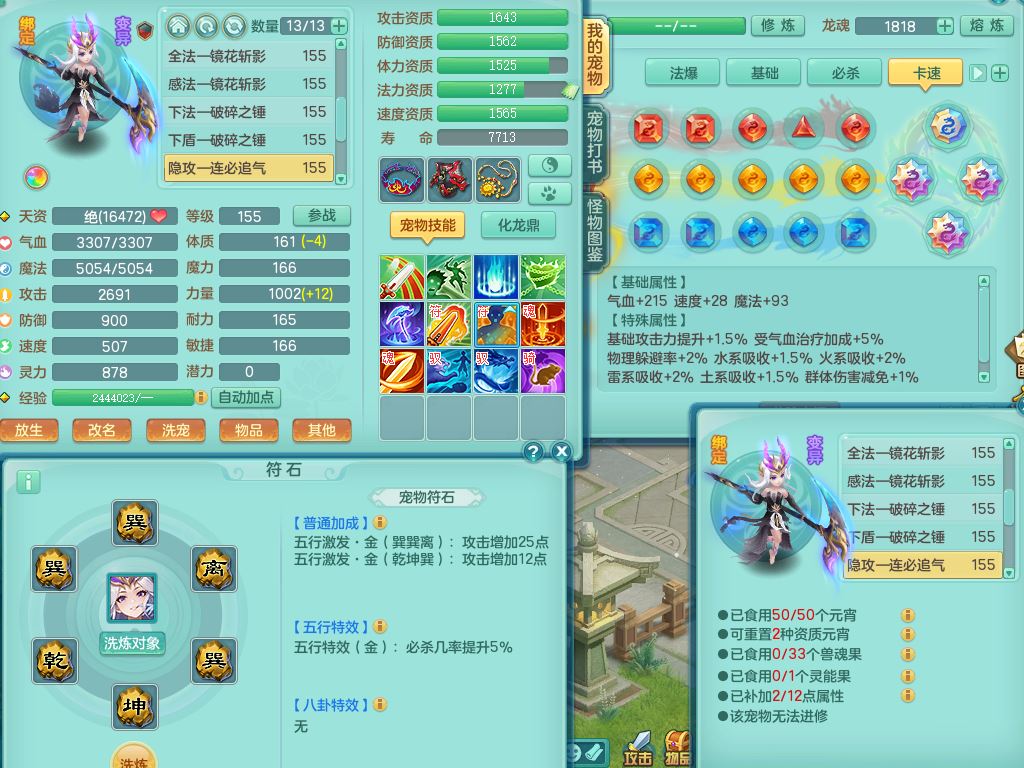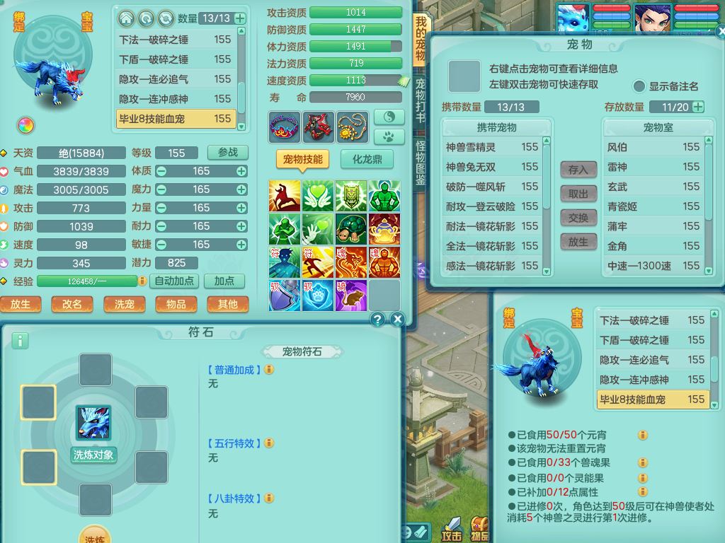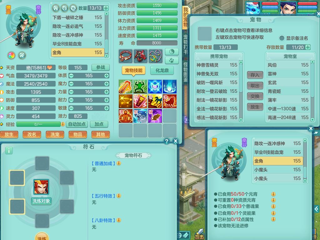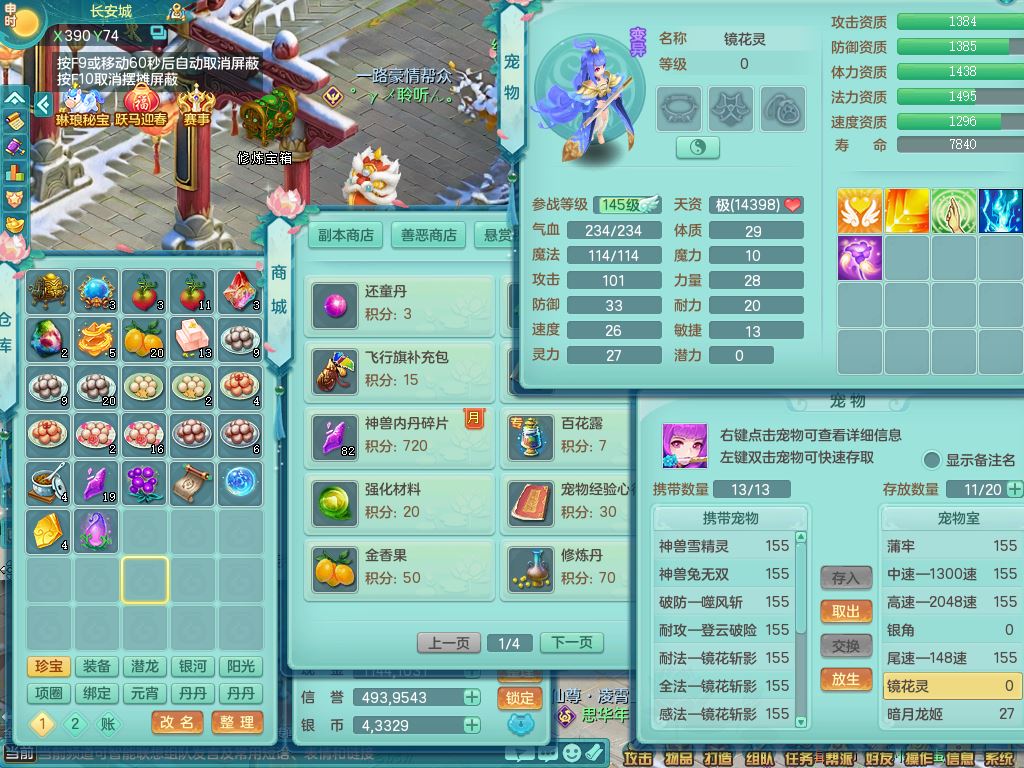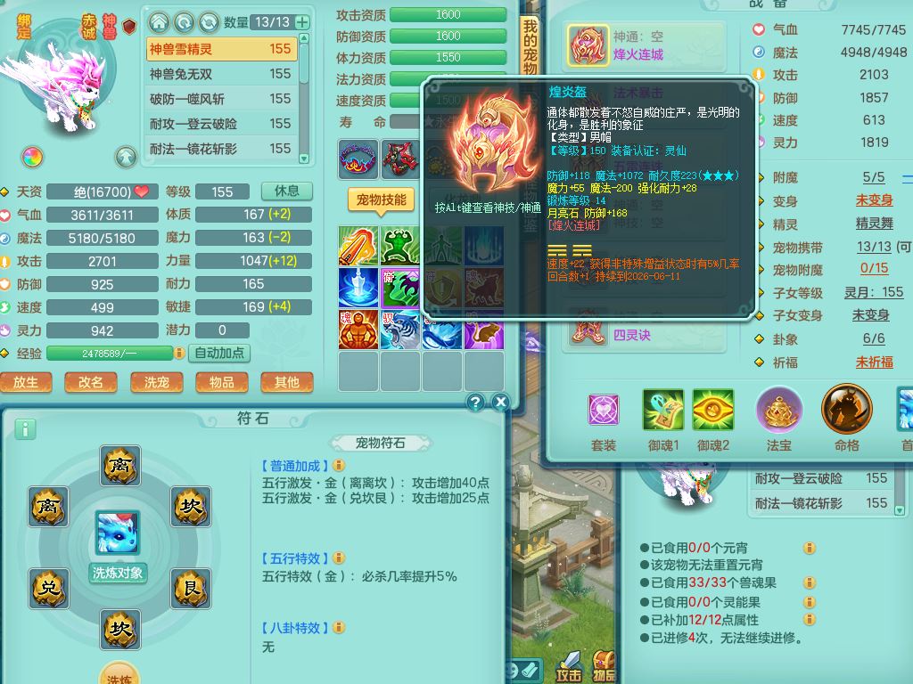ss9598三生万物158男天宫精灵舞,2内丹神,3镜花灵,法爆武器,五雷衣服,单加四灵鞋,鼎5.5,永久外观精灵皮肤,19内丹碎片,双人坐骑