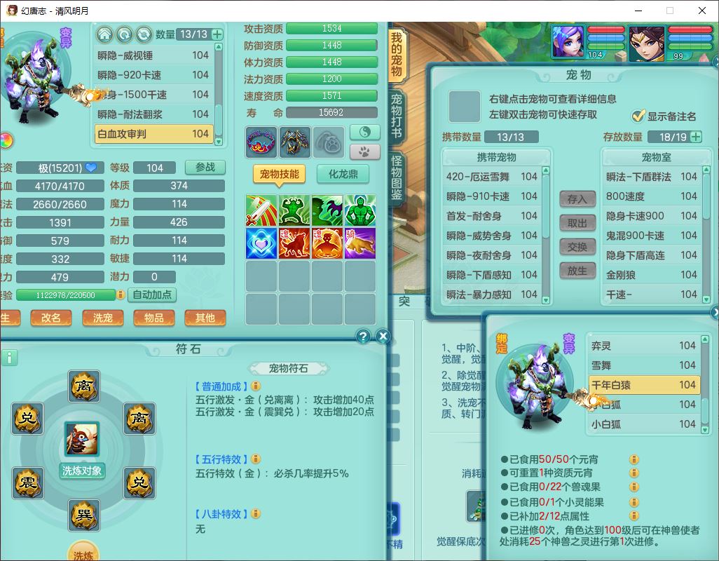 qf9600清风明月99男天宫【准潜龙号,差1条附加】全力精灵,1内(青蛇)2翻江4舍身1童子1金炉,7觉醒8六字3五字3四字15只满果子,10红全单加装备,Y群体止戈帽子,Y狂暴武器,崩山衣服,神佑破血项链,迅捷慈航鞋子,愤怒玉清腰带,鼎2.5+42+168,永久外观、精灵皮肤,1814金币,1坐骑,带150奶粉