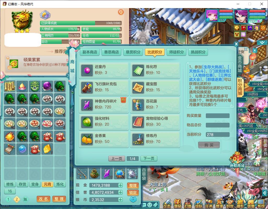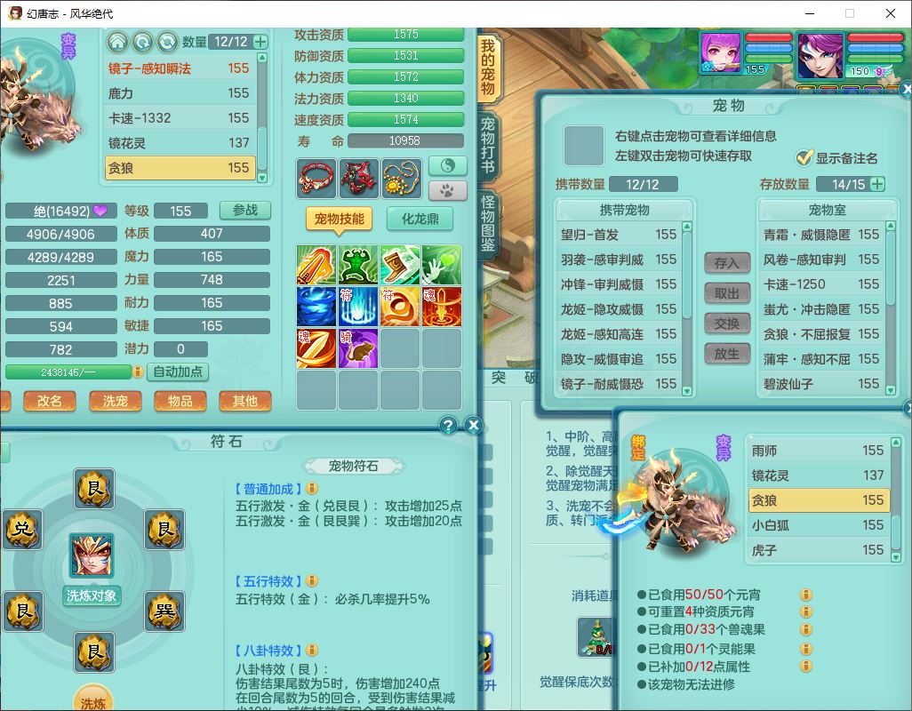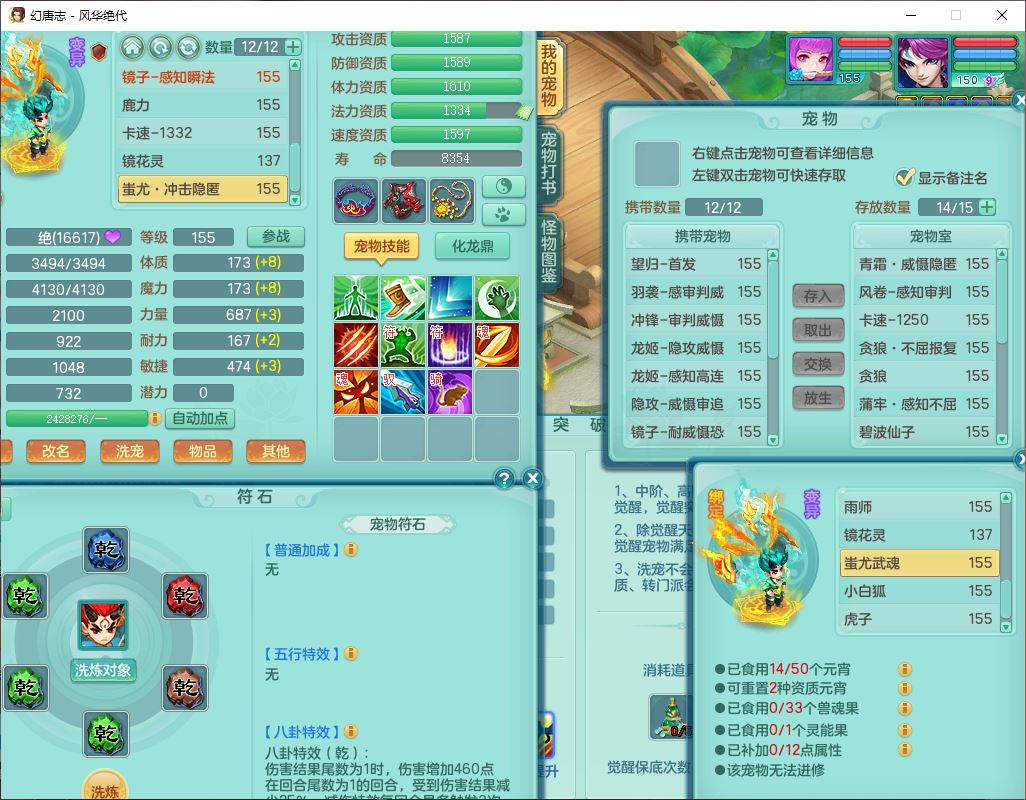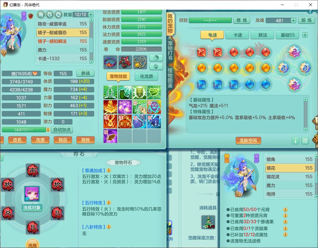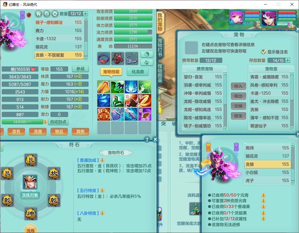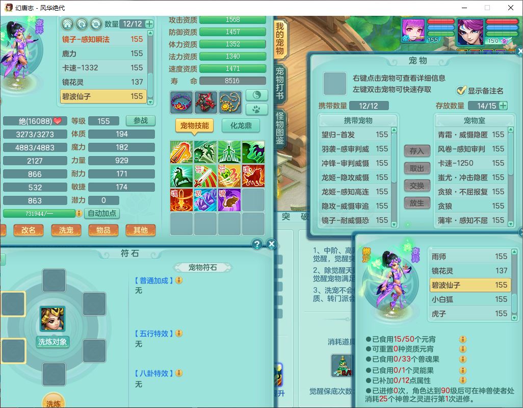 fh9611风华绝代159男万兽精灵舞,1神兽小马(无内)1望归3镜花1龙姬4特殊(羽袭、勇猛、堕天、灵傀),3觉醒6六字4四字综合6只满果子,全单加7红装备,破甲蓄力帽子,必杀武器,崩山衣服,鼎5.5,永久背饰、精灵皮肤,53个仙兽灵,17个内丹碎片,1洗练珠,2双人坐骑(1飞行),带150奶粉无量