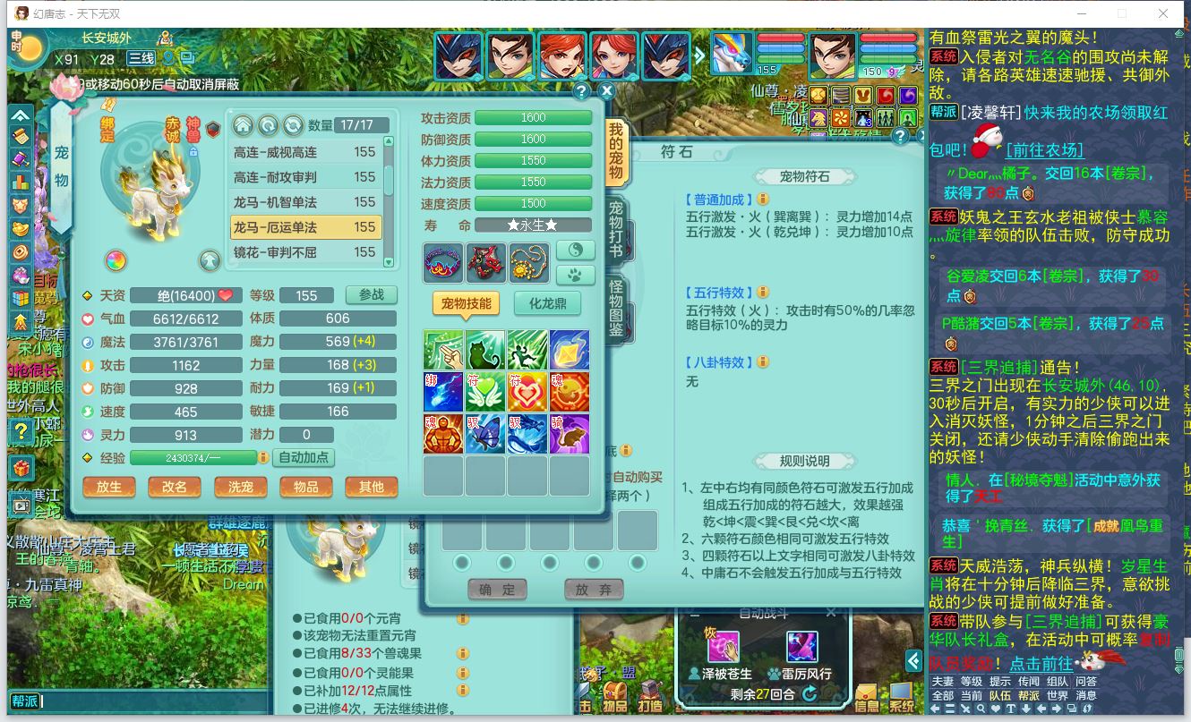 tx9625天下无双159男佛门【潜龙号】精灵舞,8字靓号,5龙(换)2内丹龙马1皮特殊(以战)3孩子4镜花灵,17格子20只满果子7觉醒8个纯6字,愤怒6特,鼎5.5+70+280,108天月卡,2只双人坐骑,带永久称谓