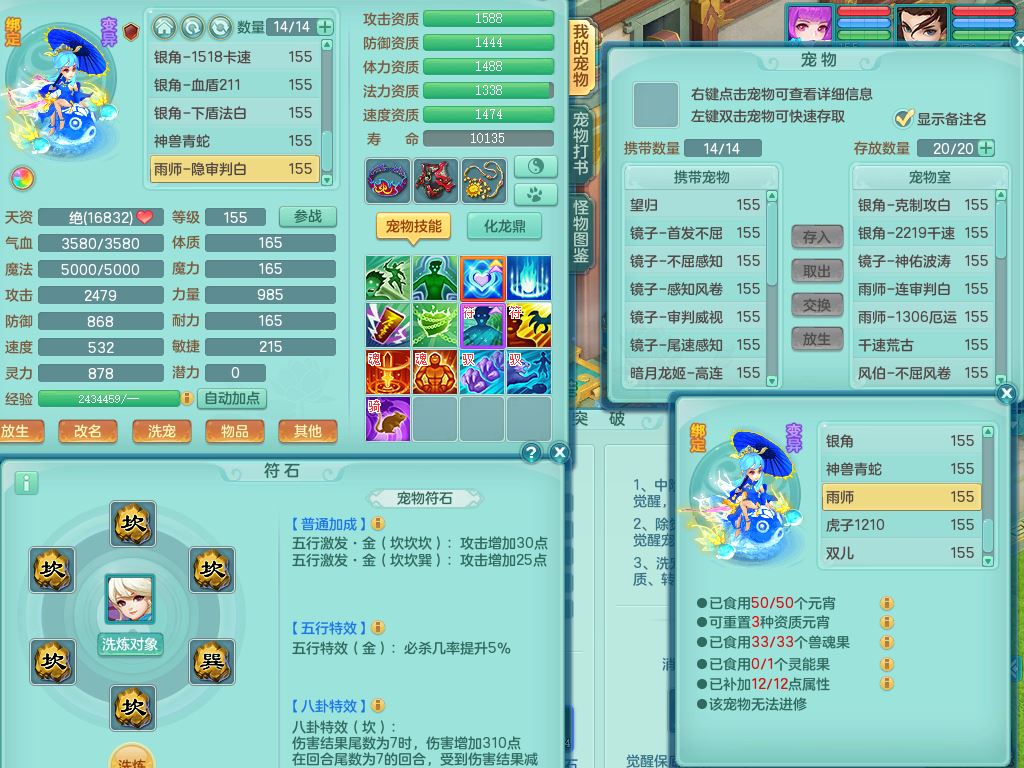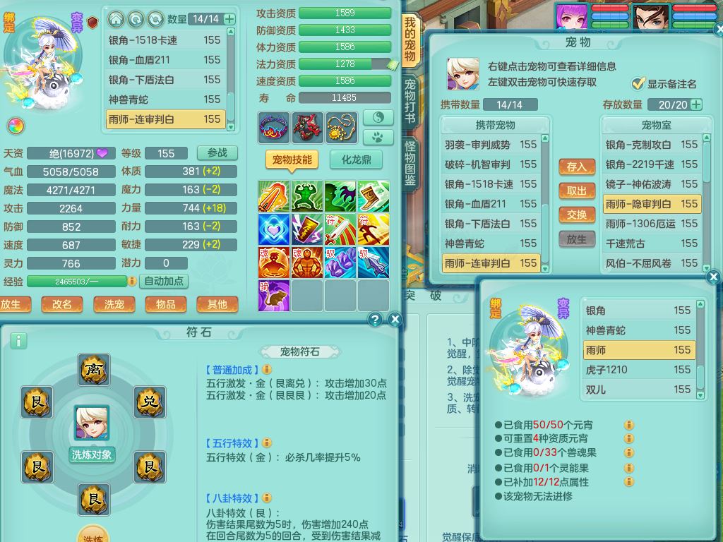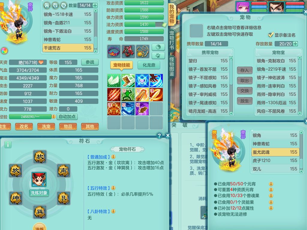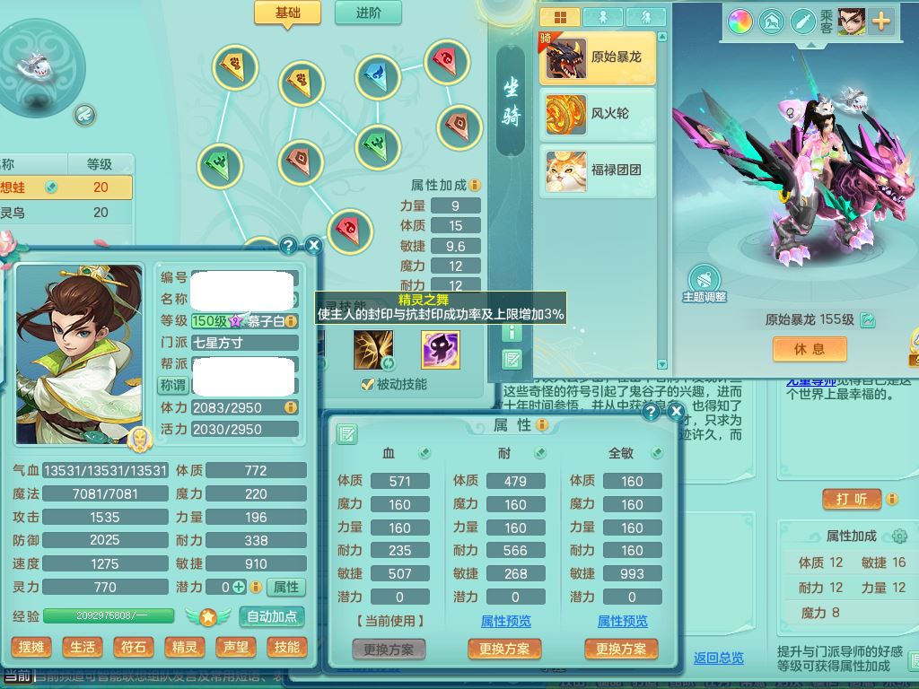 tx9620天下无双159男方寸【暴龙泰坦+西瓜冰】精灵舞,1龙(换,无内)1内丹青蛇1皮,3特殊(风卷/羽袭/剑胆)6镜花灵1龙姬,16只满果子13觉醒4个纯6字,9红愤怒5特,Y四海衣服,Y笑里项链,愤怒幸运腰带,鼎5.0+70+280,20天月卡,永久外观精灵皮肤,311W神武币,2228金币,24内丹碎片,宠排在榜,2坐骑(1只双人)
