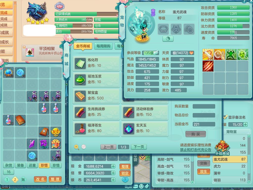 qq9623七窍玲珑159男佛门,宝宝装备齐全,1镜花灵,回春武器,愤怒4特,鼎4.5,263W神武币