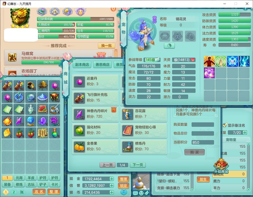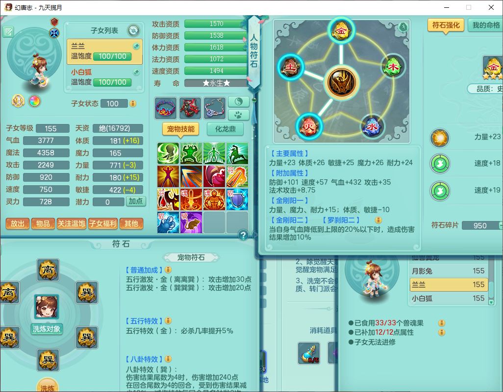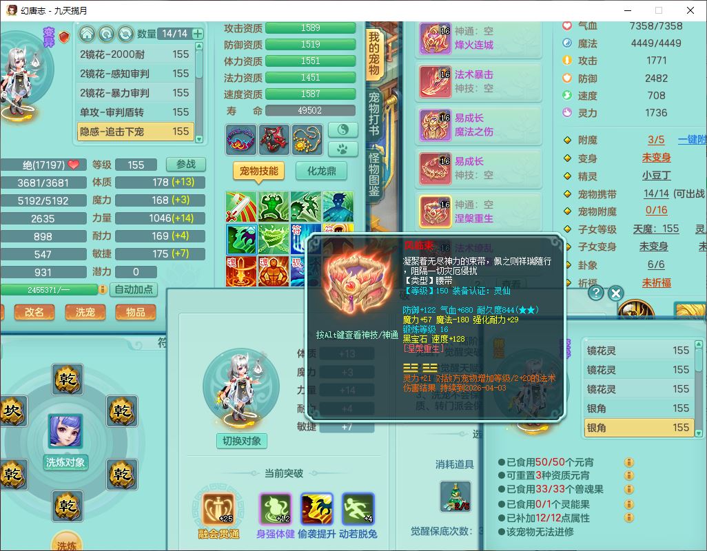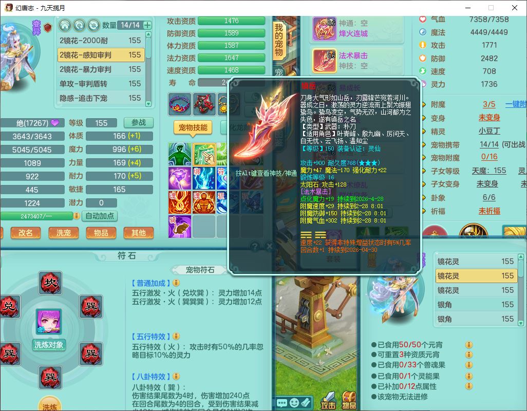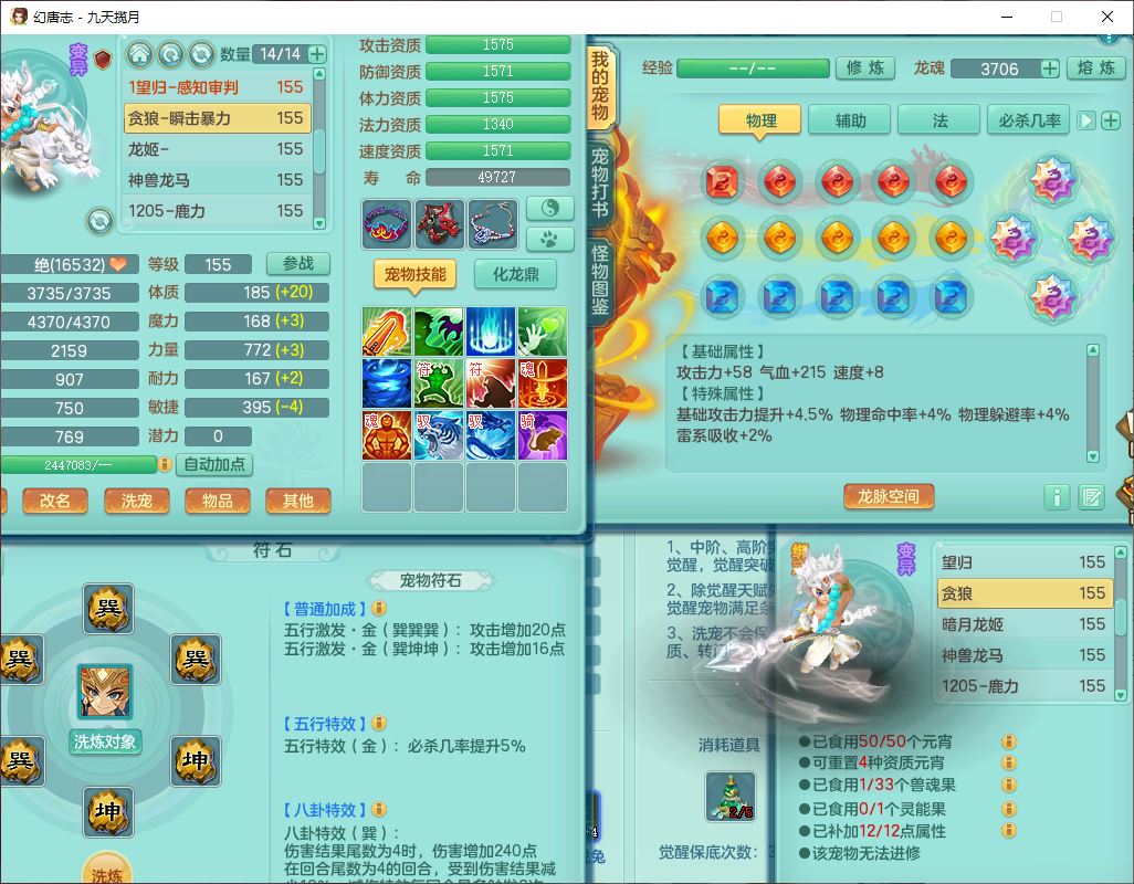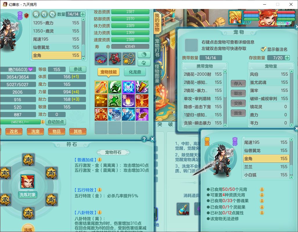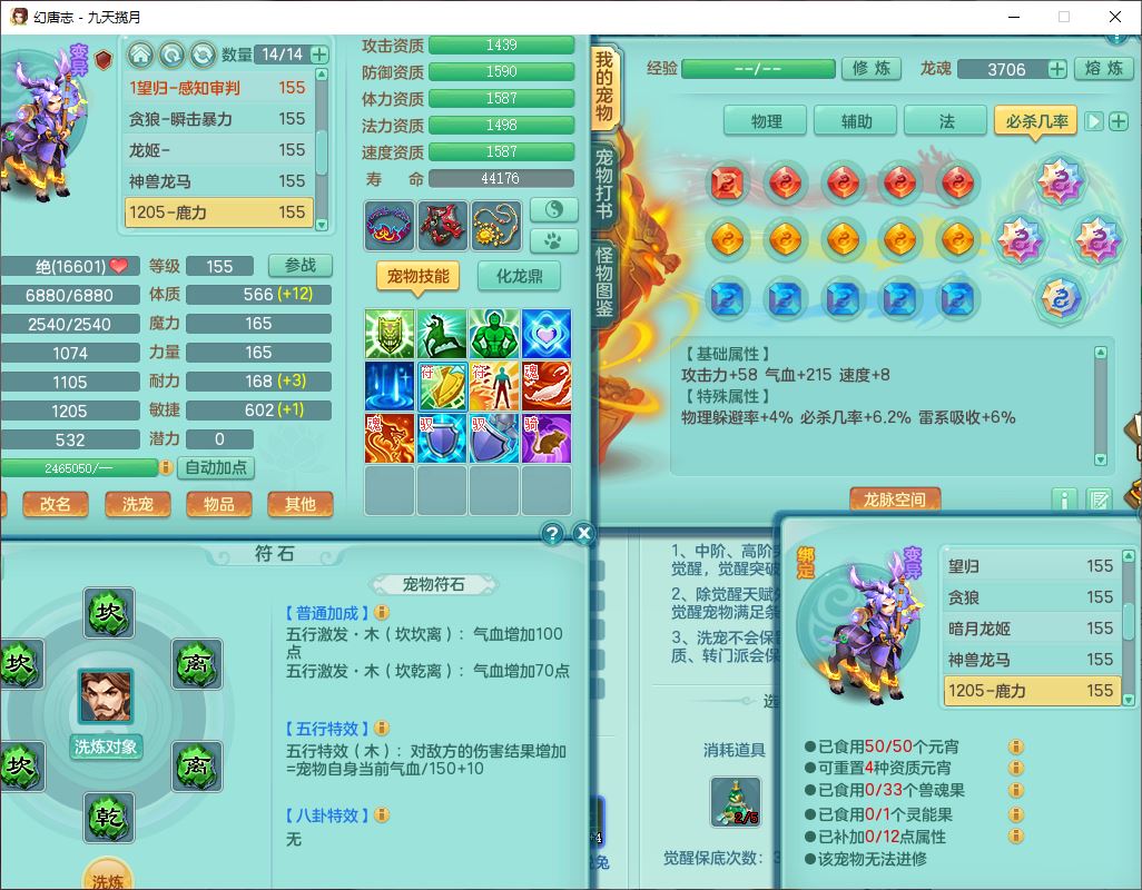 jt9601九天揽月159男鬼谷精灵舞,1龙(换,无内)1内1望归3镜花灵1龙姬1炉子1特殊(兽决禁锢)2宠皮,2觉醒4五字13四字综合6只满果子,8红装备,单加烽火帽子,单加法爆武器,单加Y魔法之伤衣服,276Y项链,单加慈航腰带,单加法缭群体守备鞋子,鼎4.5,1史诗2传说11精良法宝,24天月卡,庭院154,永久脸饰、精灵皮肤,4混沌果,1双人飞行坐骑