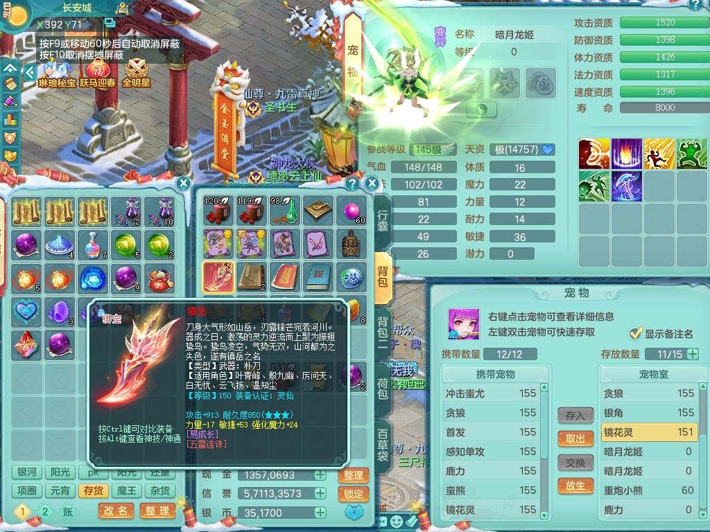 20-9632,2020区159男魔王【潜龙号】精灵怒,1特殊【青霜兽决】3镜花灵,8觉醒,全身高单加,法爆武器,Y衣服,254Y项链,Y慈航腰带,5.5+70+280鼎