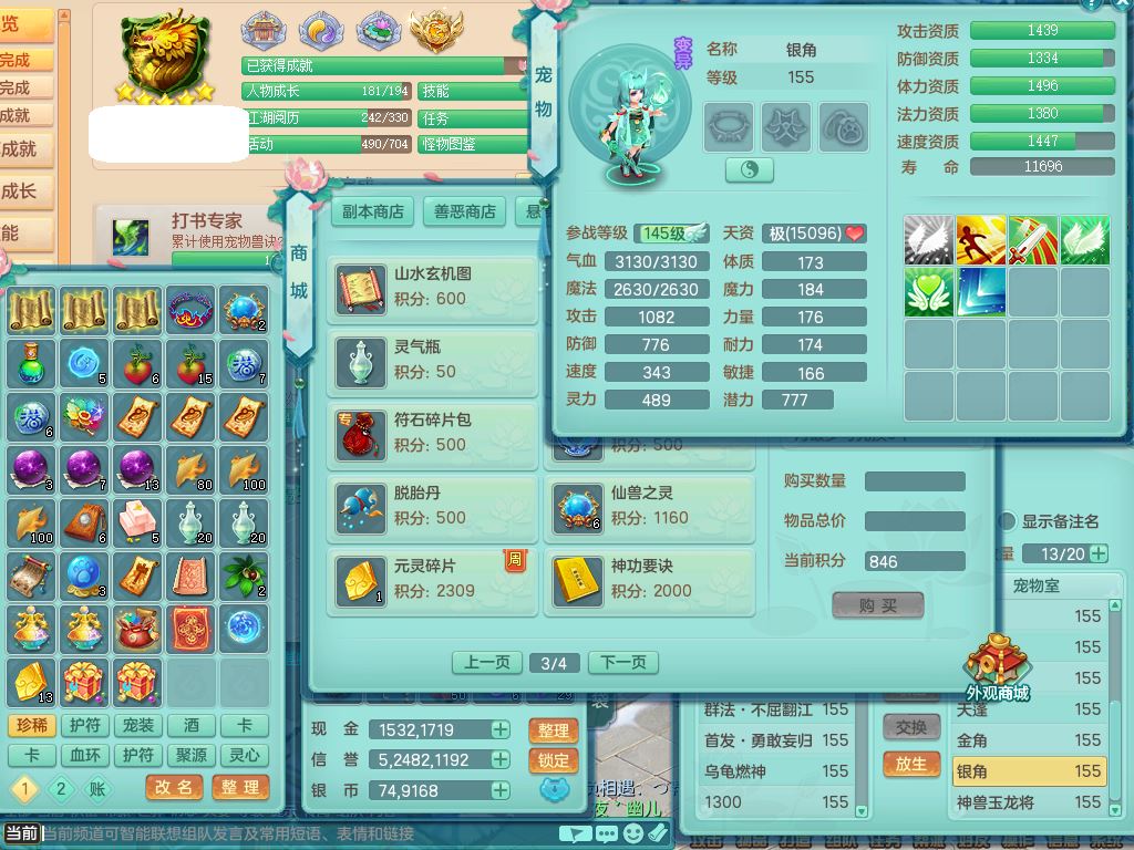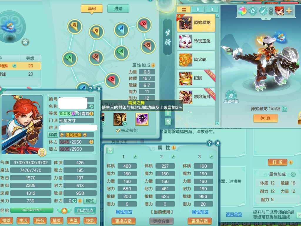qq9654七窍玲珑159男方寸【潜龙号+暴龙逍客+西瓜冰】精灵舞,1龙(换)1内4皮1特殊(破碎)4镜花灵1龙姬,18格子24只满果子13觉醒11个纯6字,12红星辰之拥,封印双红头,Y封锁晶清武器,幸运神佑四海项链,迅捷笑里鞋,鼎5.5+70+280,56天月卡,庭院161,永久外观精灵皮肤,29内丹碎片,宠排在榜,2只双人坐骑