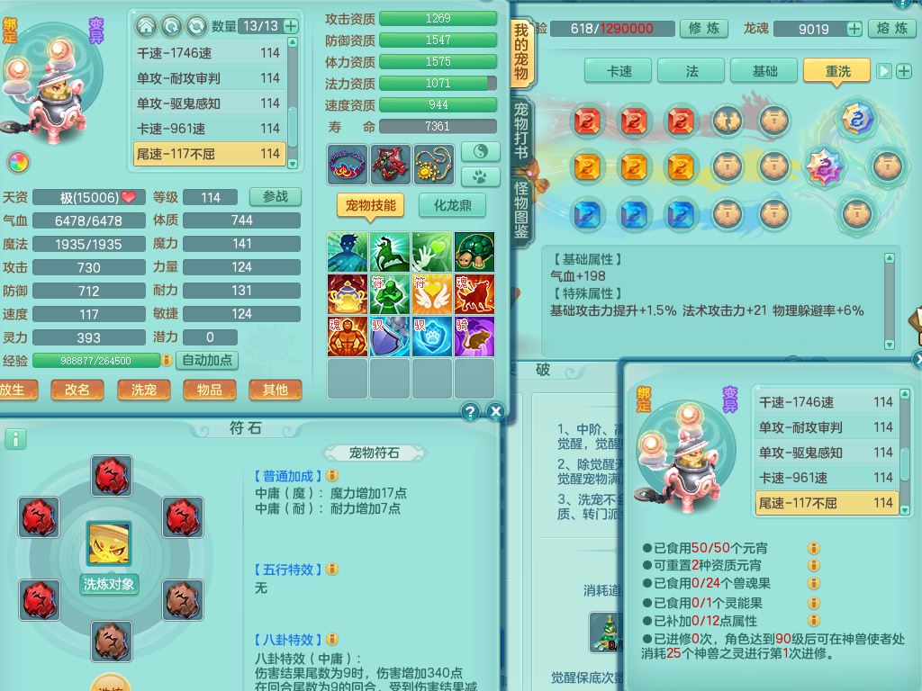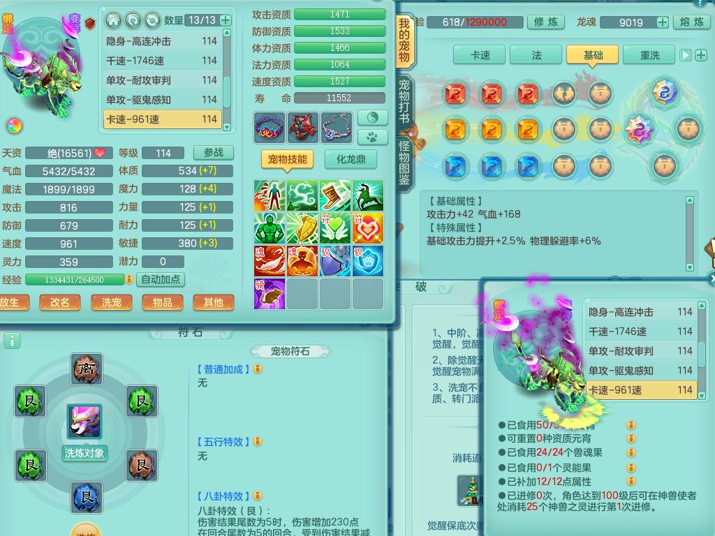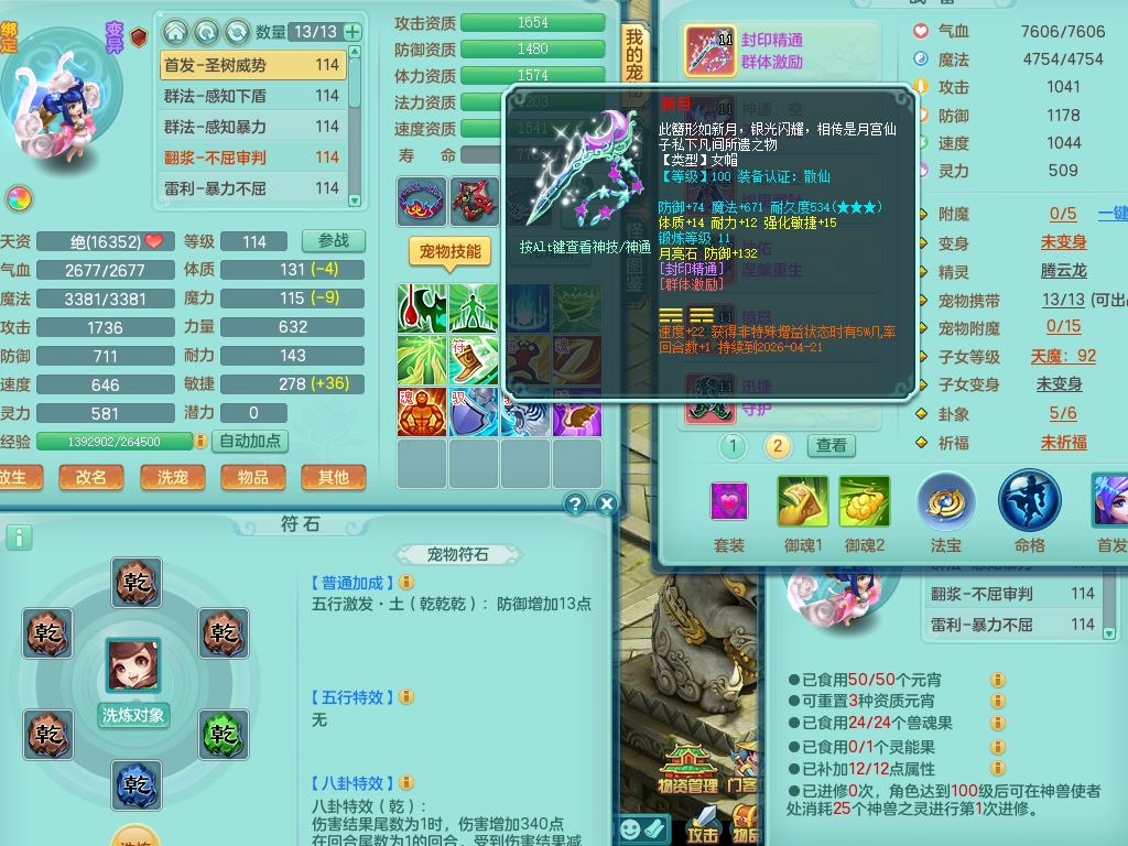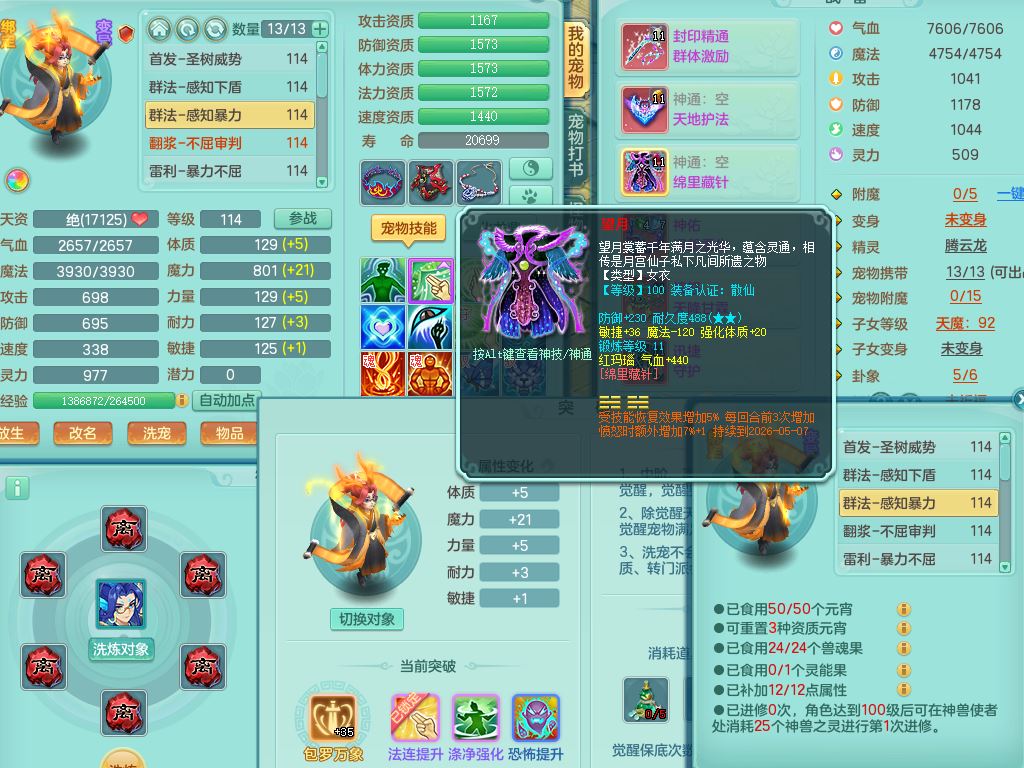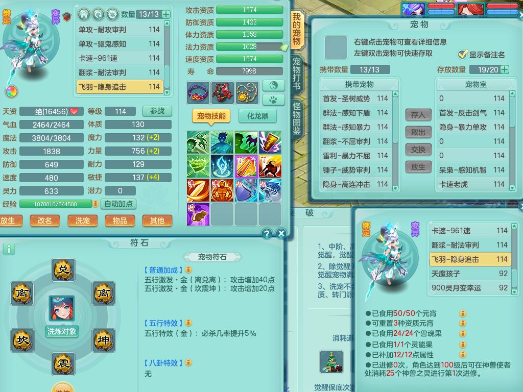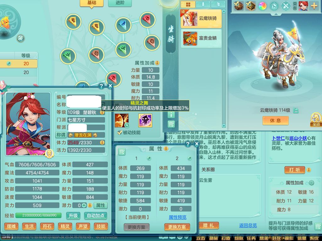 tx9657天下无双109女方寸【潜龙号】精灵舞,1内丹龙马,18只满果子10觉醒11个纯6字,10红星辰之拥,愤怒6特,封印双红头,神佑慈航项链,愤怒四海腰带,迅捷守护鞋,鼎2.5+42+168,永久外观,18仙兽灵,宠排在榜,双人坐骑