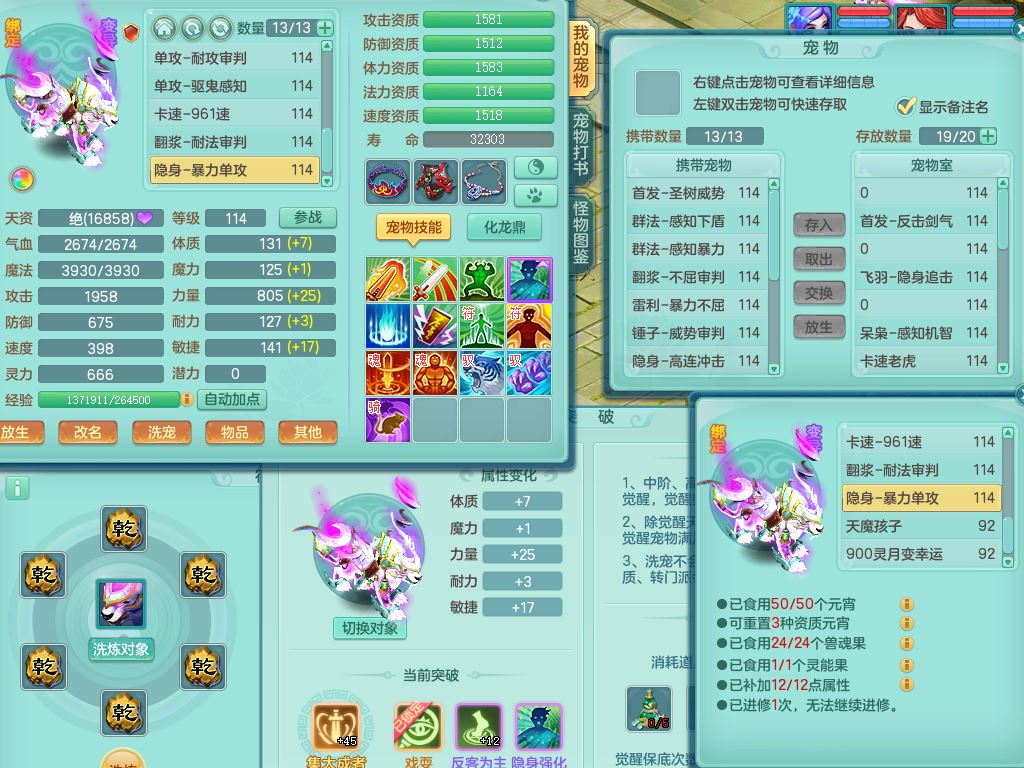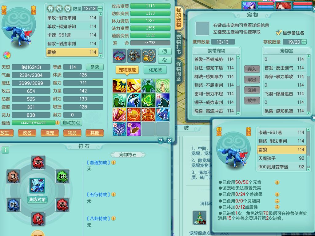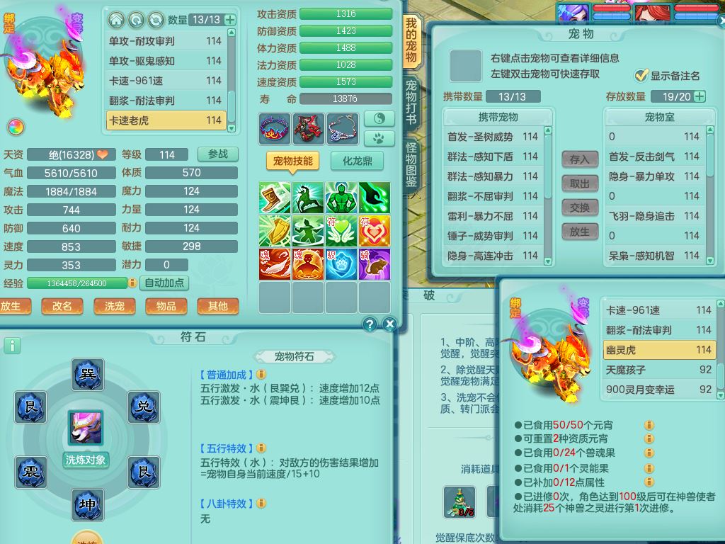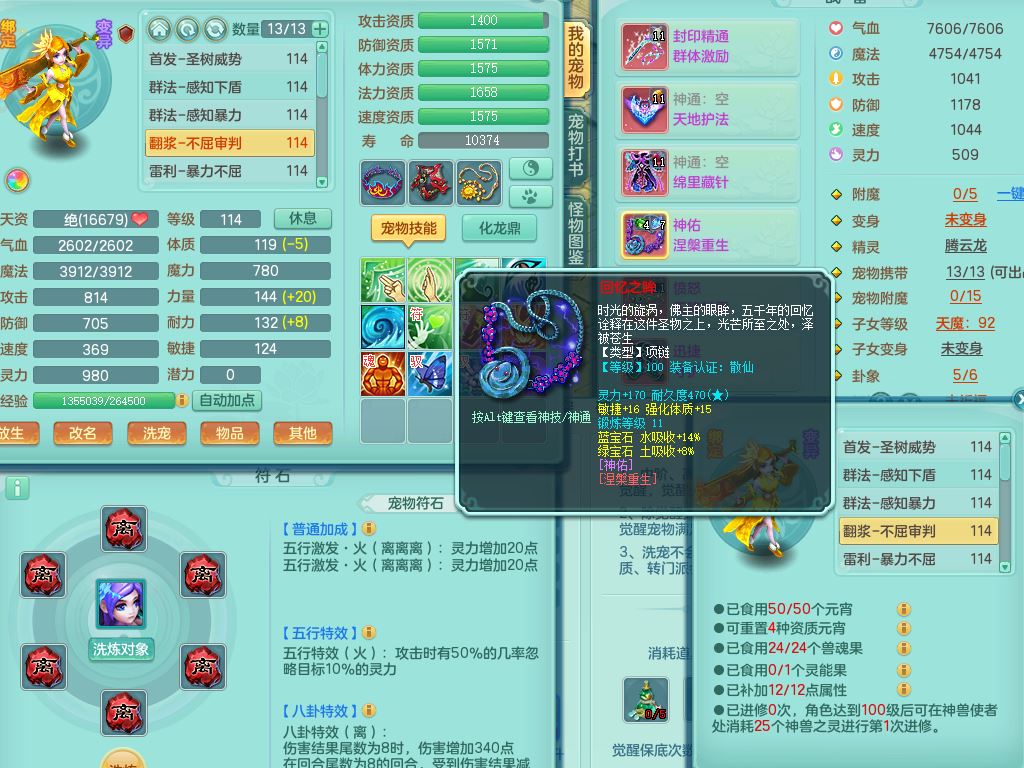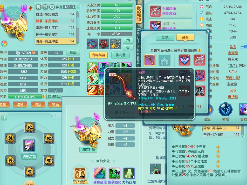 tx9657天下无双109女方寸【潜龙号】精灵舞,1内丹龙马,18只满果子10觉醒11个纯6字,10红星辰之拥,愤怒6特,封印双红头,神佑慈航项链,愤怒四海腰带,迅捷守护鞋,鼎2.5+42+168,永久外观,18仙兽灵,宠排在榜,双人坐骑