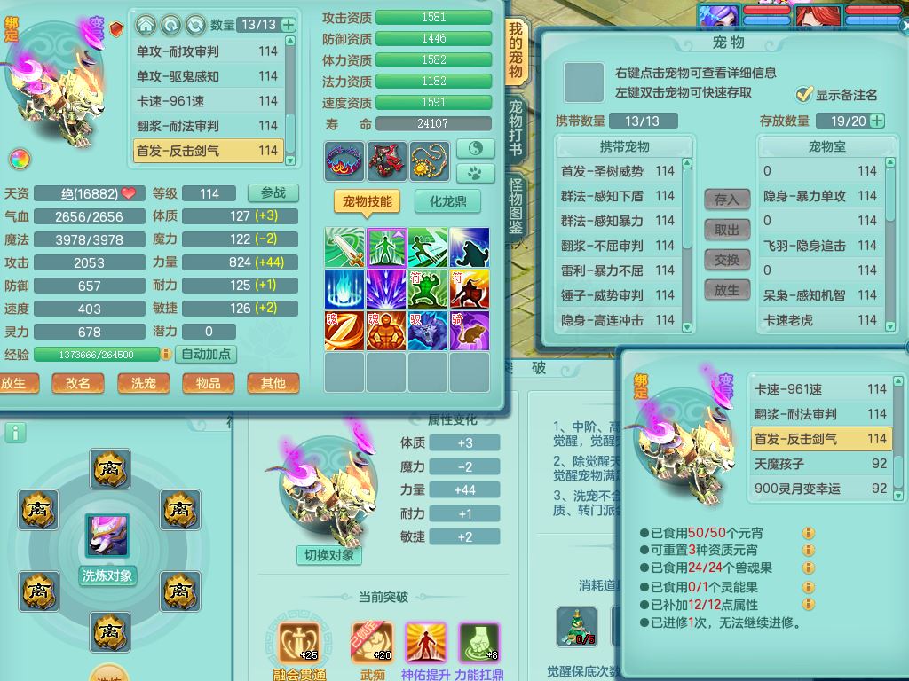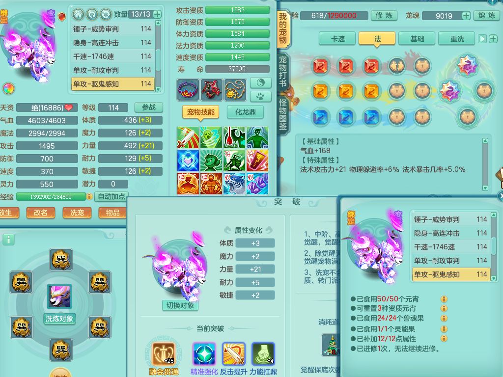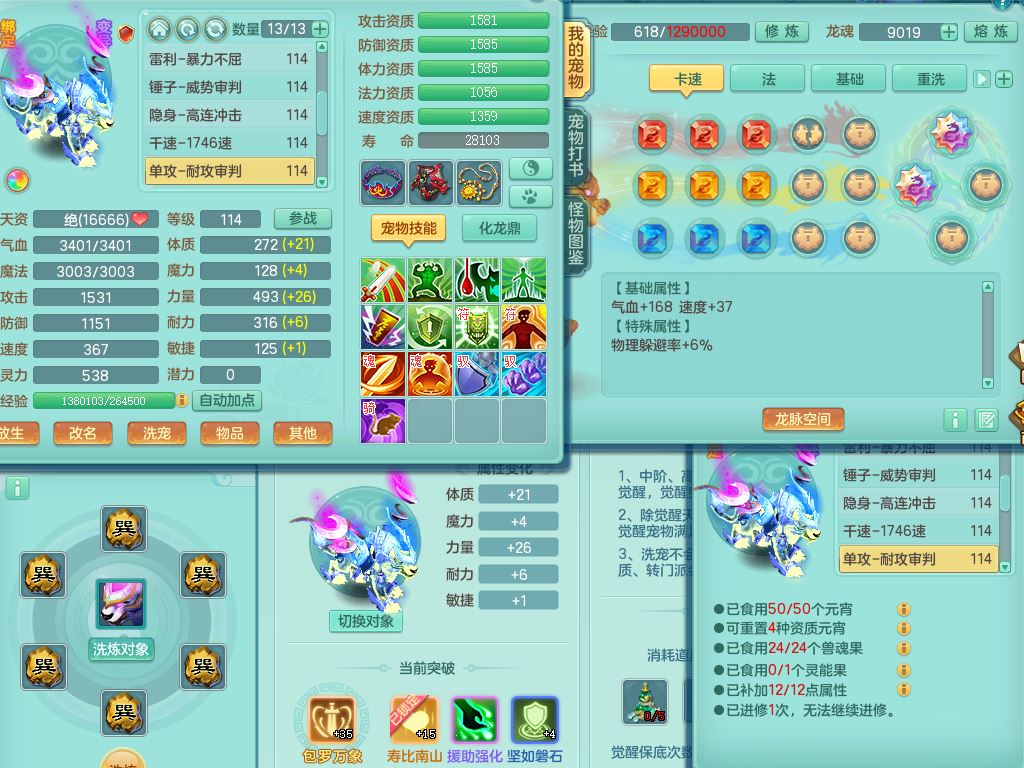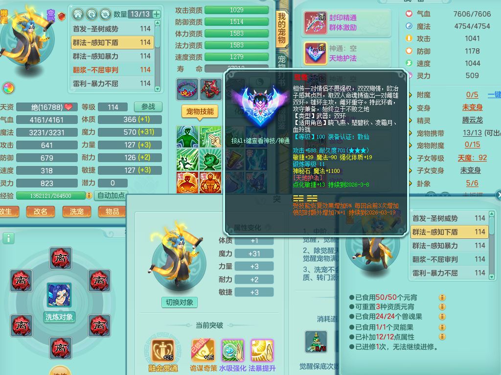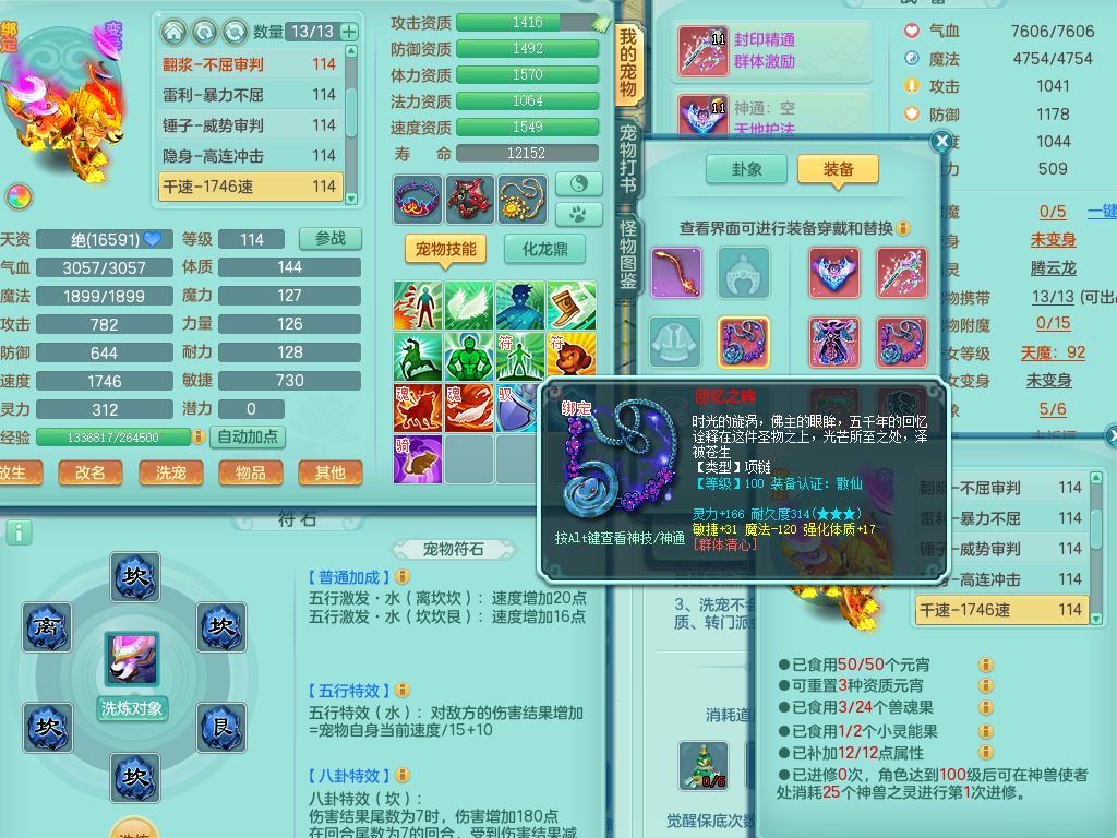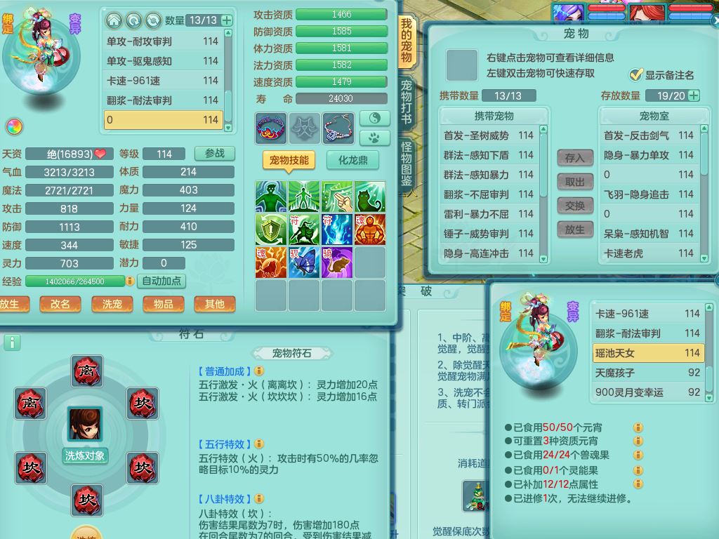 tx9657天下无双109女方寸【潜龙号】精灵舞,1内丹龙马,18只满果子10觉醒11个纯6字,10红星辰之拥,愤怒6特,封印双红头,神佑慈航项链,愤怒四海腰带,迅捷守护鞋,鼎2.5+42+168,永久外观,18仙兽灵,宠排在榜,双人坐骑