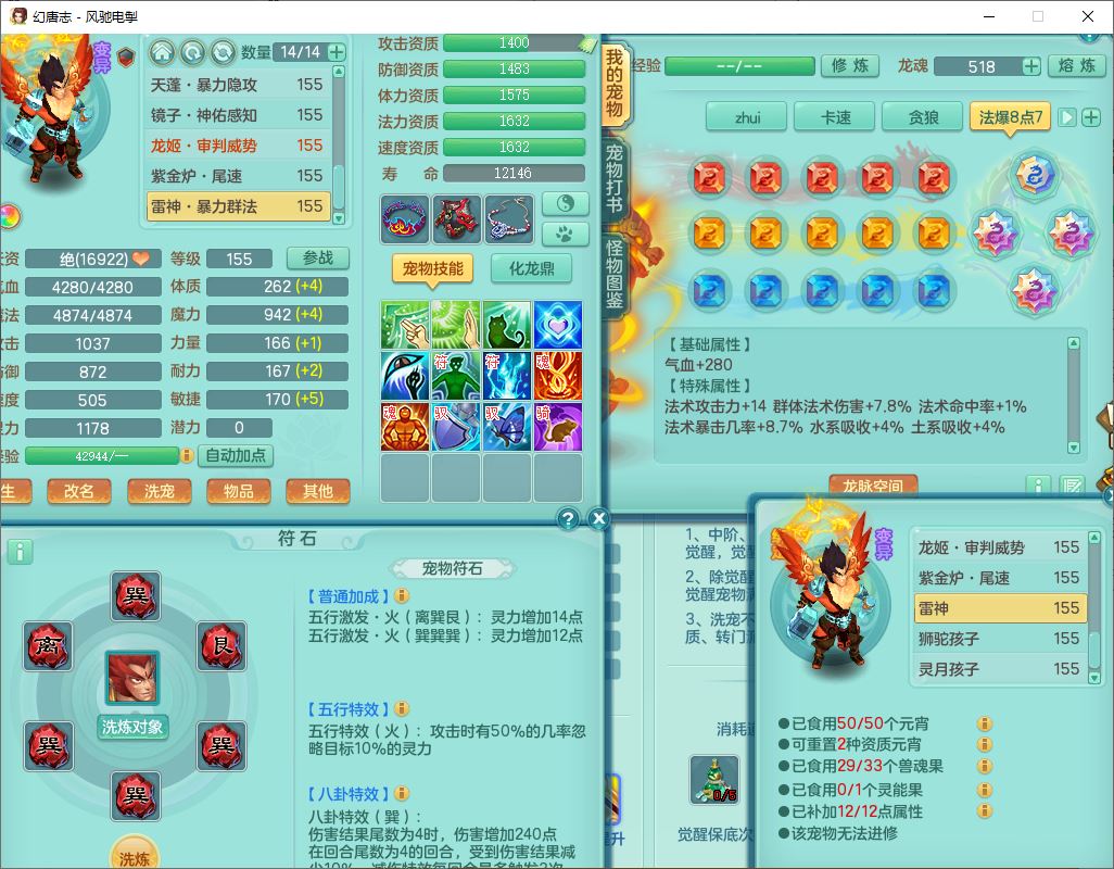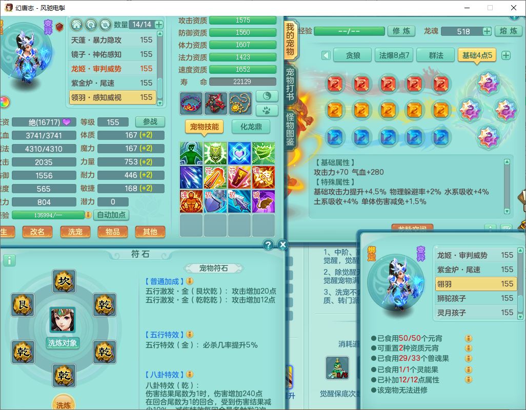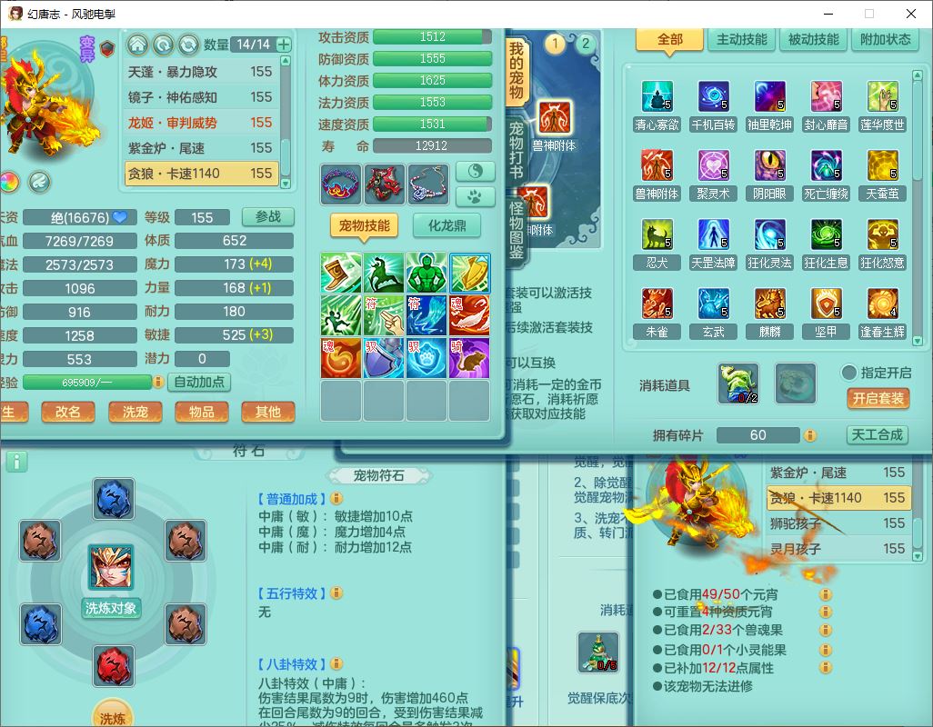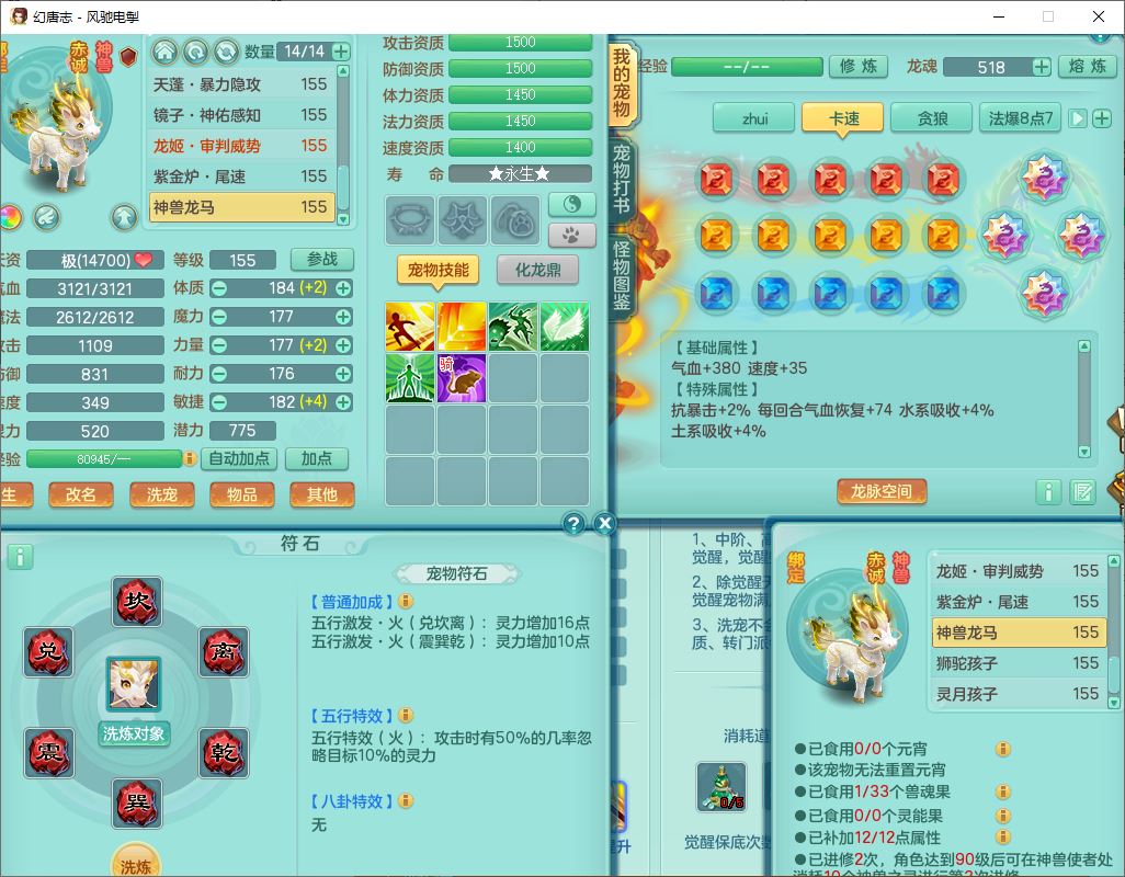 fc9665风驰电掣159男万兽【潜龙号】精灵歌,4位靓号,4龙(换)3内(1龙马)1龙姬2镜花1金炉,7觉醒3宠皮9六字1五字(洗练珠)3四字综合18只满果子,装备齐全,Y武器,崩山衣服,五雷帽子,击退武器,鼎法爆8.7+70+280,冰晶庭院202,永久外观、精灵皮肤,5个内丹碎片,仓库多高书存货,5坐骑(1双人飞行),带150奶粉,1双人坐骑