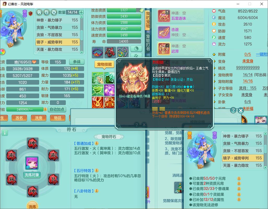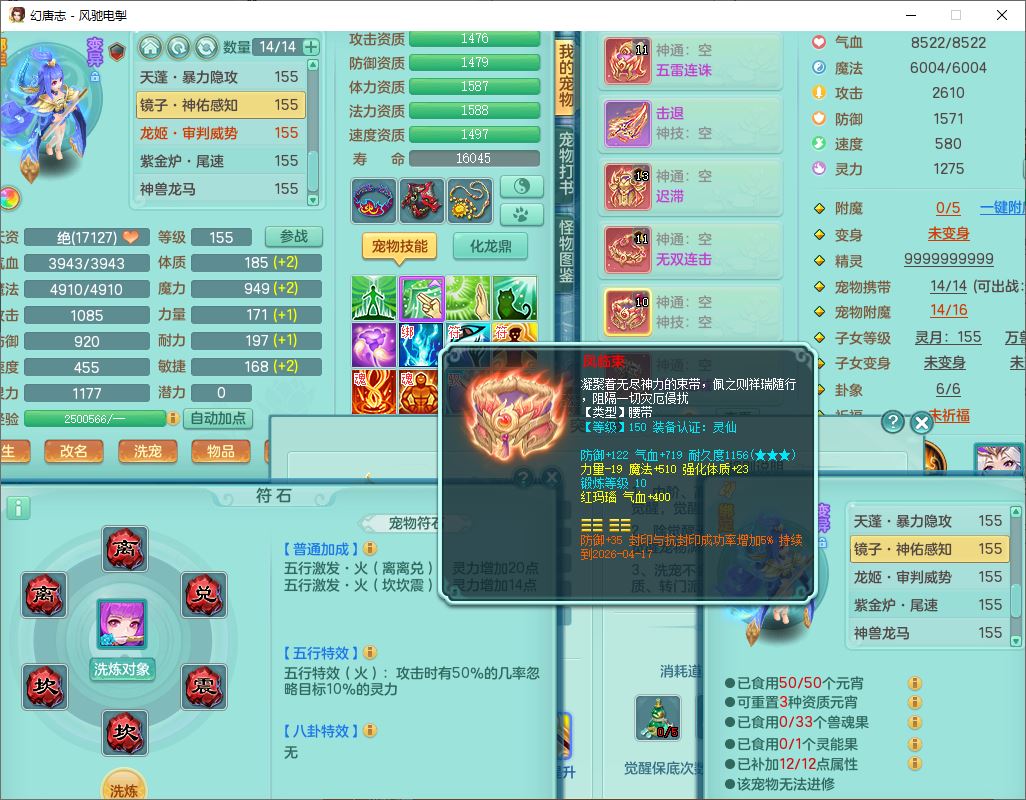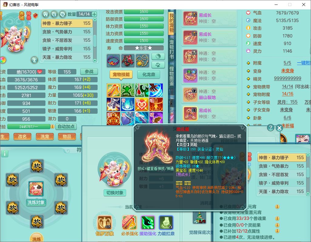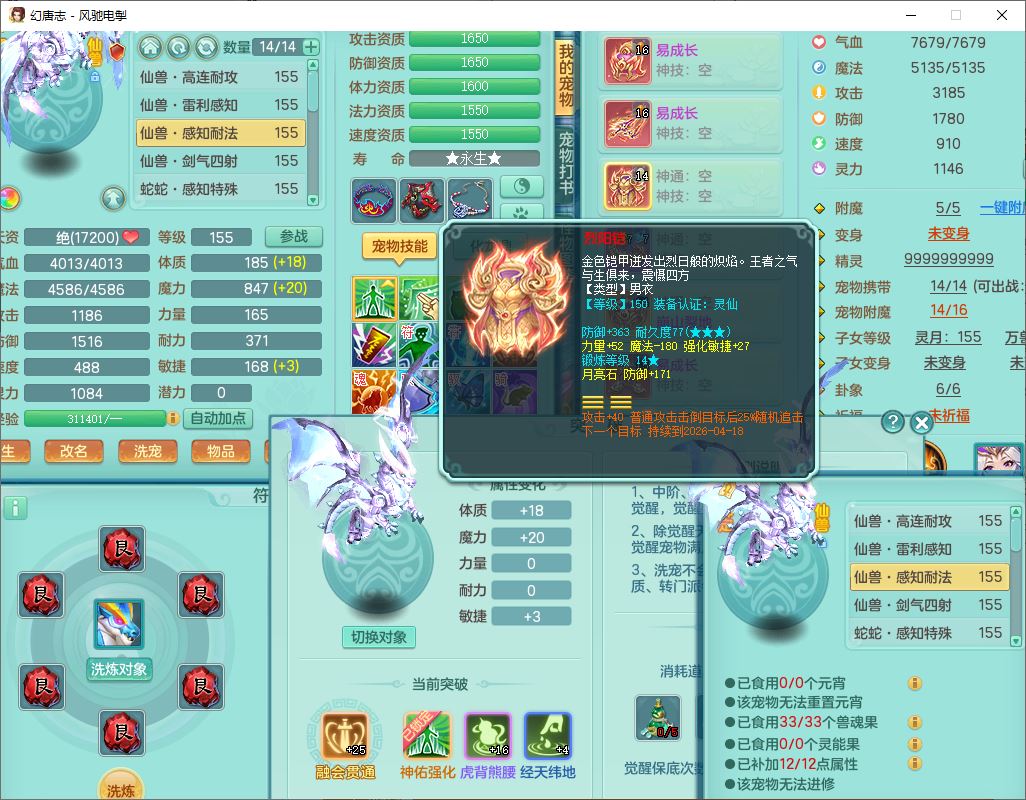 fc9665风驰电掣159男万兽【潜龙号】精灵歌,4位靓号,4龙(换)3内(1龙马)1龙姬2镜花1金炉,7觉醒3宠皮9六字1五字(洗练珠)3四字综合18只满果子,装备齐全,Y武器,崩山衣服,五雷帽子,击退武器,鼎法爆8.7+70+280,冰晶庭院202,永久外观、精灵皮肤,5个内丹碎片,仓库多高书存货,5坐骑(1双人飞行),带150奶粉,1双人坐骑