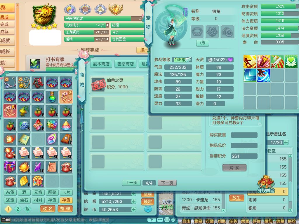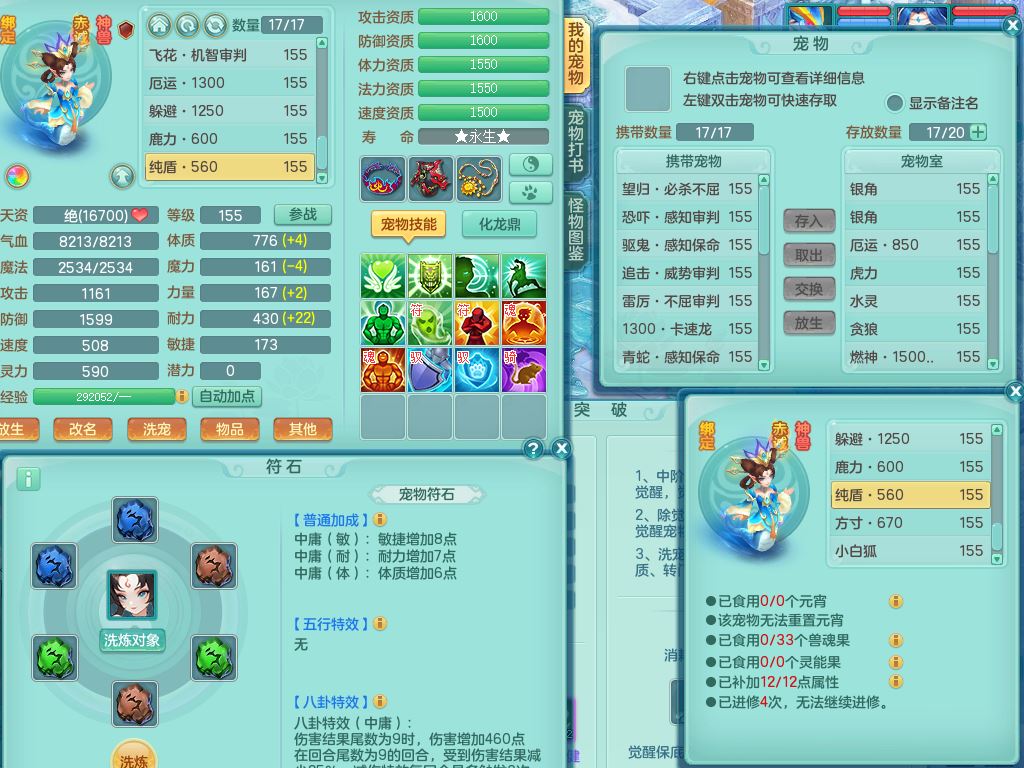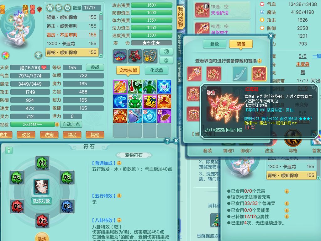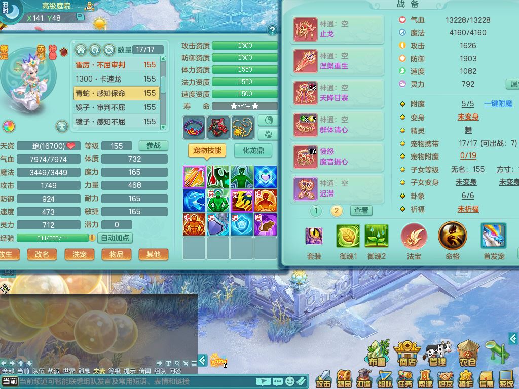 ym9616扬名立万159女普陀【潜龙号】精灵歌+舞,4字靓号,5龙(换)3内3皮(2青蛇)1破境,6特殊(飞花/剑胆/兽决虎虎/烈焰/雷厉/影袭)综合24只满果子9觉醒8个纯6字,全身高单加,8红愤怒6特,愤怒绝幻腰带,匠心野兽鞋,鼎5.5+70+280,2套符石,125天月卡,冰晶庭院房屋152,5坐骑(3只双人)带永久称谓,带2个150小号