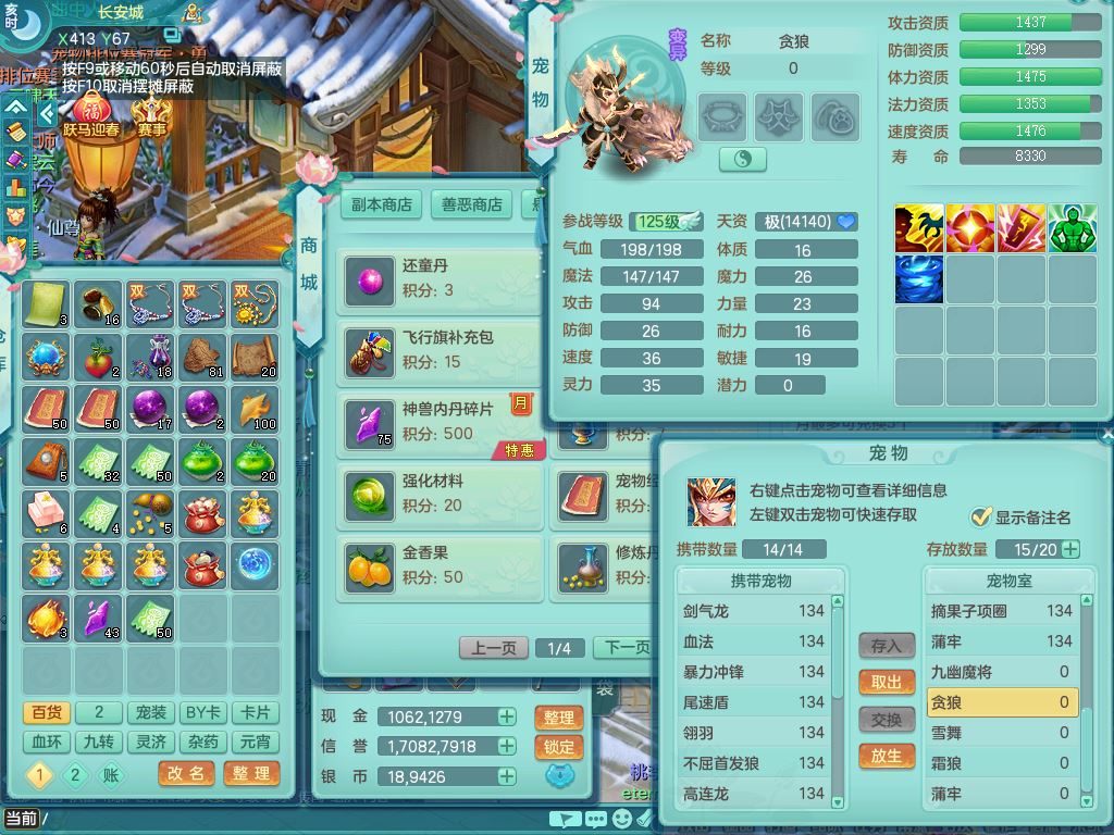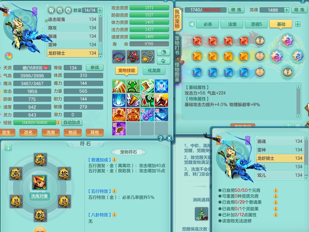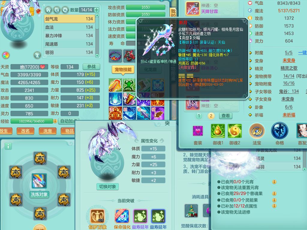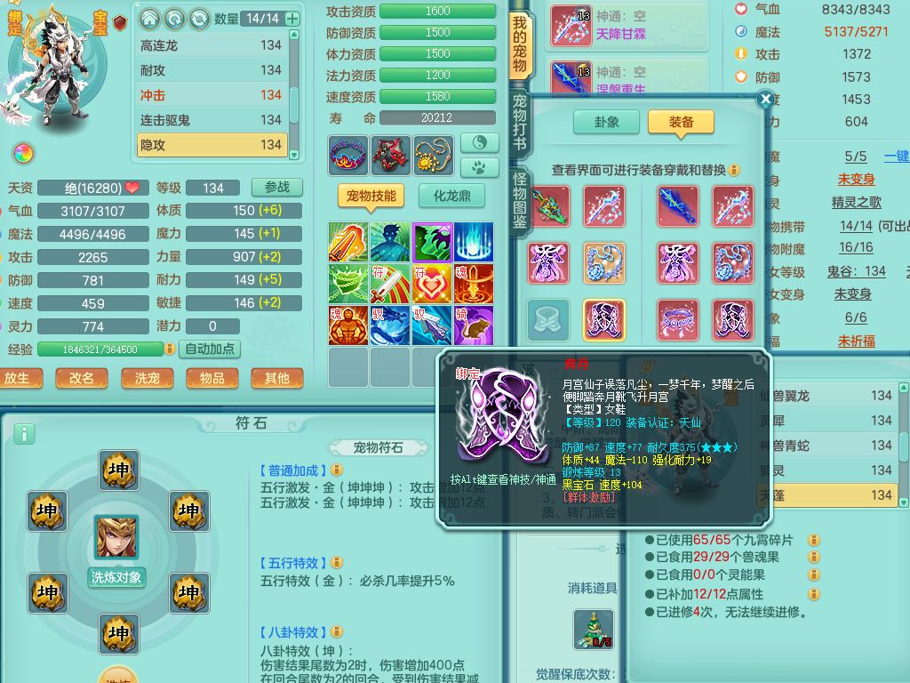 jt9686九天揽月129女五庄【潜龙号】精灵舞,2龙(换)2内(1青蛇),综合14只满果子7觉醒8个纯6字,全身高单加8红,强壮笑里衣服,愤怒Y腰带,迅捷鞋,物理729单加Y武器,防御破血衣服,鼎4.0+56+224,202天月卡,永久背饰,43内丹碎片,2坐骑(1只双人)