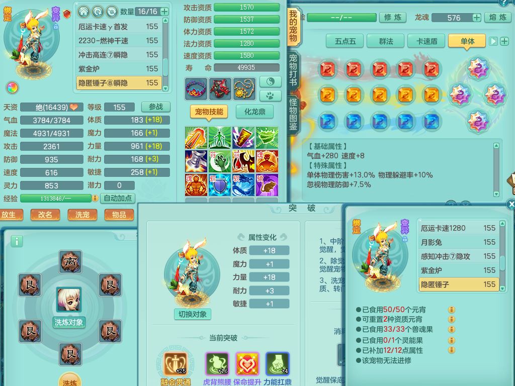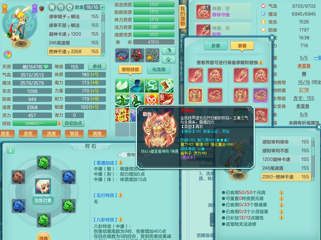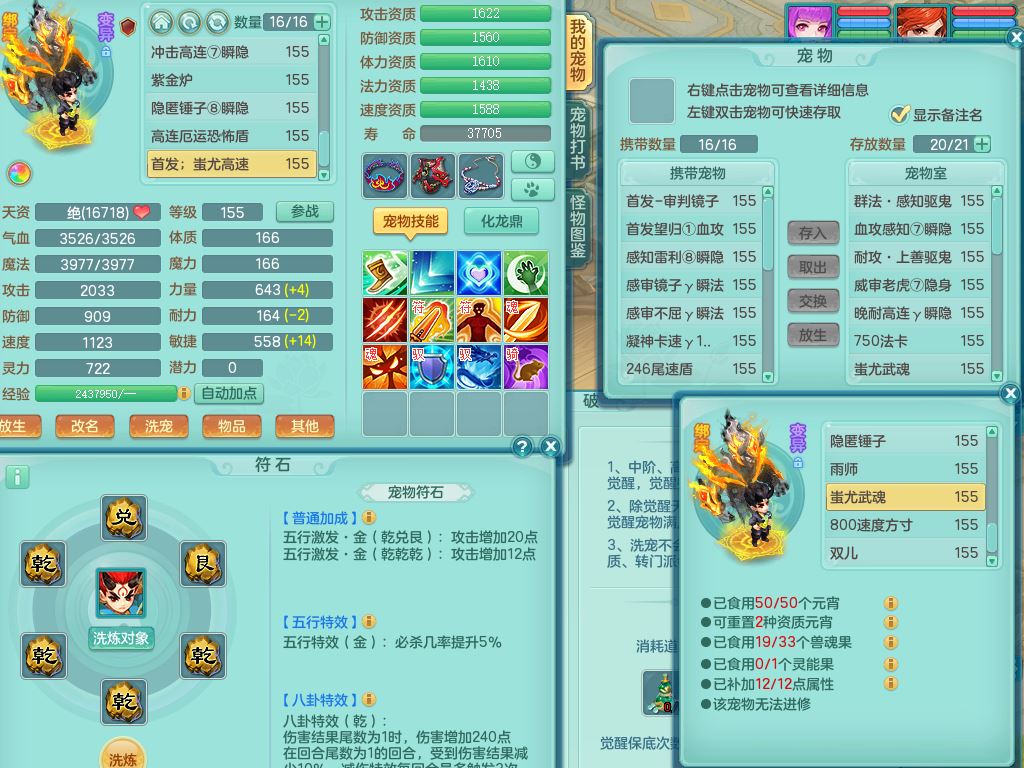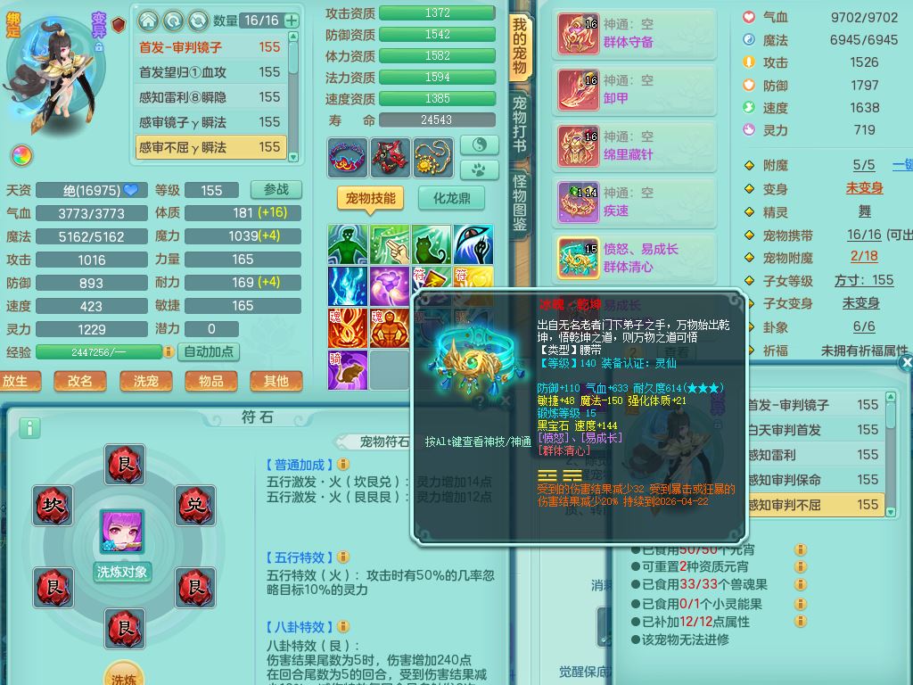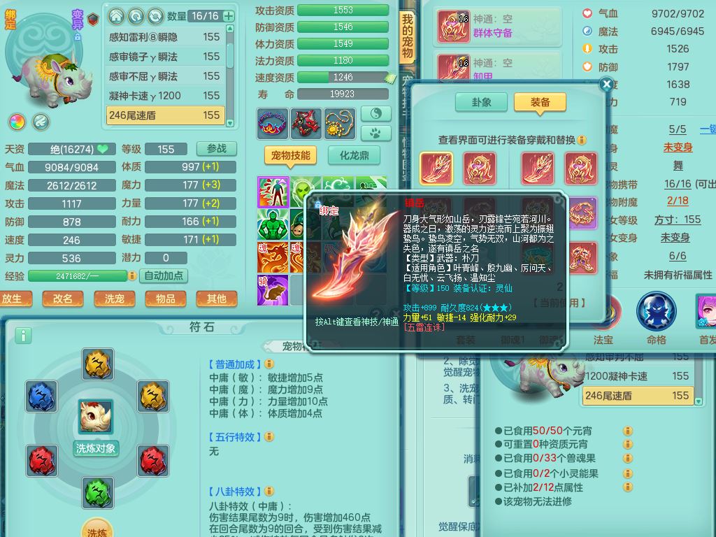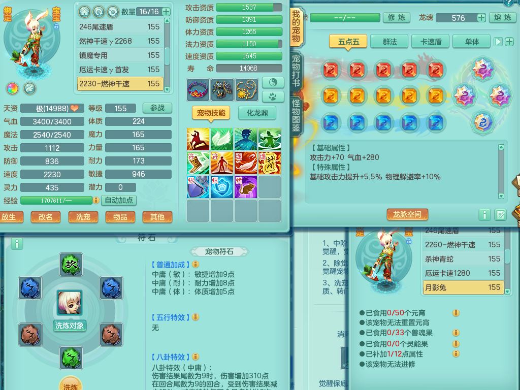 jt9690九天揽月159男方寸【潜龙号】精灵舞,1龙(换)1内丹青蛇2皮1破境,3特殊(虎虎/上善/藕断兽决)3镜花灵,19只满果子10觉醒7个纯6字,全身高单加9红愤怒6特,愤怒Y玉清腰带,Y四海鞋,法系275单加Y项链,单加五雷武器,鼎5.5+70+280,永久外观精灵皮肤,41内丹碎片,2只双人坐骑