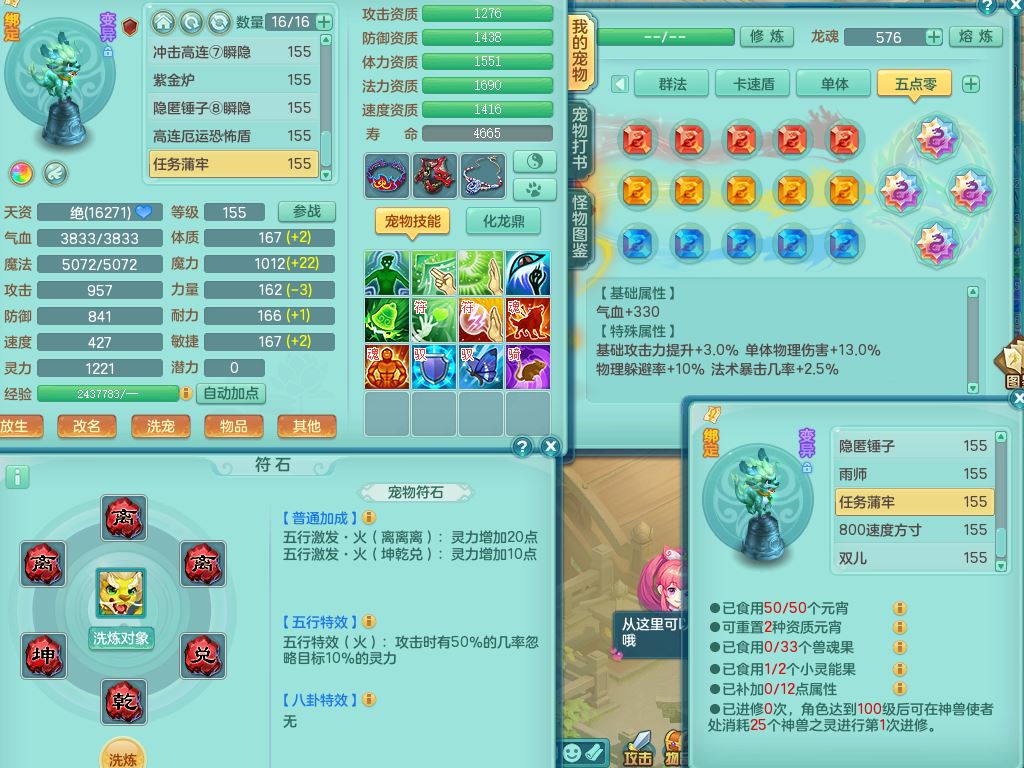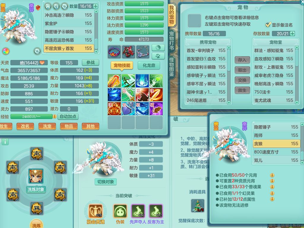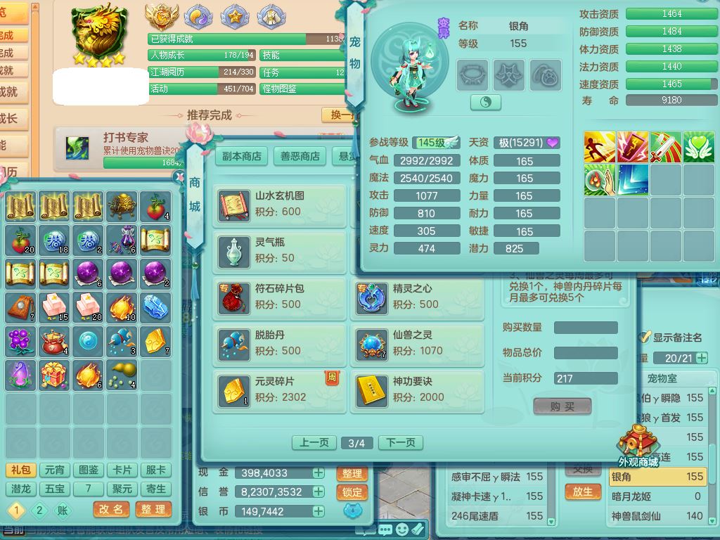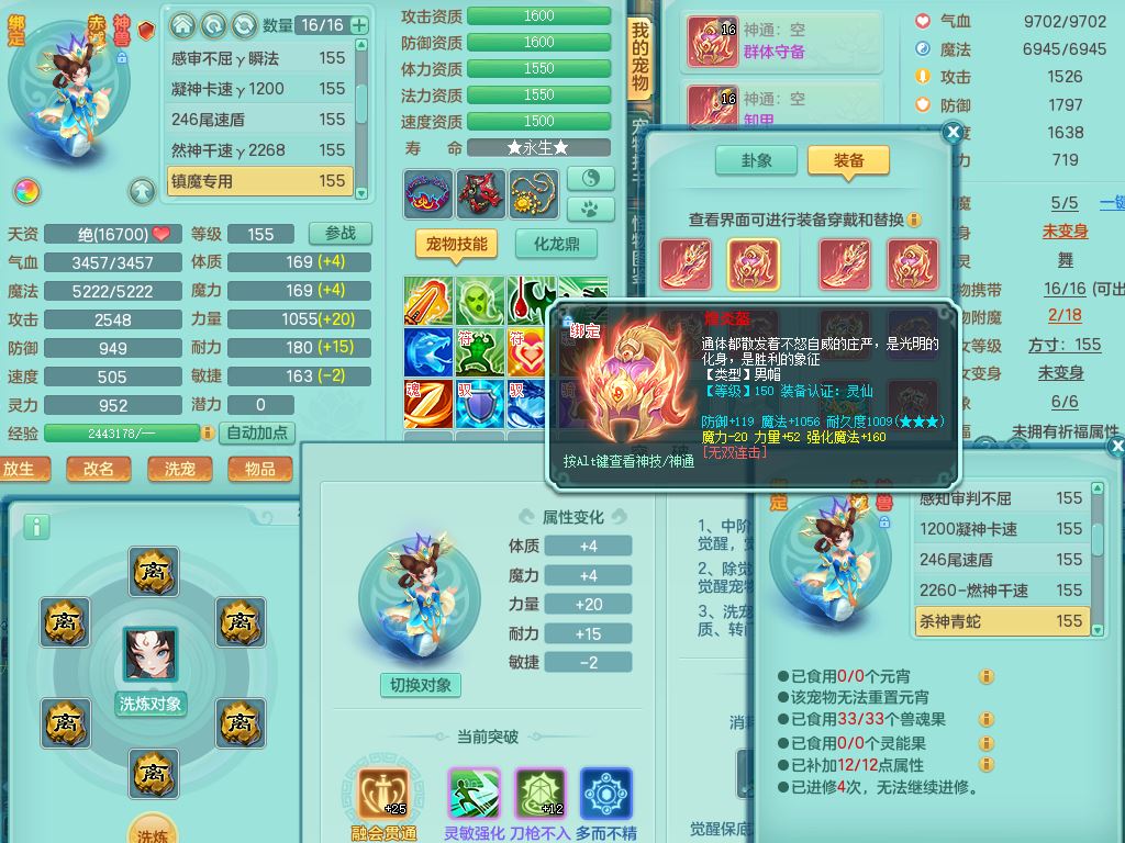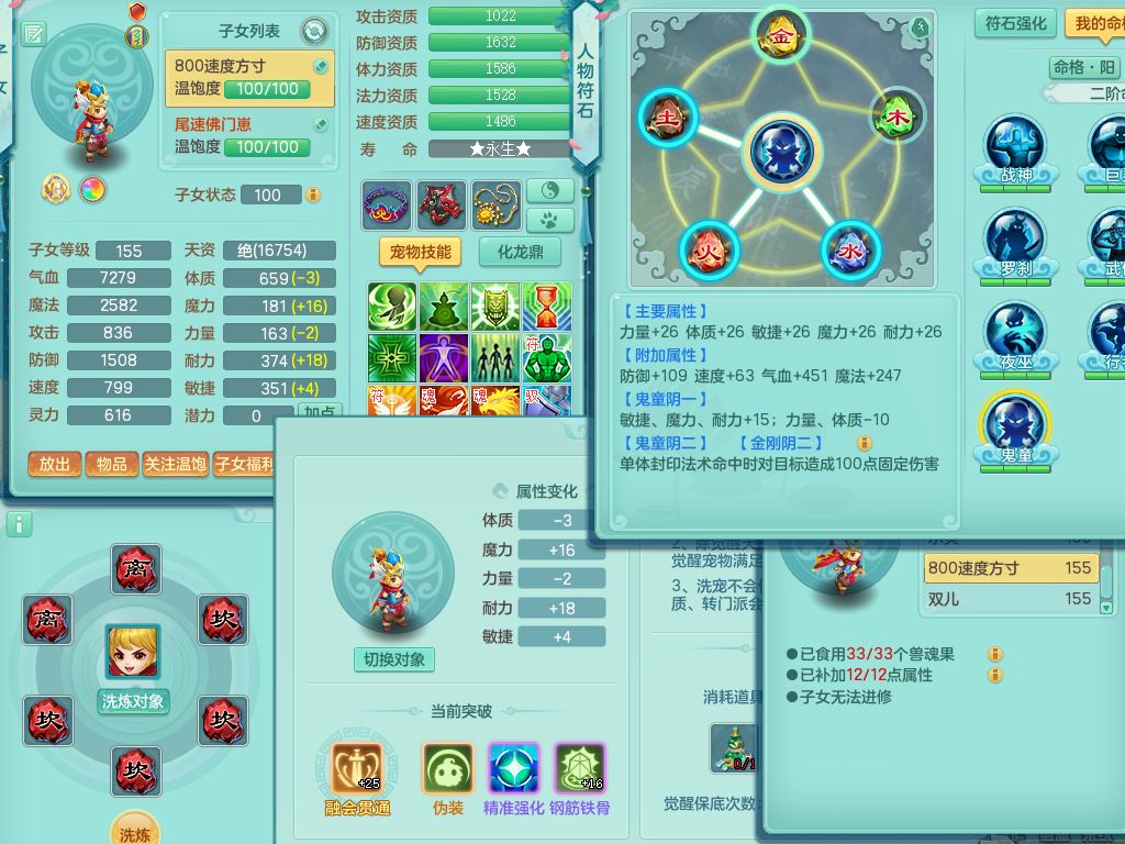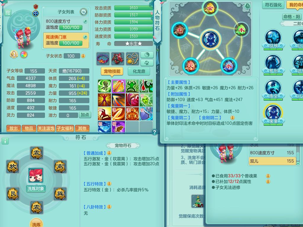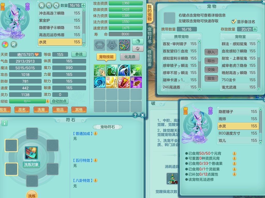 jt9690九天揽月159男方寸【潜龙号】精灵舞,1龙(换)1内丹青蛇2皮1破境,3特殊(虎虎/上善/藕断兽决)3镜花灵,19只满果子10觉醒7个纯6字,全身高单加9红愤怒6特,愤怒Y玉清腰带,Y四海鞋,法系275单加Y项链,单加五雷武器,鼎5.5+70+280,永久外观精灵皮肤,41内丹碎片,2只双人坐骑