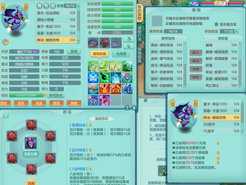 xa9698笑傲江湖99男灵月【暴龙泰坦+暴龙洪荒+西瓜冰】双系精灵,8字靓号,1龙5内(1龙马3青蛇)10只炼妖多技能宠,21只满果子7觉醒5个5字2个6字其余全4字,9红愤怒6特,Y守护头,躲避迟滞衣服,愤怒四海腰带,物理双破甲,534Y必杀武器,单加崩山衣服,单加破甲头,神佑破血项链,破甲鞋,鼎2.5+42+168,2套符石,19天月卡,庭院156,永久外观精灵皮肤,34仙兽灵,24内丹碎片,3坐骑(2只双人)