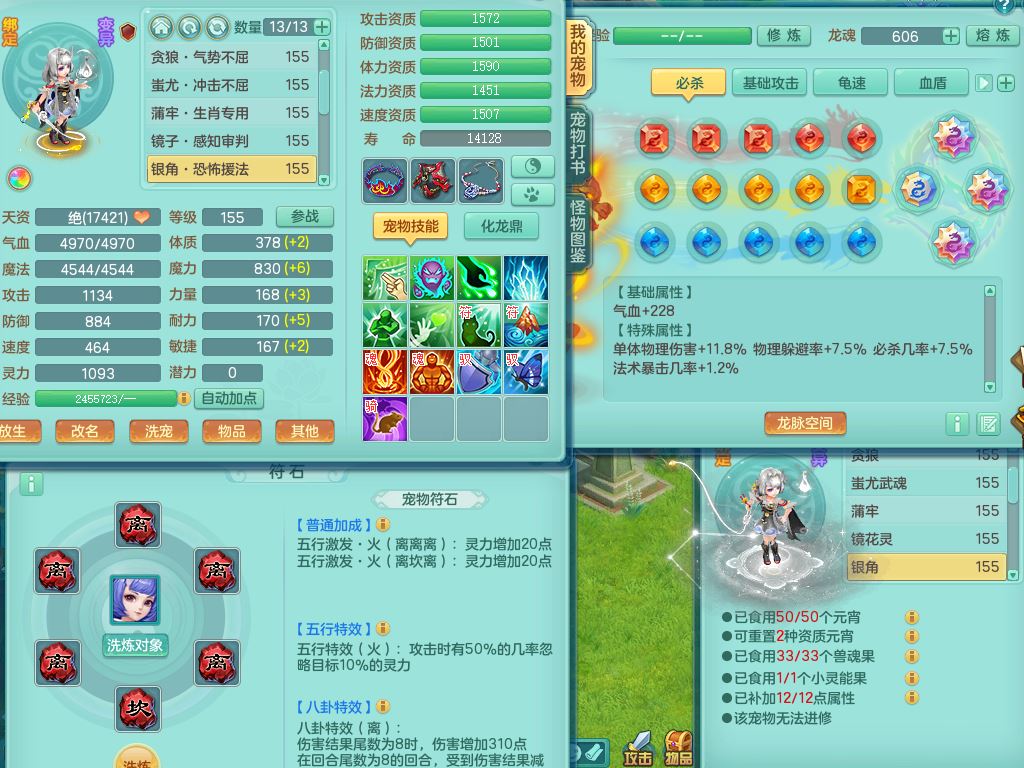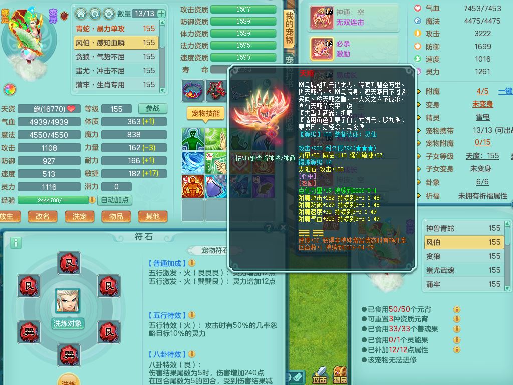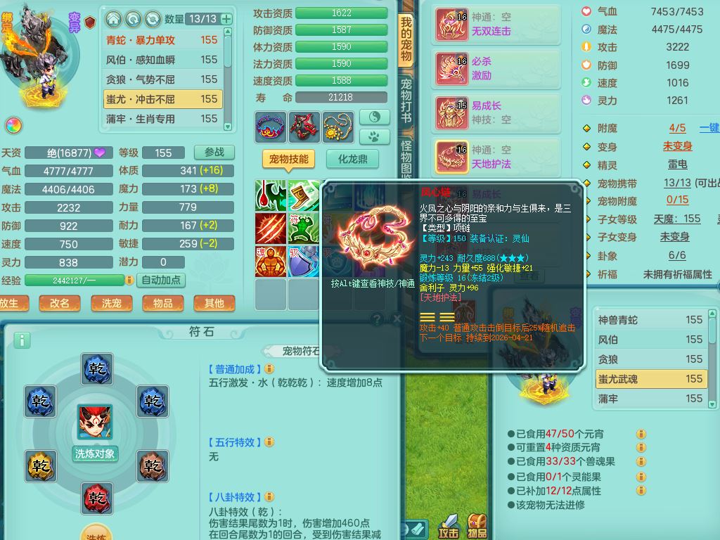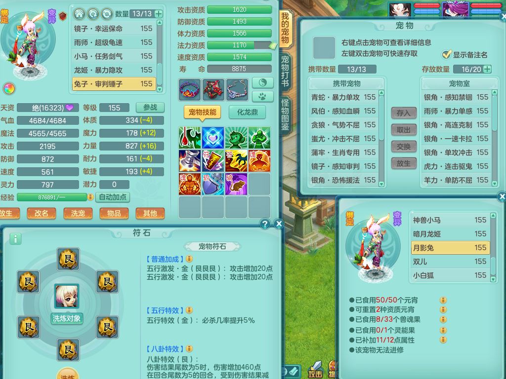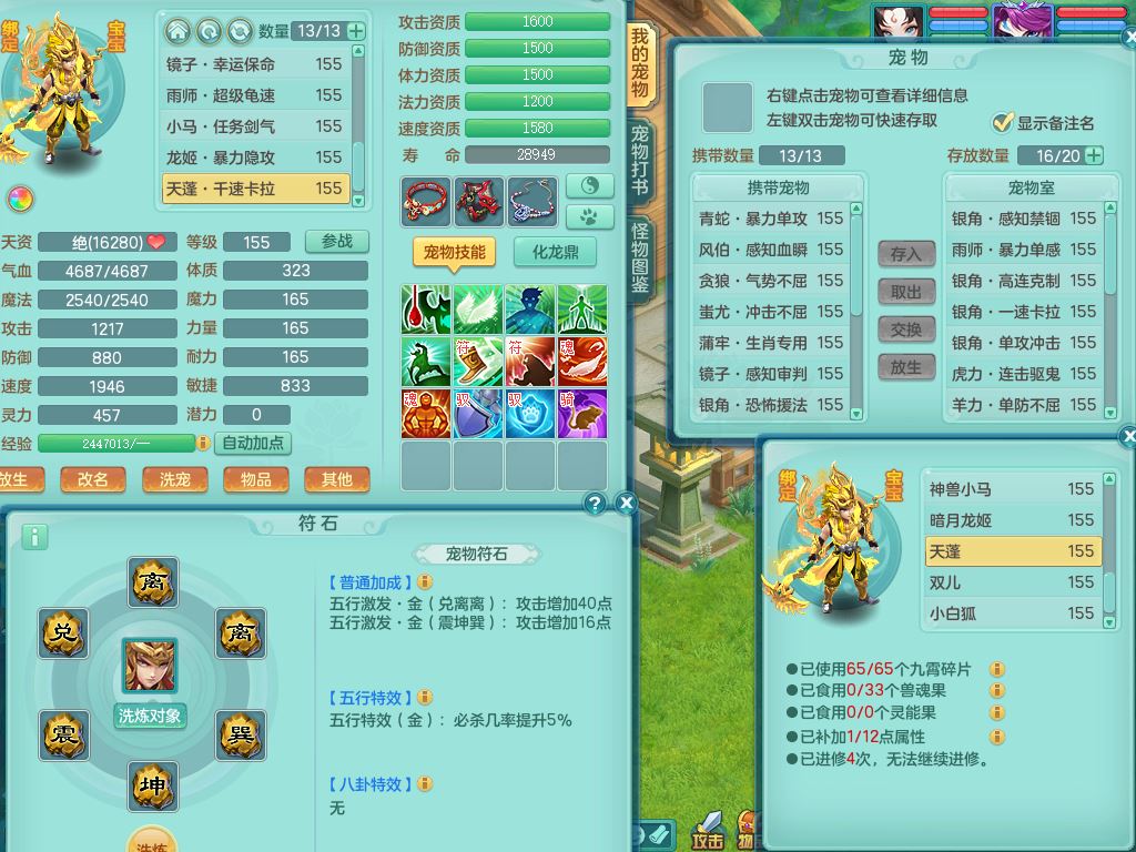tx9658天下无双159男万兽精灵歌,满级共鸣,1内丹青蛇1特殊(禁锢)8只满果子2个5字2个6字,全身高单加,928必杀野兽武器,鼎5.5,36天月卡,房屋150,永久头饰,19内丹碎片,飞行双人坐骑