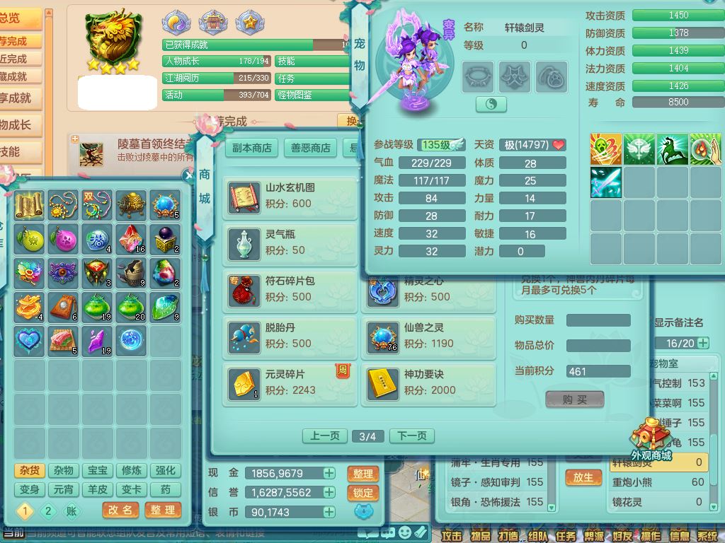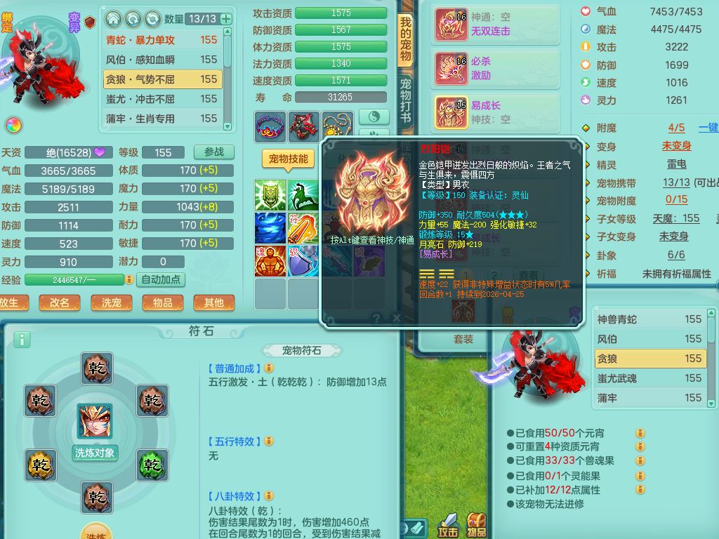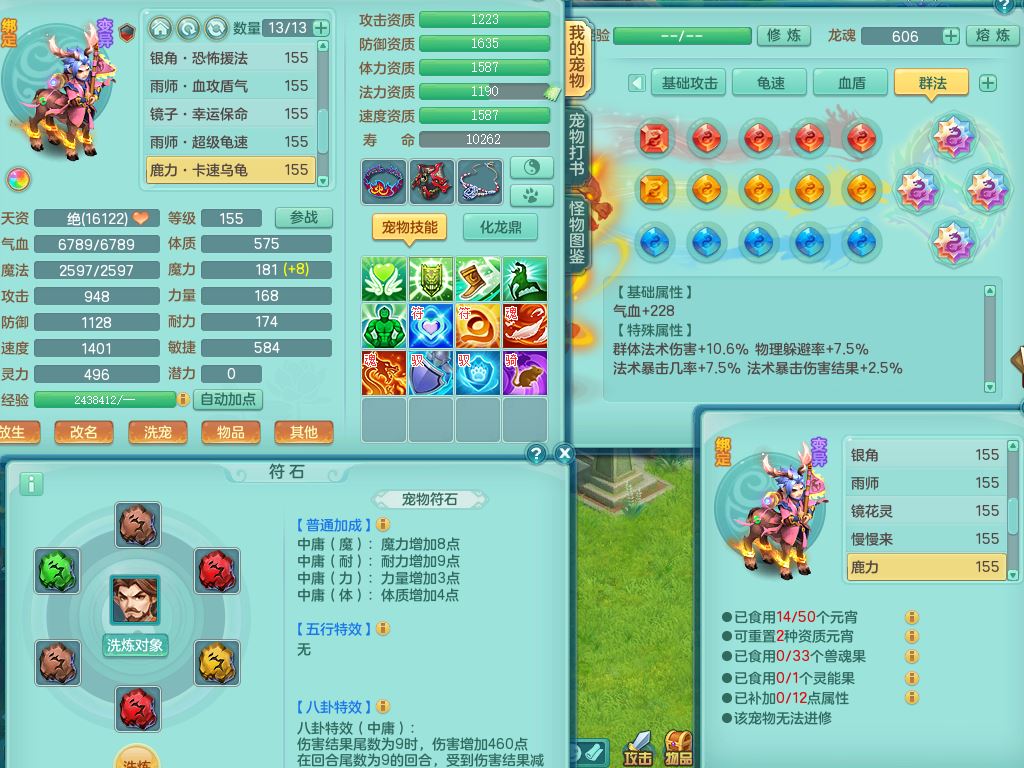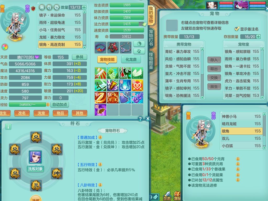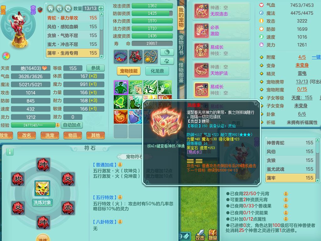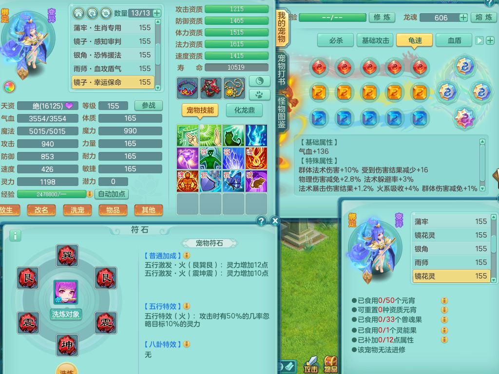 tx9658天下无双159男万兽精灵歌,满级共鸣,1内丹青蛇1特殊(禁锢)8只满果子2个5字2个6字,全身高单加,928必杀野兽武器,鼎5.5,36天月卡,房屋150,永久头饰,19内丹碎片,飞行双人坐骑
