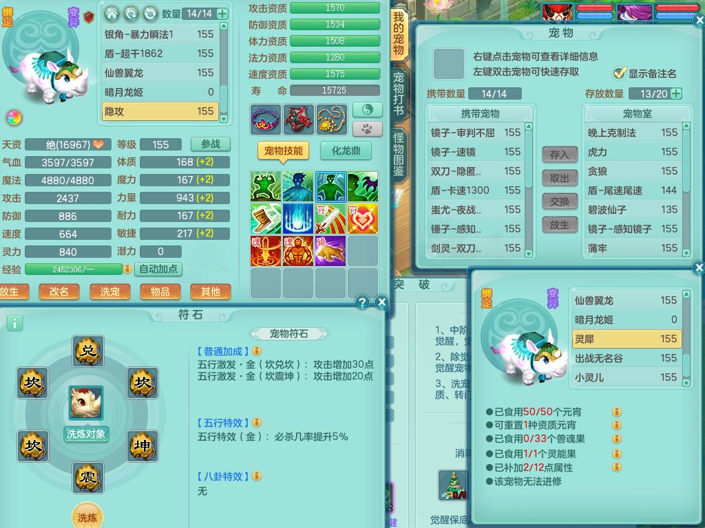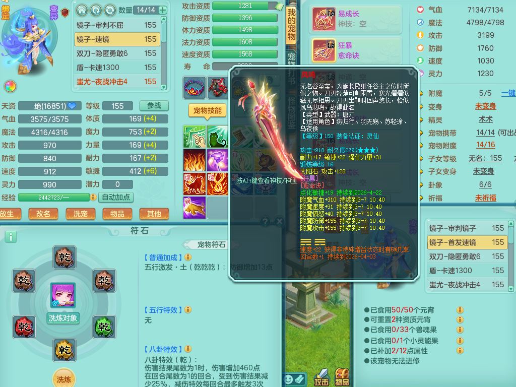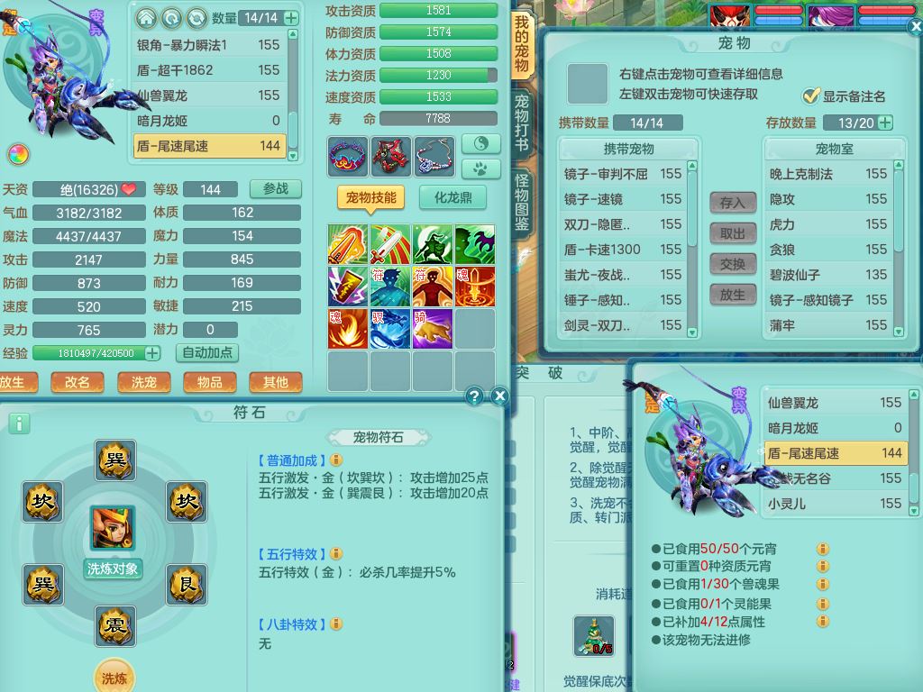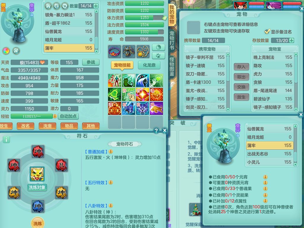 tx9702天下无双159男万兽【潜龙号】精灵歌,1龙(换,无内)1内2特殊(青霜/藕断)2镜花灵,9只满果子7觉醒7个纯6字,9红,918狂暴双红武器,单加Y头,坚毅罗汉项链,Y野兽腰带,鼎5.5+70+280,70天月卡,永久头饰,29内丹碎片,双人坐骑