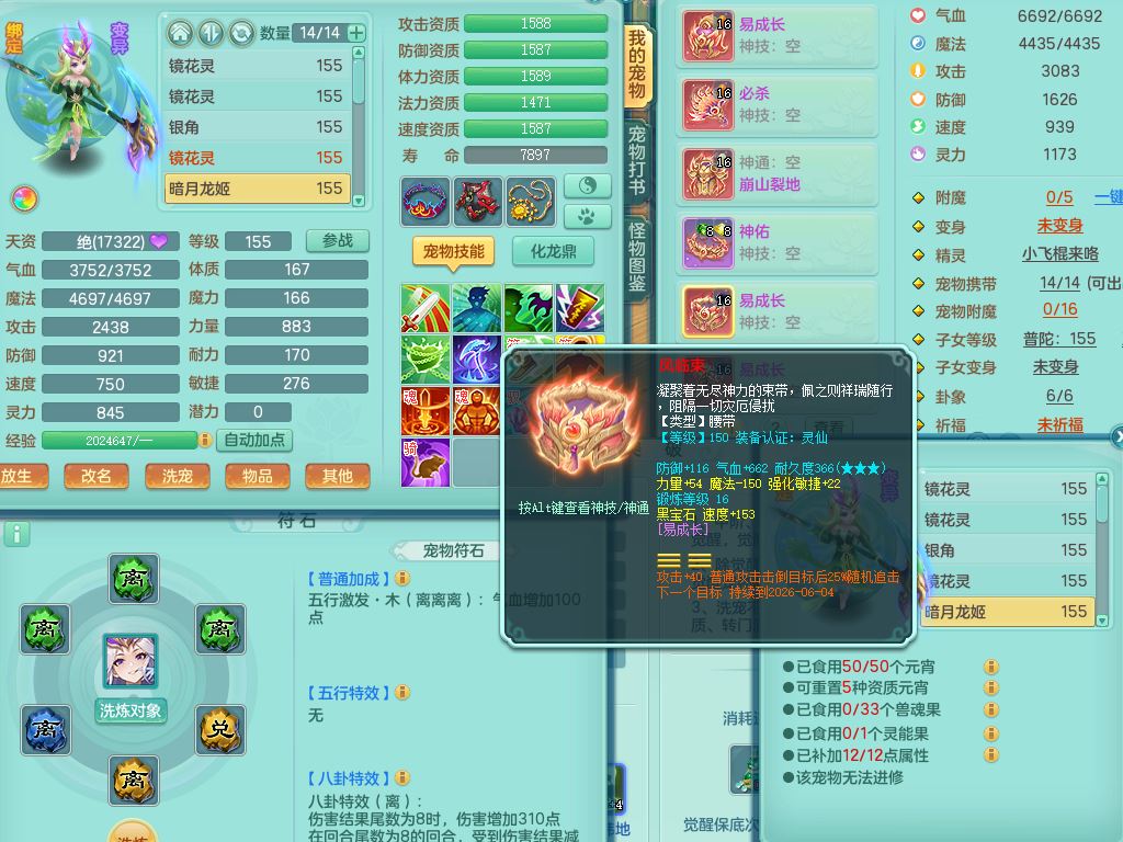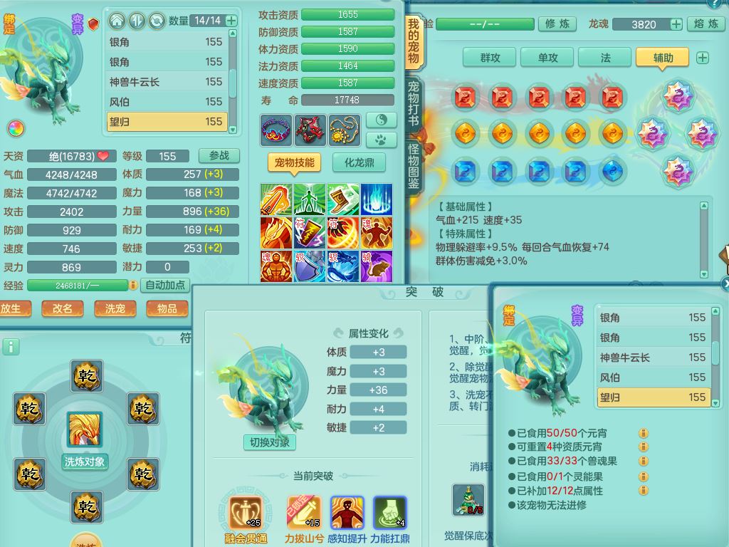 zw9703战无不胜159男万兽精灵舞,1龙(换,无内)1内丹神3特殊(枪出/兽决堕天/噬风)3镜花灵1龙姬,综合12只满果子7觉醒4个纯6字,全身高单加,928必杀武器,崩山衣服,鼎6.0,永久外观,宠排在榜