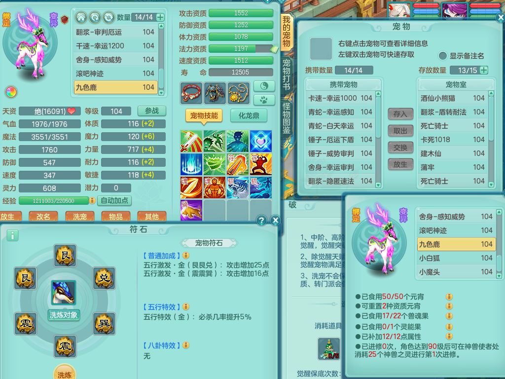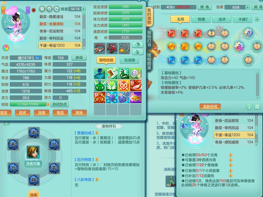 ss9708三生万物99男灵月【潜龙过半+神驹马到成功+火焰之力】体敏耐精灵,1龙(无内)4内(2青蛇,1破境)3舍身4翻江1炉子1童子4宠皮(1宠皮),9觉醒7六字1五字4四字综合17只满果子,8红装备,单加四海帽子,笑里武器,激励衣服,单加明镜项链,单加愤怒慈航腰带,单加Y罗汉鞋子,单加四海衣服,单加止戈帽子,迟滞项链,Y迅捷卸甲鞋子,鼎2.5+42,2个符石,220天月卡,4史诗3传说3精良法宝,庭院155,永久头饰、背饰、精灵皮肤,54个仙兽灵,1双人坐骑