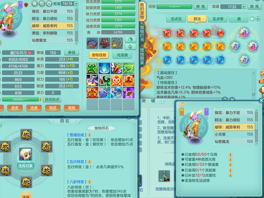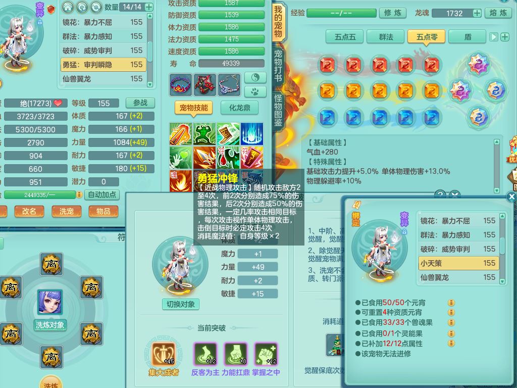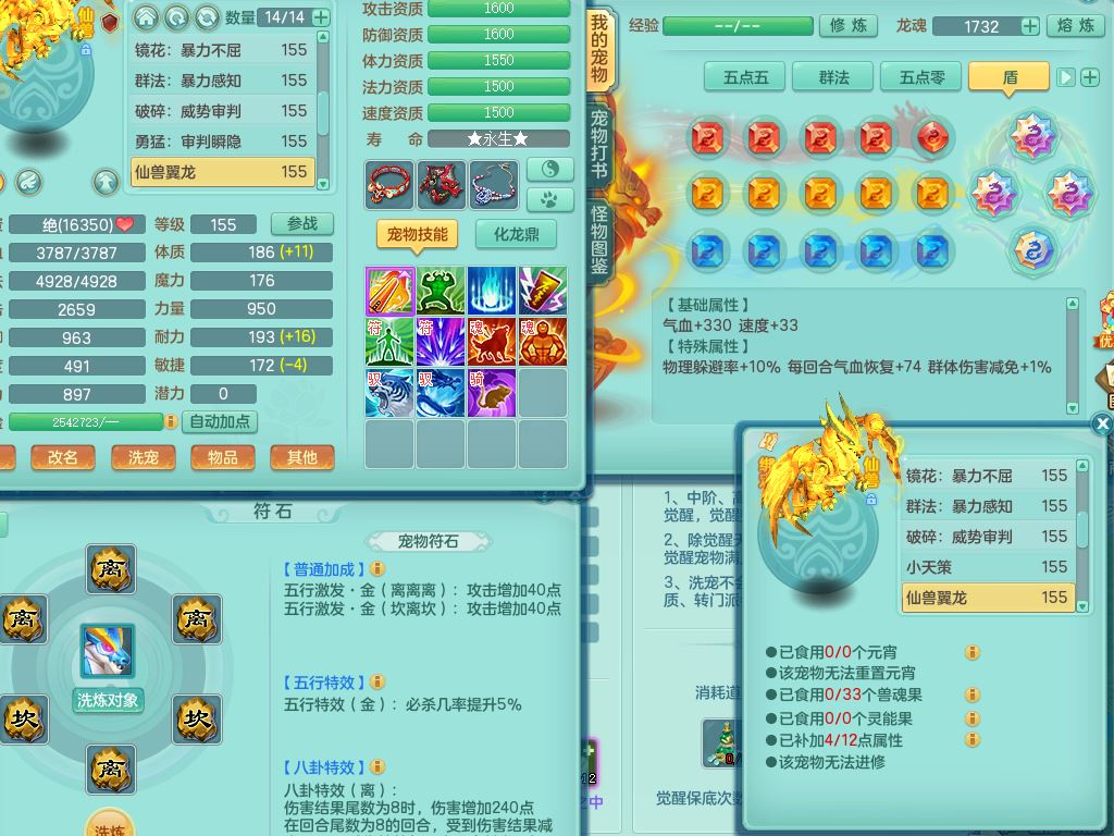 tx9722天下无双159女龙宫【潜龙号】精灵舞,1龙(换,无内)1内1破镜1皮,4特殊(兽决怒破/冲锋*2/夺命)5镜花灵(1胚子)13只满果子9觉醒7个纯6字,11红星辰之拥,五雷头,法爆晶清武器,单加Y四海衣服,266单加Y双红项链,法缭Y烽火鞋,鼎5.5+70+280,142天月卡,庭院160,永久头饰精灵皮肤,霜鹿坐骑