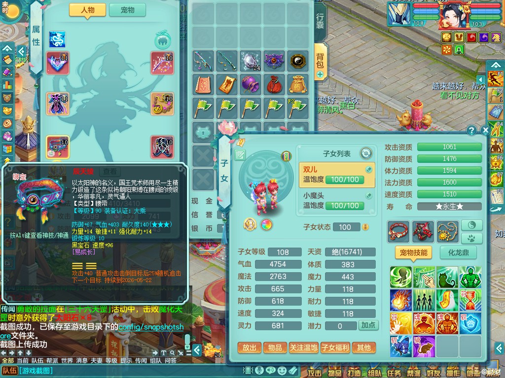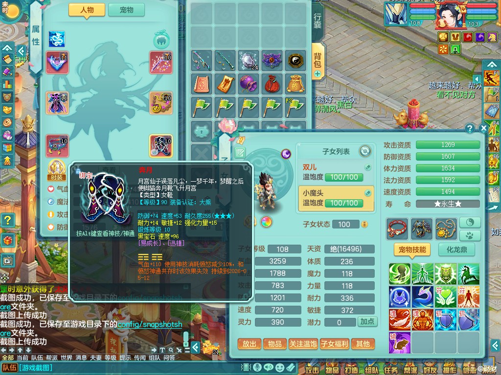 hf9735寒锋映雪103女天策八位靓号id+泰坦西瓜冰+15马心想事成武器剑 三内丹神(还能存一内)外观拉满 ,经验、修炼、成就、宠排全在榜,2980邮箱有双重一手可换