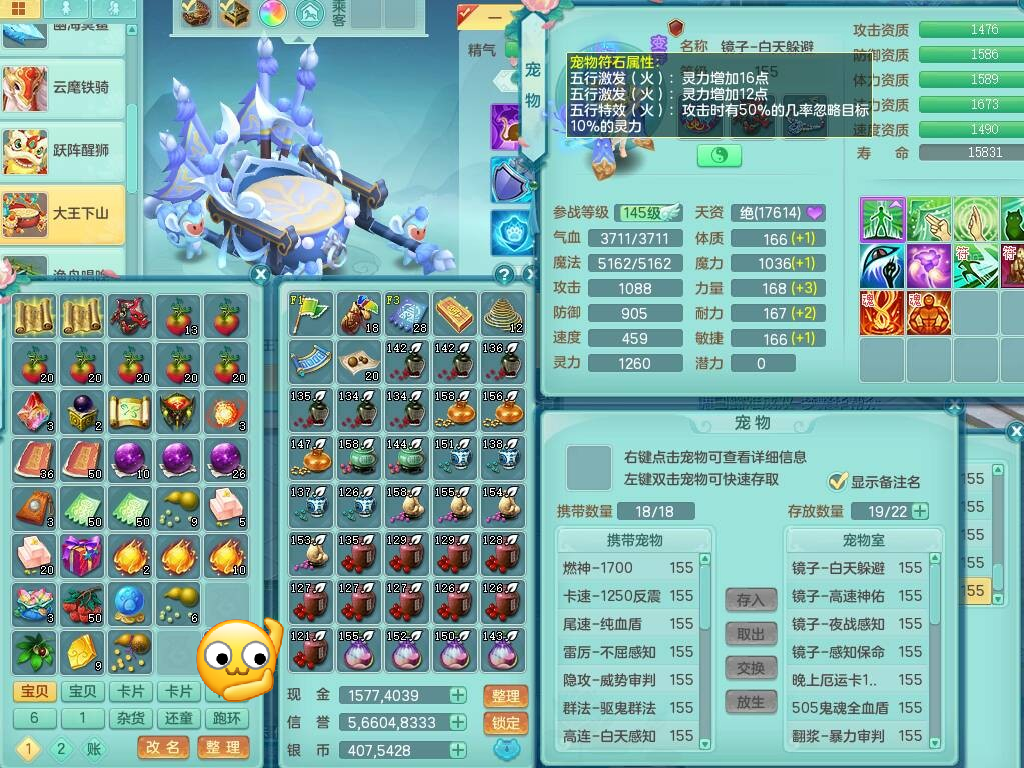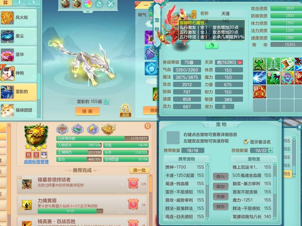 cf9725超凡入圣159男万兽精灵歌,8龙4龙皮(1龙没内)4内胆神,【14只觉醒,已潜龙】,4位靓号不含4,11宠皮,5只六技能镜花灵,1只六技能龙姬,1特殊(锤子),934必杀武器,崩山头,破血单加52衣服,有条崩山单加51腰带,6.0基础鼎+70攻+280血,8.7法爆,15个格子,20个纯六字,3个五字,26只满果子,仓库还有114个果子,宠排在榜,修炼成就在榜,冰晶庭院,20来个坐骑,神驹心想事成+火焰之力武器皮肤,带2.5万金币,177万神武币,143天月卡