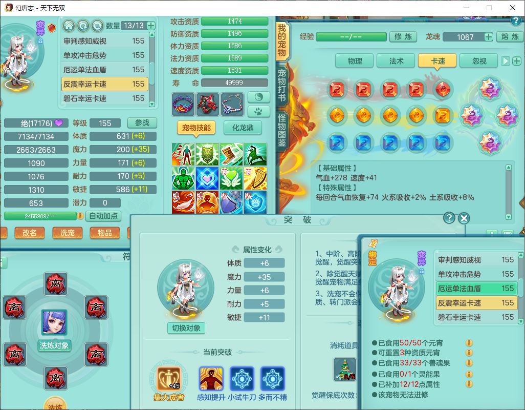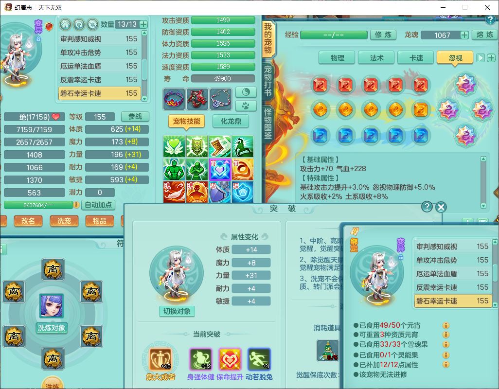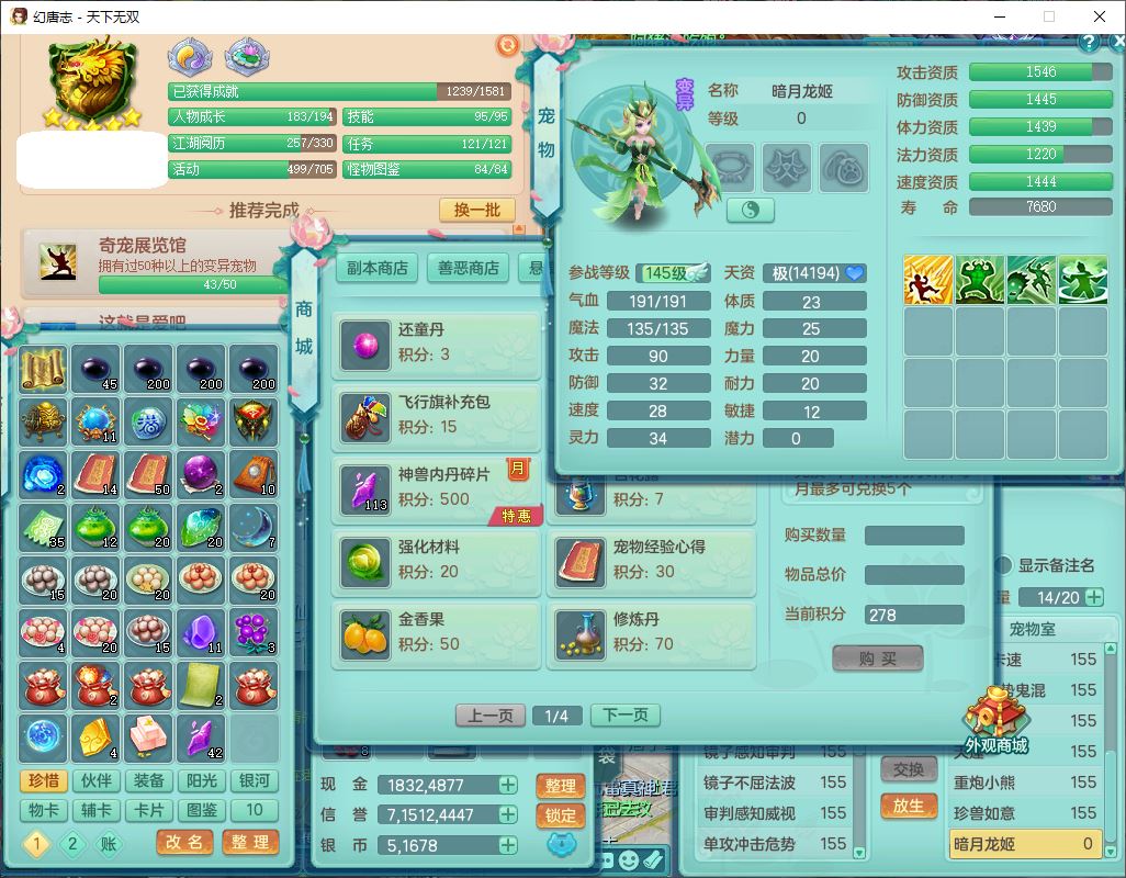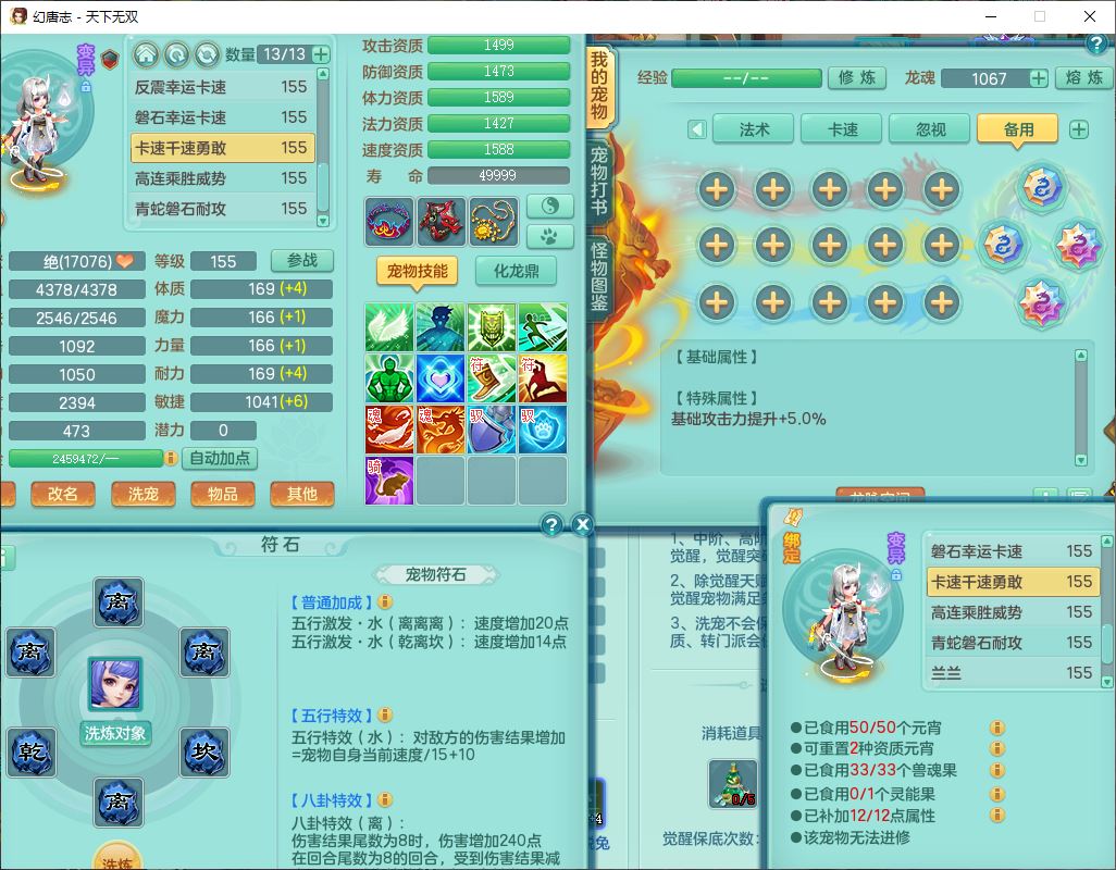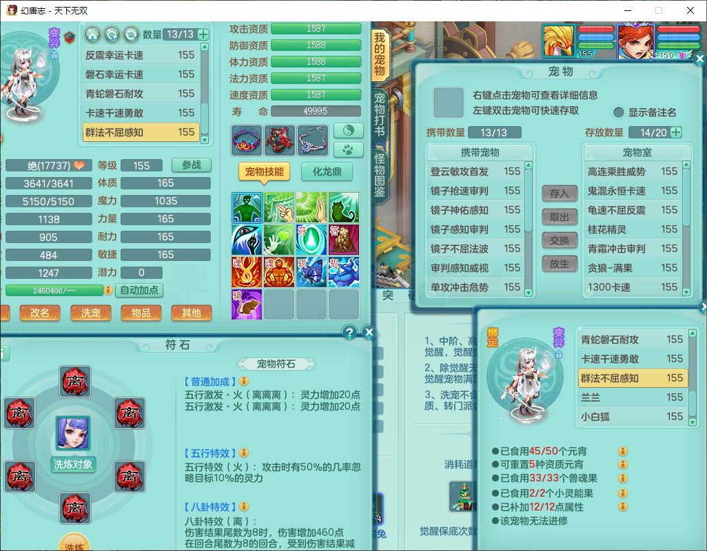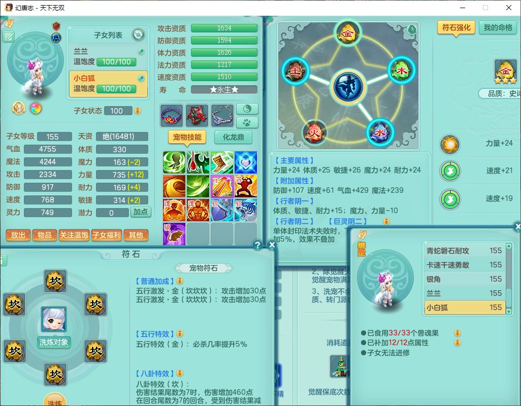 tx9724天下无双159男方寸【马上发财+暴龙洪荒+火焰之力+西瓜冰+潜龙过半】精灵舞,1青蛇(无内)1望归4镜花,7觉醒15六字1五字2四字18只满果子,10红装备,封印精通心神帽子,愤怒Y乱刃腰带,Y笑里鞋子,鼎5.5+70,133天月卡,庭院187房屋161,永久外观、精灵皮肤,11个仙兽灵,42个内丹碎片,1双人飞行坐骑,带159女天宫精灵怒,10红装备,318W神武币;159女万兽3镜花8红装备,287W神武币,1特殊兽决虎虎