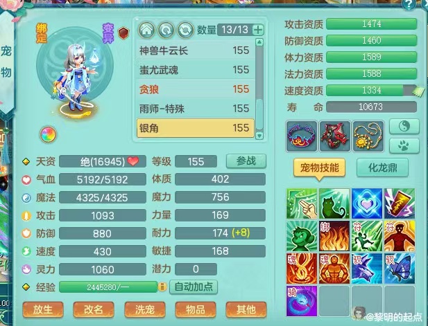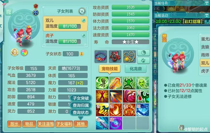tx9739天下无双159女方寸,1内丹神1蚩尤皮肤,2特殊(善恶/枪出)10只满果子4觉醒2个纯6字