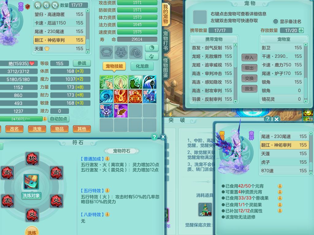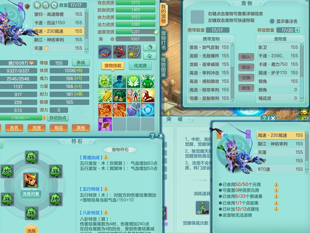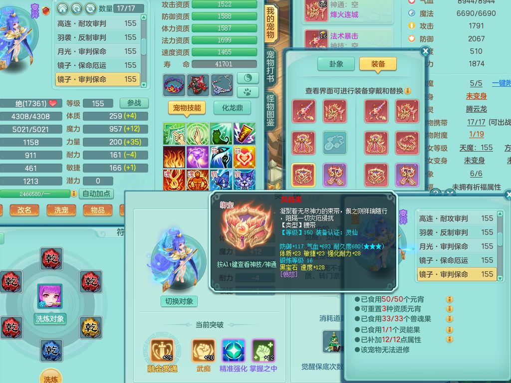 ym9711扬名立万159女魔王【潜龙号+龙皮】精灵歌,2套星穹,7龙(换)1龙皮2内3宠皮,3特殊(羽袭/月光/青霜兽决)3镜花灵3龙姬,17格子25只满果子11觉醒8个纯6字,全身单加,264Y止戈项链,五雷鞋,辅助愤怒5特,鼎6.0+70+280,2套符石,庭院155房屋172,永久外观精灵皮肤,817W神武币,宠排在榜,3只双人坐骑