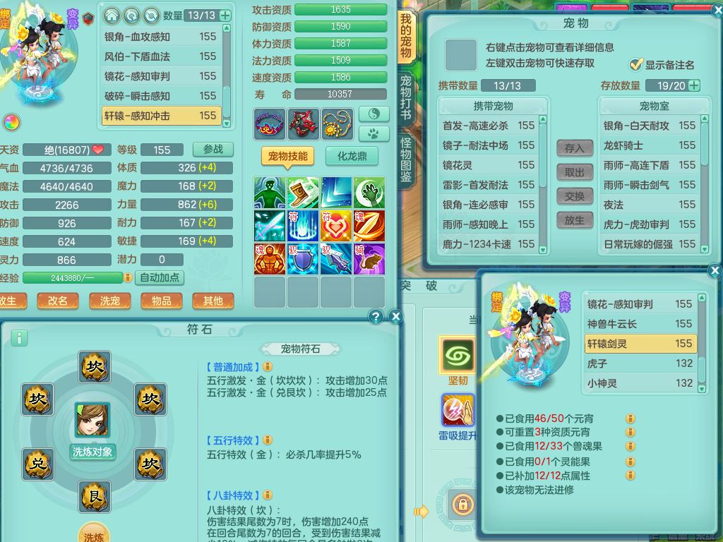 tx9747天下无双159男天宫精灵怒,满级共鸣,1内丹神,3镜花灵,综合8只满果子4觉醒10个4字1个5字,单加法爆武器,单加五雷头,263单加Y项链,Y衣服,法术缭乱鞋,鼎4.5,2套符石,永久外观精灵皮肤,30仙兽灵,飞行双人坐骑