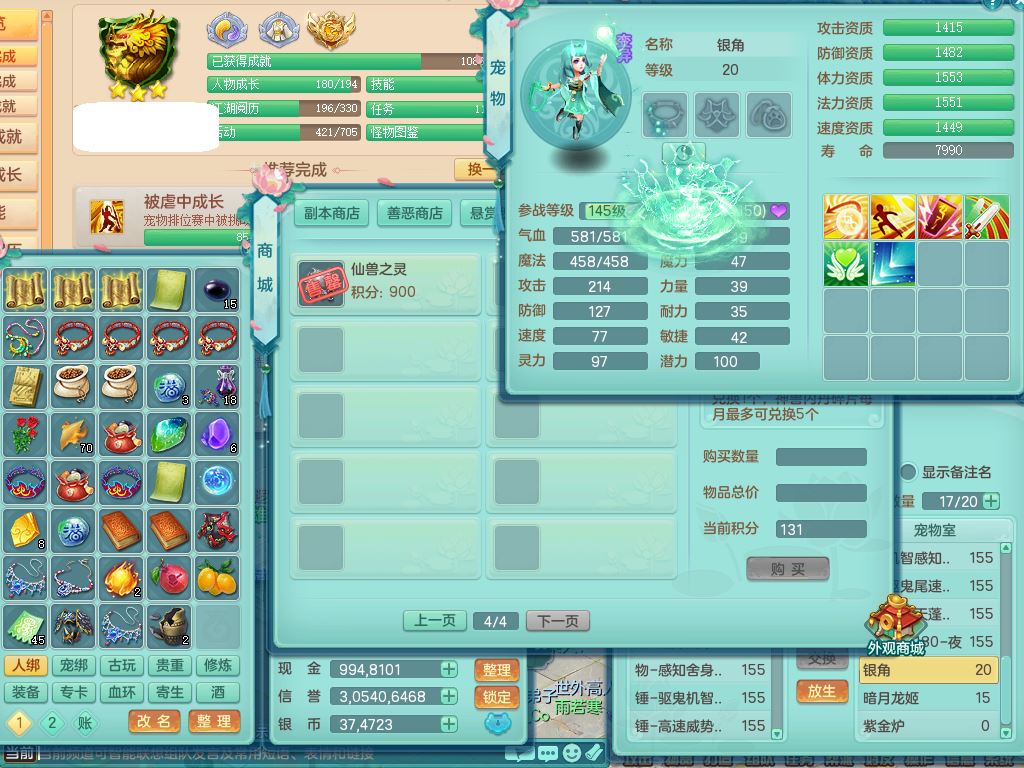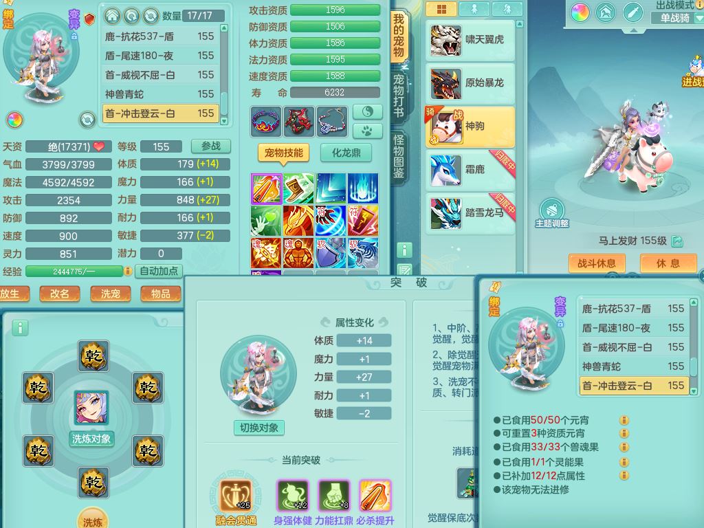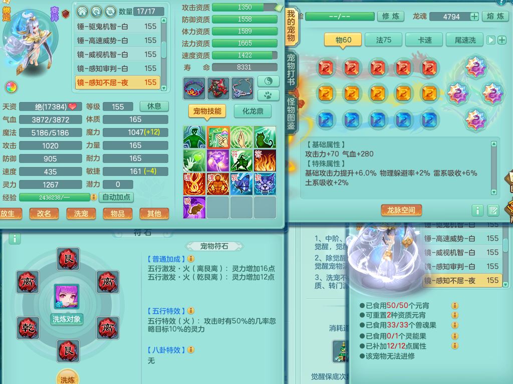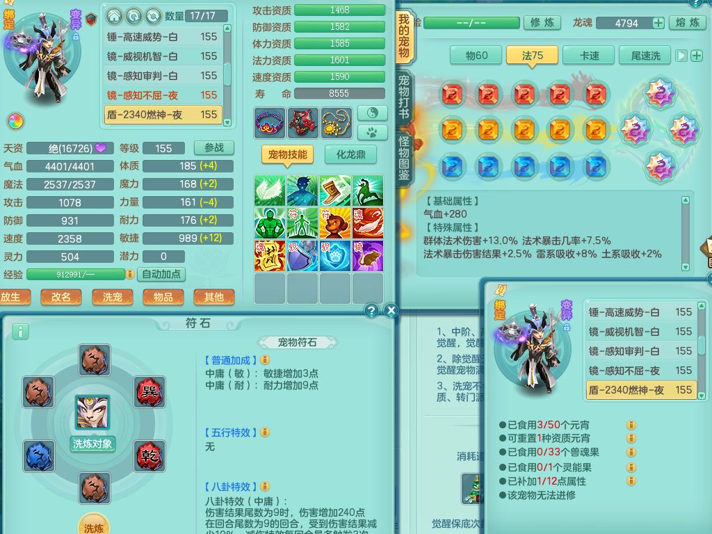 tx9752天下无双159女佛门【潜龙号+神驹马上发财+暴龙洪荒+火焰之力】精灵歌,1龙(换)3内(1青蛇)2破境1皮,4特殊(逆龙/舍身/登云/夺命兽诀)4镜花灵1龙姬,17格子21只满果子10觉醒8个纯6字,8红愤怒5特,愤怒Y腰带,单加Y止戈鞋,鼎6.0+70+280,2套符石,20天月卡,永久外观精灵皮肤,56内丹碎片,78果子,宠排在榜,3坐骑(2只双人)