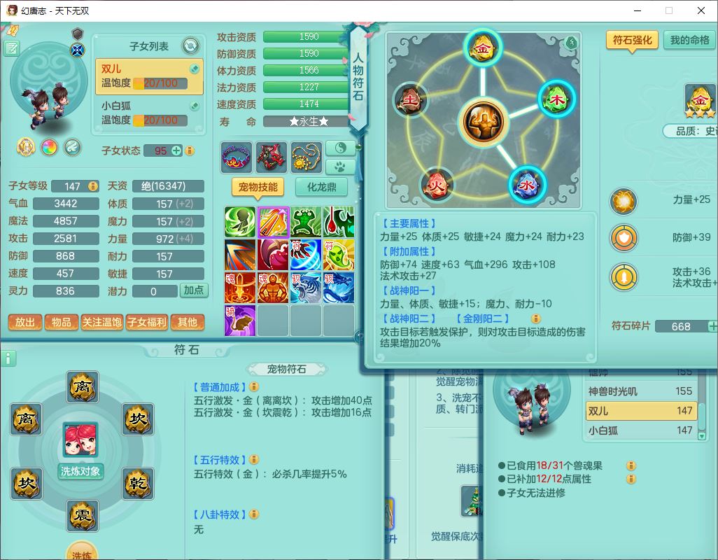 tx9761天下无双159男万兽精灵歌,1内丹青蛇1神兽(无内)1望归1镜花,4觉醒,7红全单加装备,926狂暴武器,崩山项链,Y破血腰带,鼎5.0,永久背饰,20个仙兽灵,2476金币,1飞行坐骑
