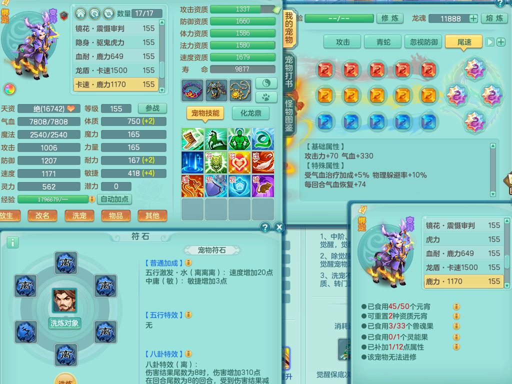 tx9764天下无双159男魔王【潜龙号+神驹红红火火+暴龙洪荒+火焰之力】精灵舞,4字靓号,7龙(换)2内(青蛇,龙马)5皮,6镜花灵1龙姬,17格子29只满果子10觉醒13个纯6字,双法缭8红,单加五雷武器,275Y项链,单加愤怒烽火腰带,物理满攻狂暴武器,崩山衣服,鼎5.5+70+280,2套符石,100天月卡,冰晶庭院208房屋178,永久外观精灵皮肤,39内丹碎片,宠排在榜,9坐骑(5只双人)支持分期