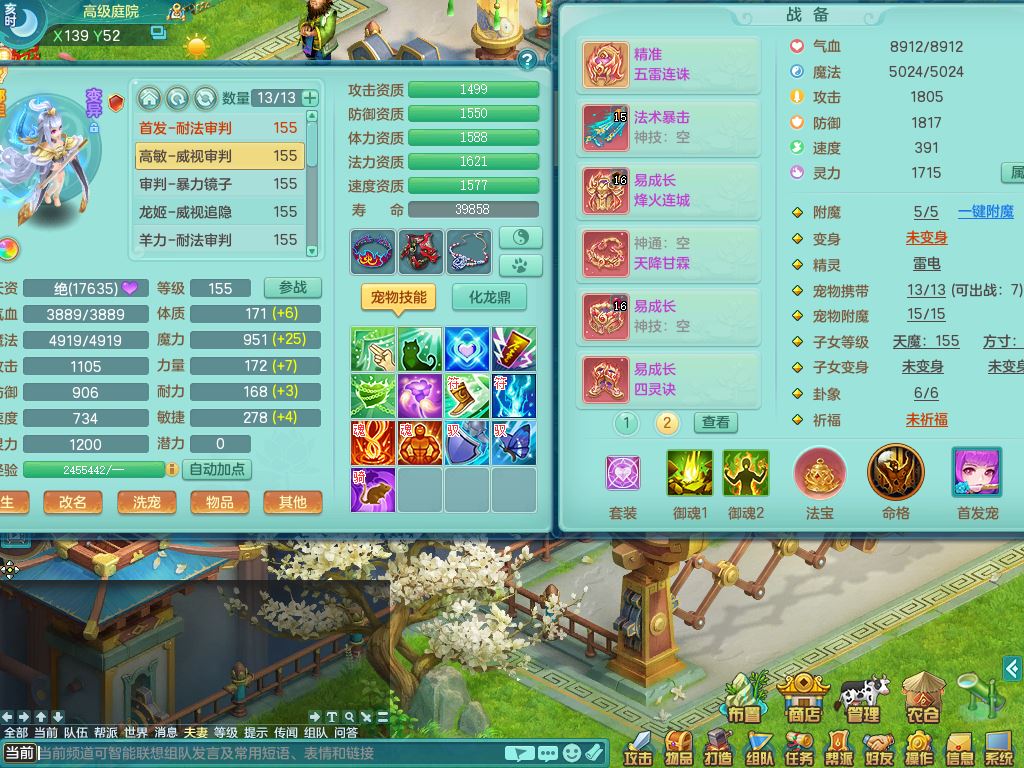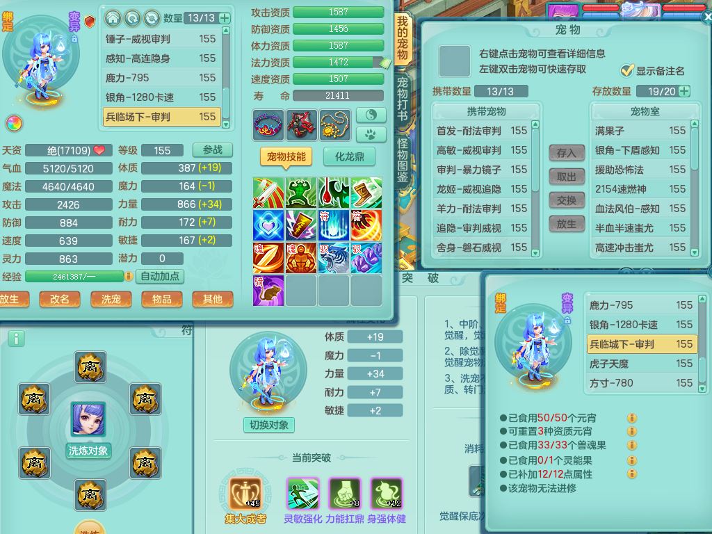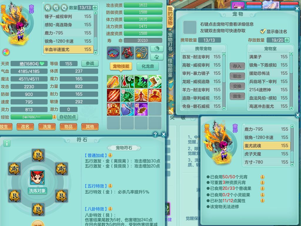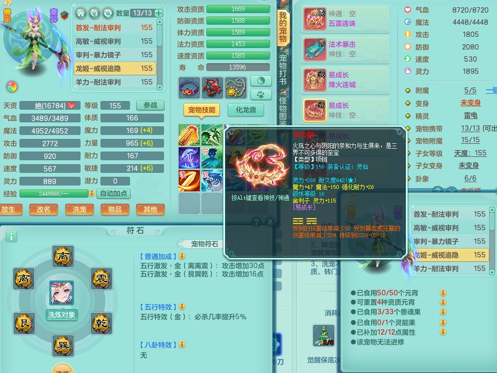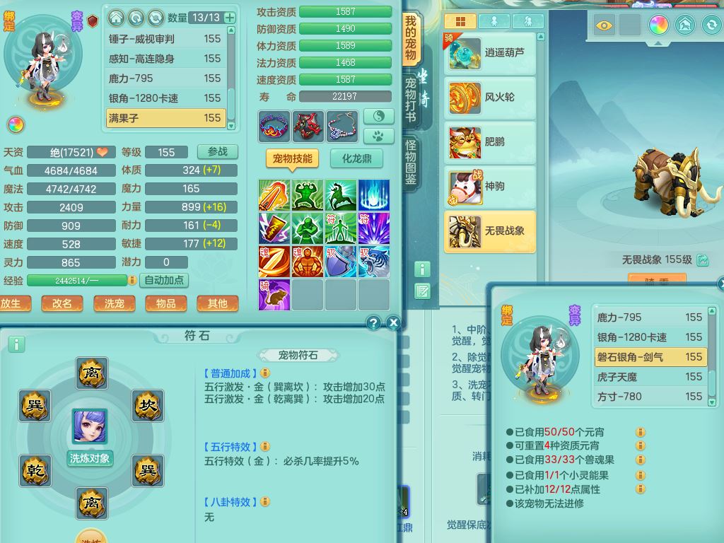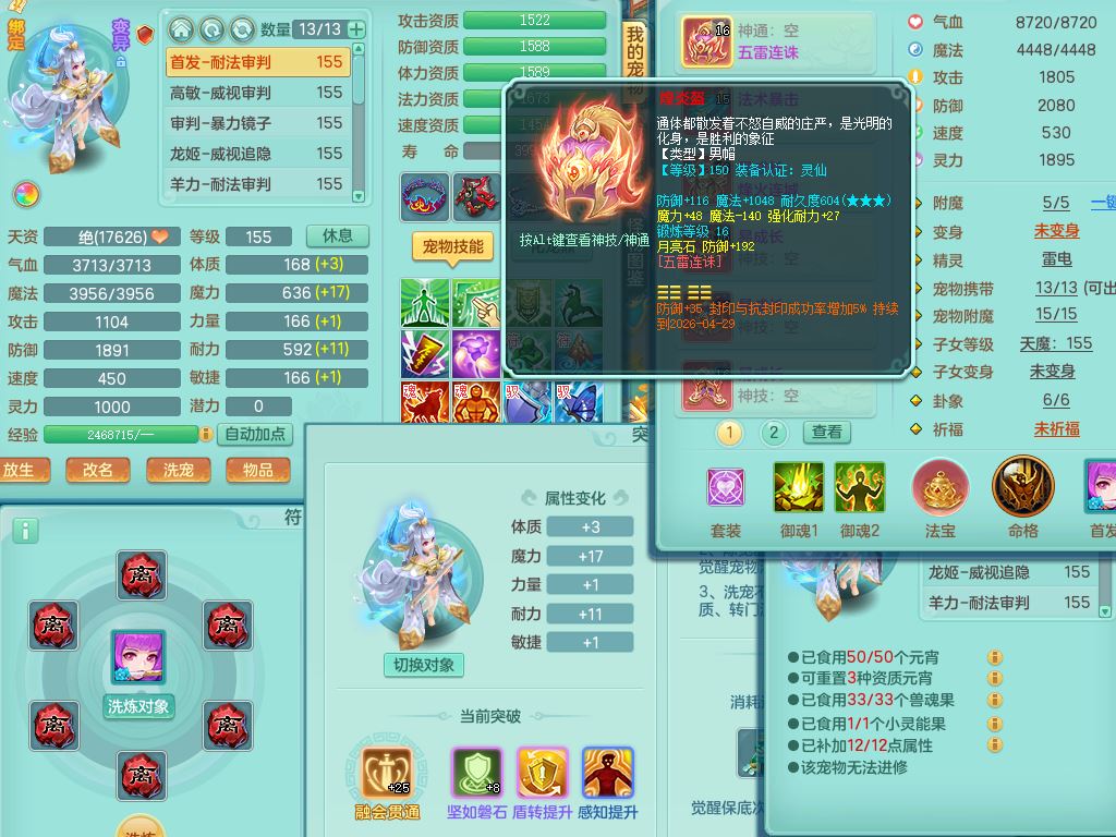 qf9784清风明月159男魔王【潜龙号+神驹马上发财+火焰之力】精灵歌,1内丹龙马1特殊(舍身)3镜花灵,综合17只满果子7觉醒9个纯6字,全身单加,五雷头,Y烽火衣服,268Y项链,鼎5.5+70+280,2套符石,183天月卡,永久外观精灵皮肤,40仙兽灵,2坐骑(1只双人)