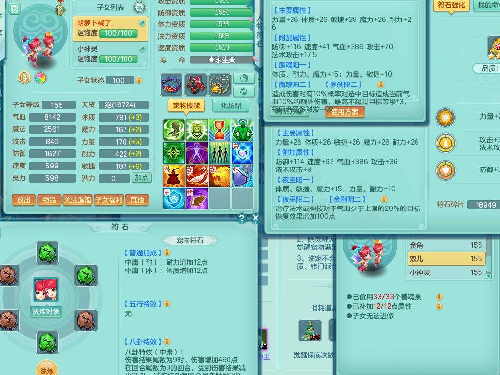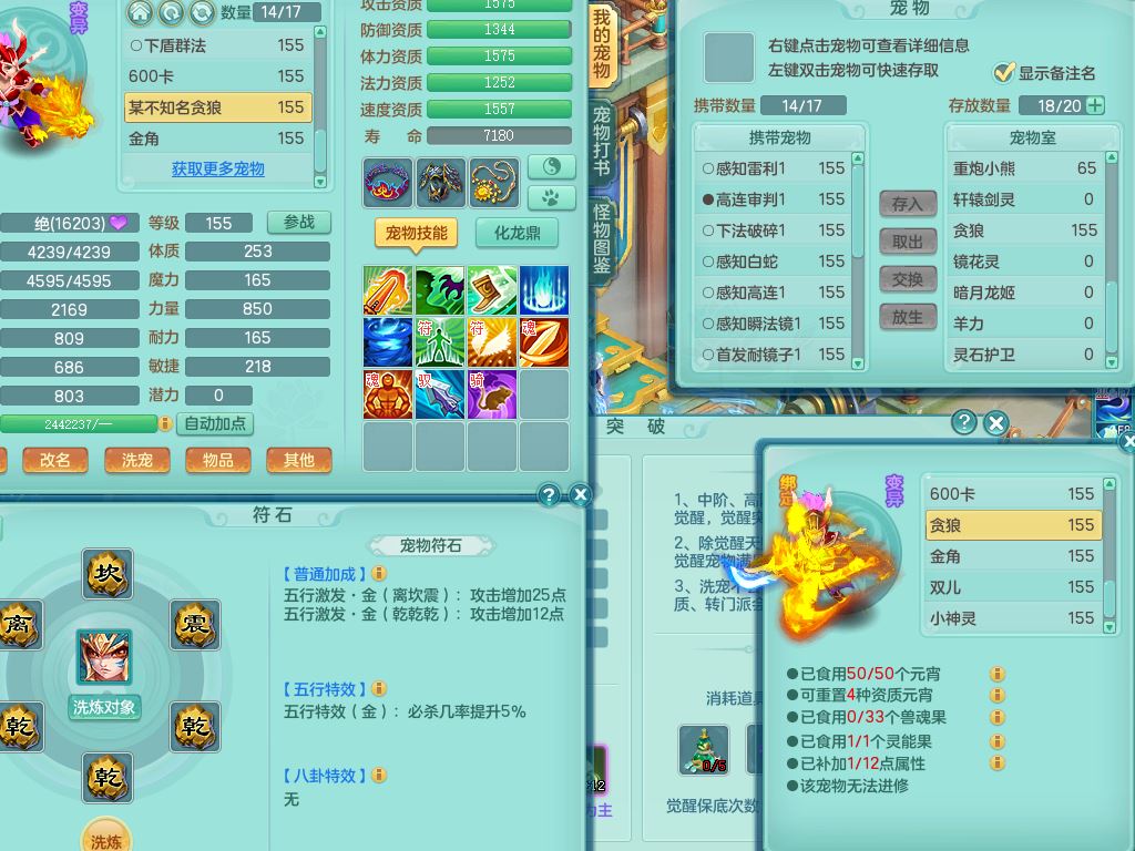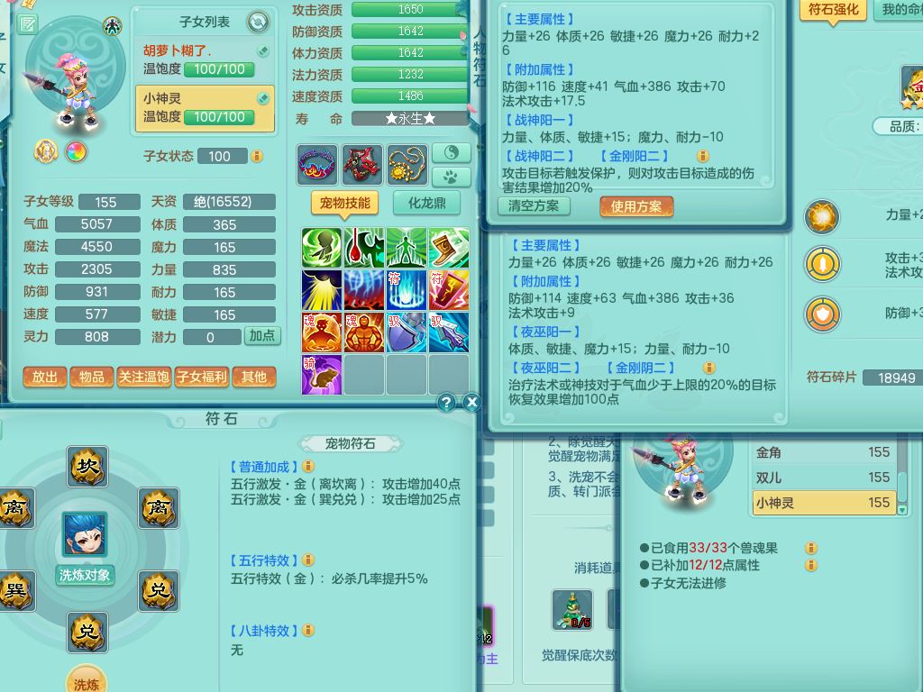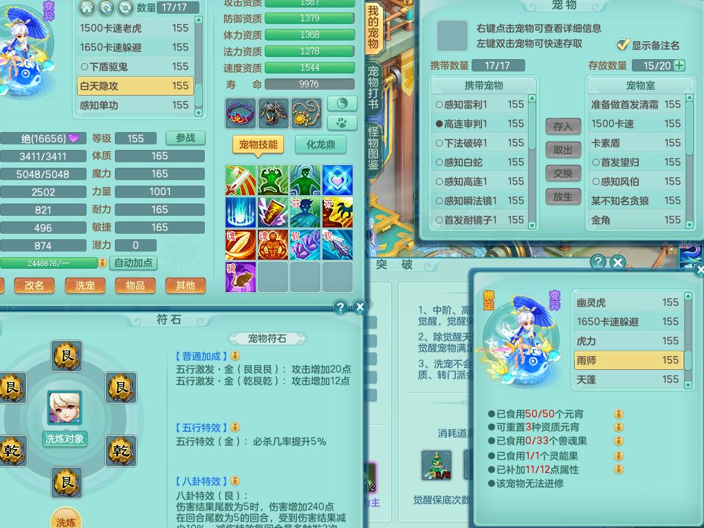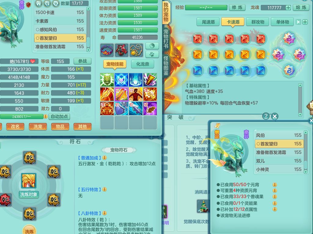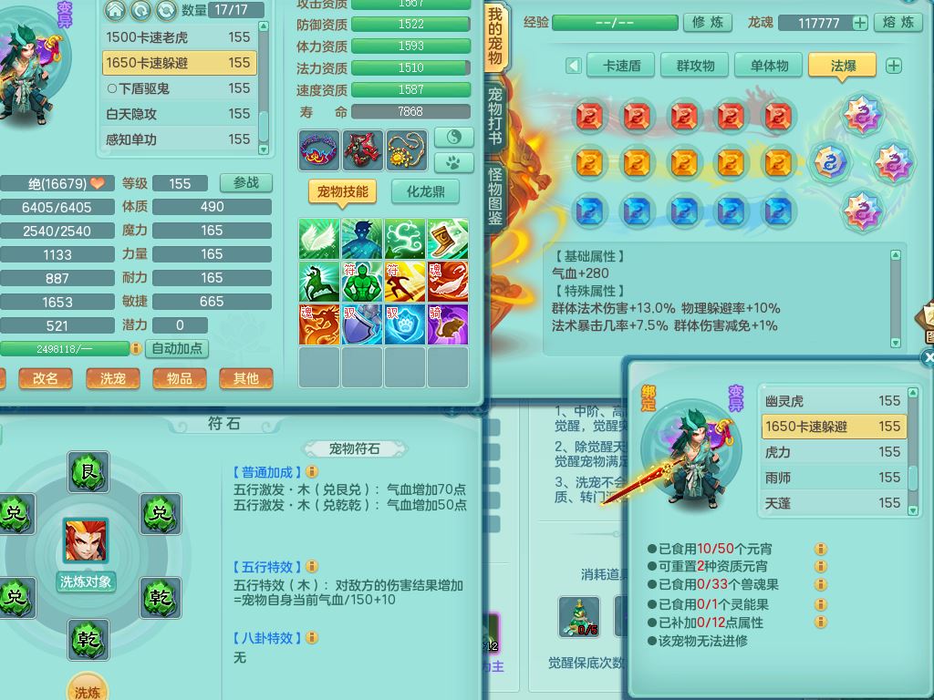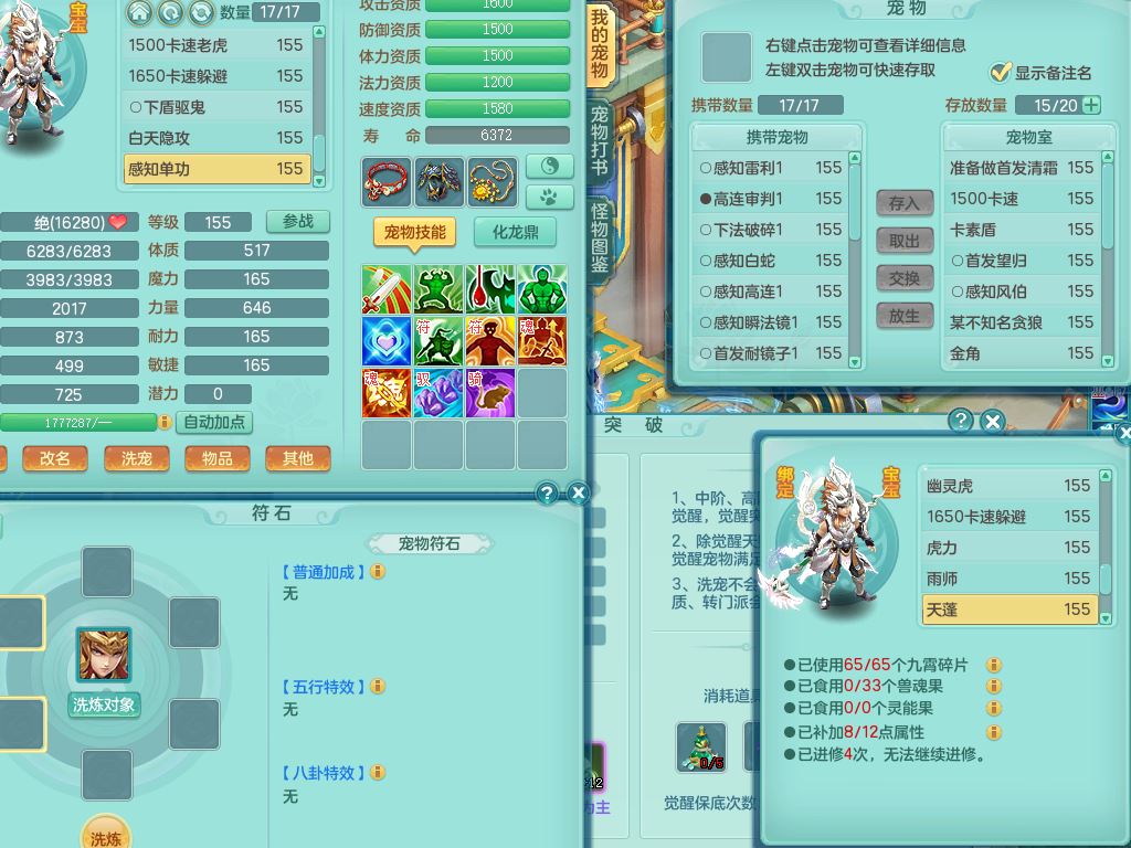 20-9803,2020区159男灵月【潜龙号】精灵舞,精灵怒,准精灵歌,8位靓号(AABBBBCC),2龙2内3镜花1望归4特殊(兽决以战、青霜、墨守、双星)3宠皮,17宠物格子9觉醒9六字1五字2四字18只满果子,8红装备,单加罗汉帽子,单加晶清武器,Y止戈衣服,四海项链,愤怒魔音腰带,单加慈航鞋子,鼎5.5+70+280,3套符石,5史诗2传说2精良法宝,永久头饰、背饰、精灵皮肤,16个内丹碎片,458W神武币,4双人坐骑(2飞行)