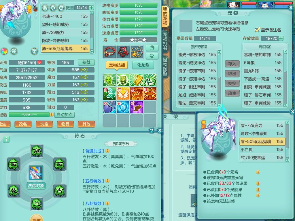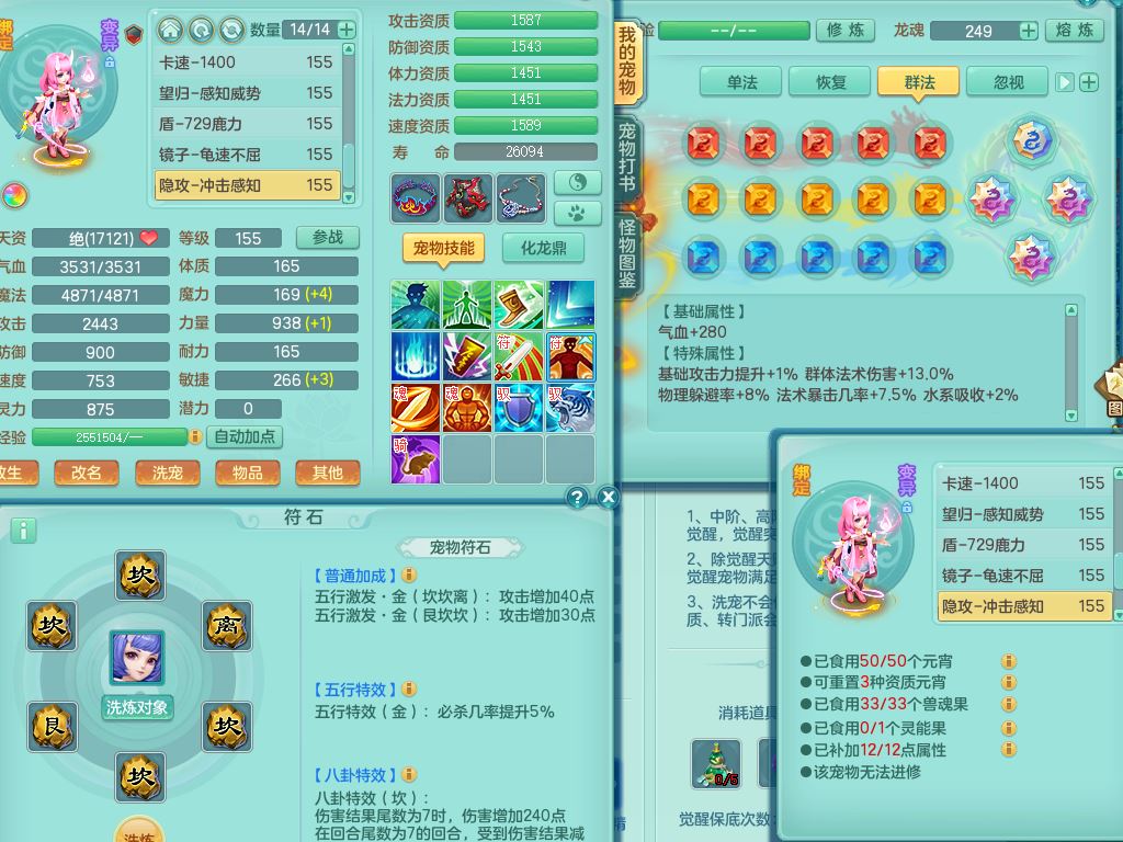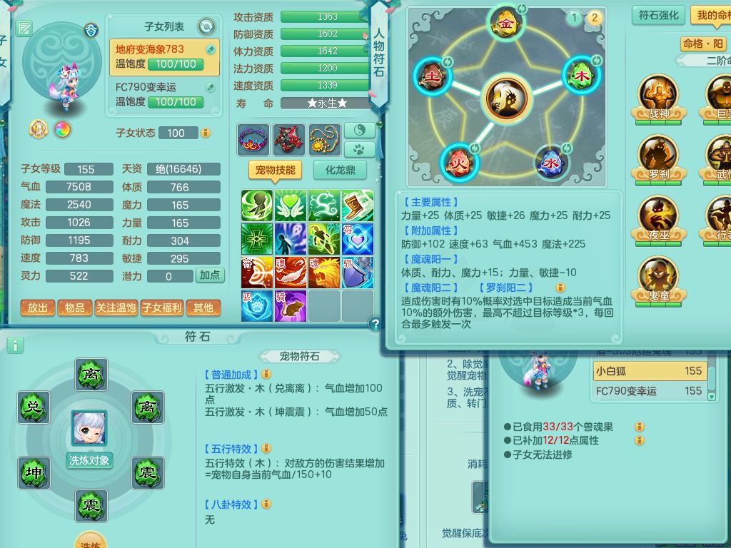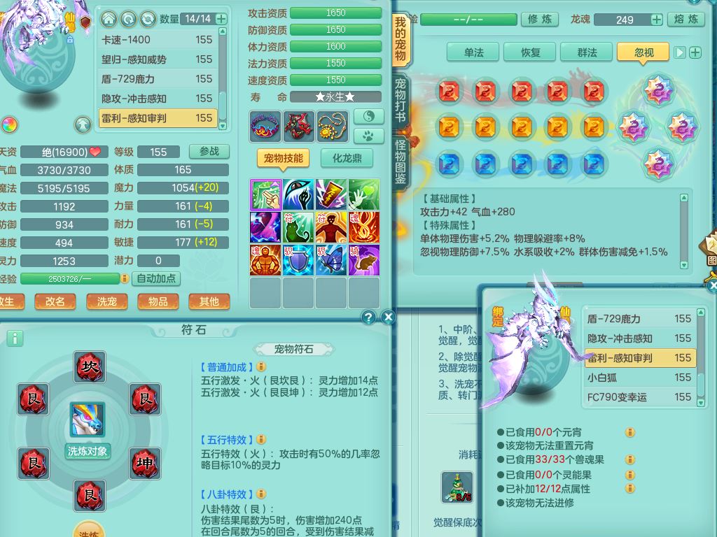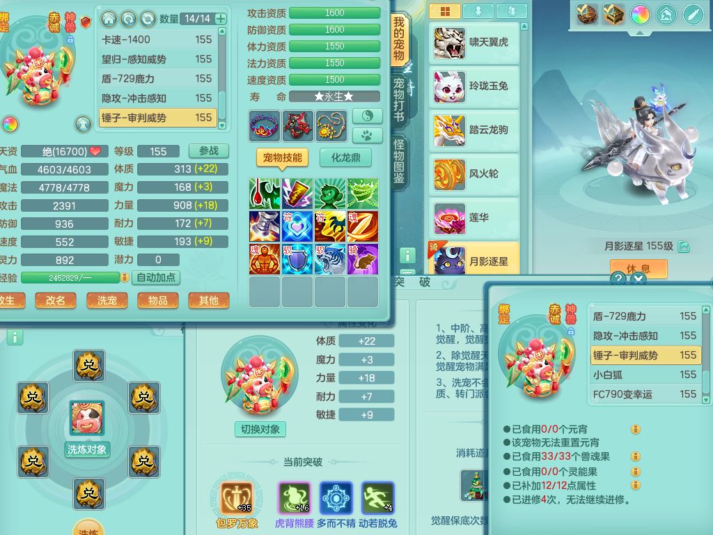 jt9809九天揽月159女天宫精灵歌+舞,4字靓号,6龙(换,无内)4内1破境,3特殊(雷光/兽决破碎/墨守)3镜花灵2龙姬,18只满果子5觉醒4个纯6字,单加急速晶清头,单加要衣服,274Y项链,五雷腰带,单加法缭鞋,鼎5.5+70+280,2套符石,104天月卡,永久外观精灵皮肤,宠排在榜,5坐骑(3只双人)
