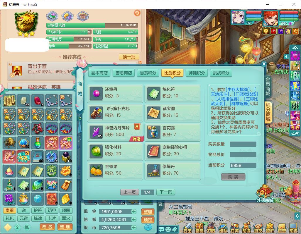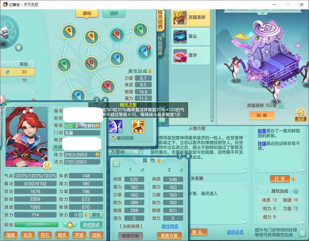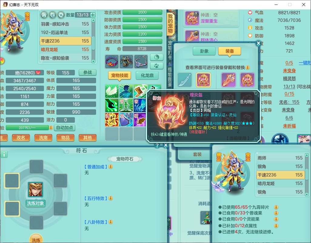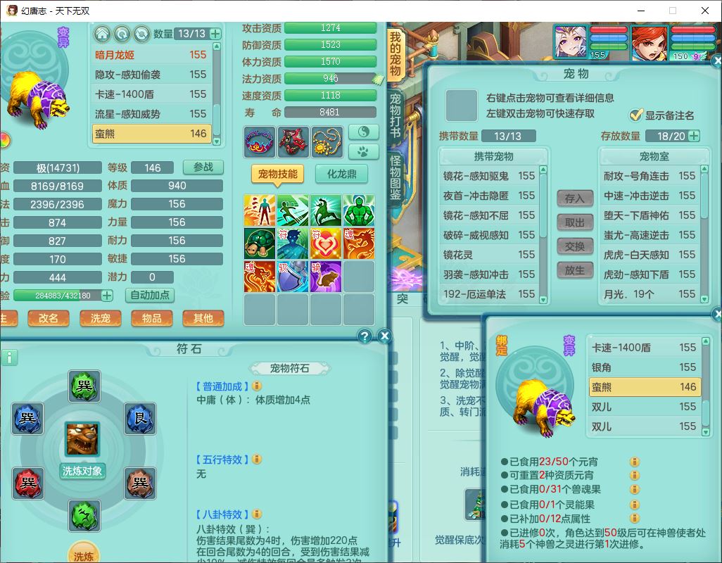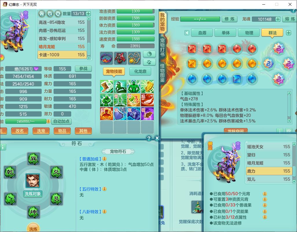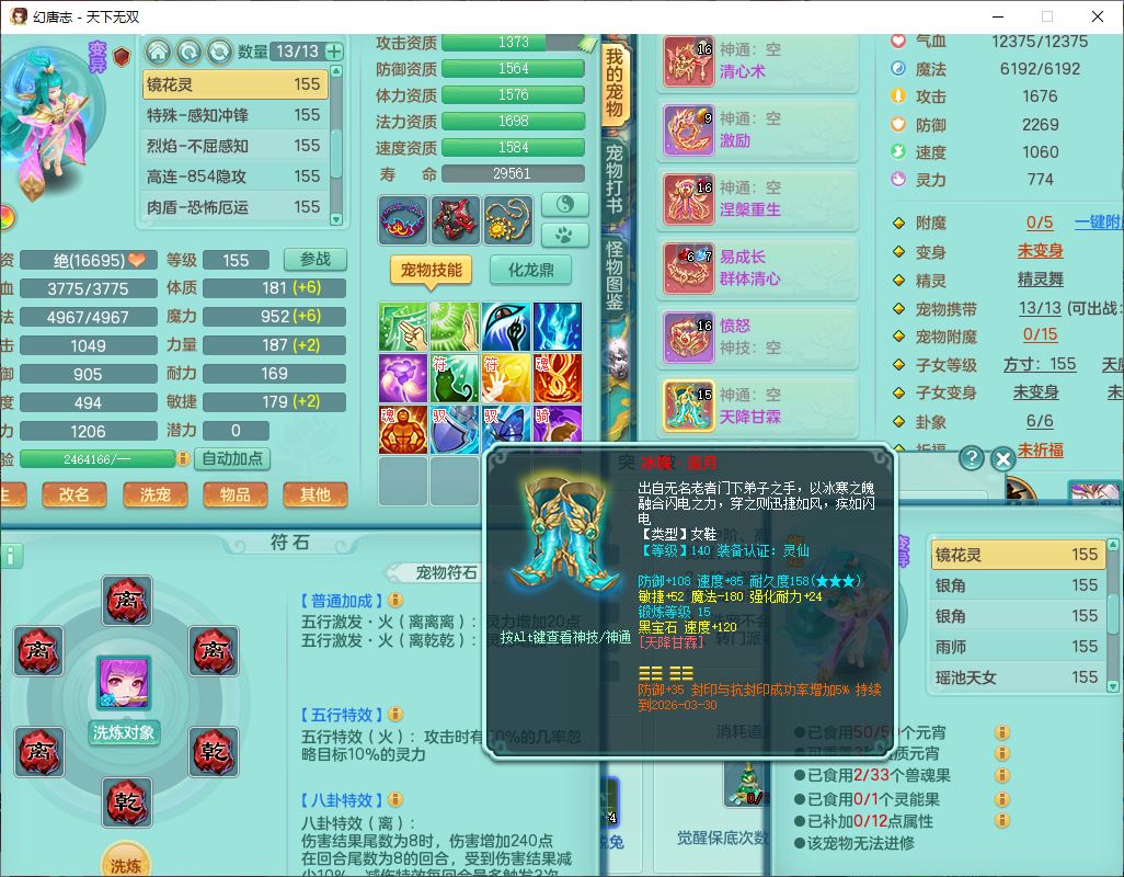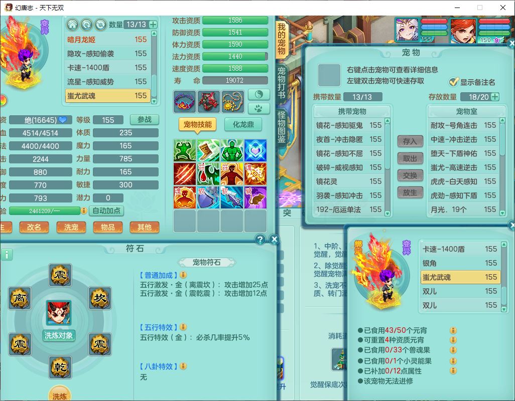 tx9749天下无双夫妻号159男方寸精灵舞,1内1望归3镜花5特殊(羽袭、流星、战争、堕天、虎虎),3觉醒7五字5四字综合7只满果子,8红装备,愤怒止戈腰带,Y水清鞋子,Y卸甲鞋子,鼎4.5,2套符石,庭院157,永久外观、精灵皮肤,720W神武币,12个仙兽灵,1双人飞行坐骑;159女无量精灵歌,1内1望归1龙姬4镜花3特殊(勇猛、焚心、荒古),3觉醒1六字2五字5四字,7红装备,Y玉清项链,有物理装,917单加必杀武器,神佑项链,鼎5.5,251W神武币,9个仙兽灵,1双人坐骑
